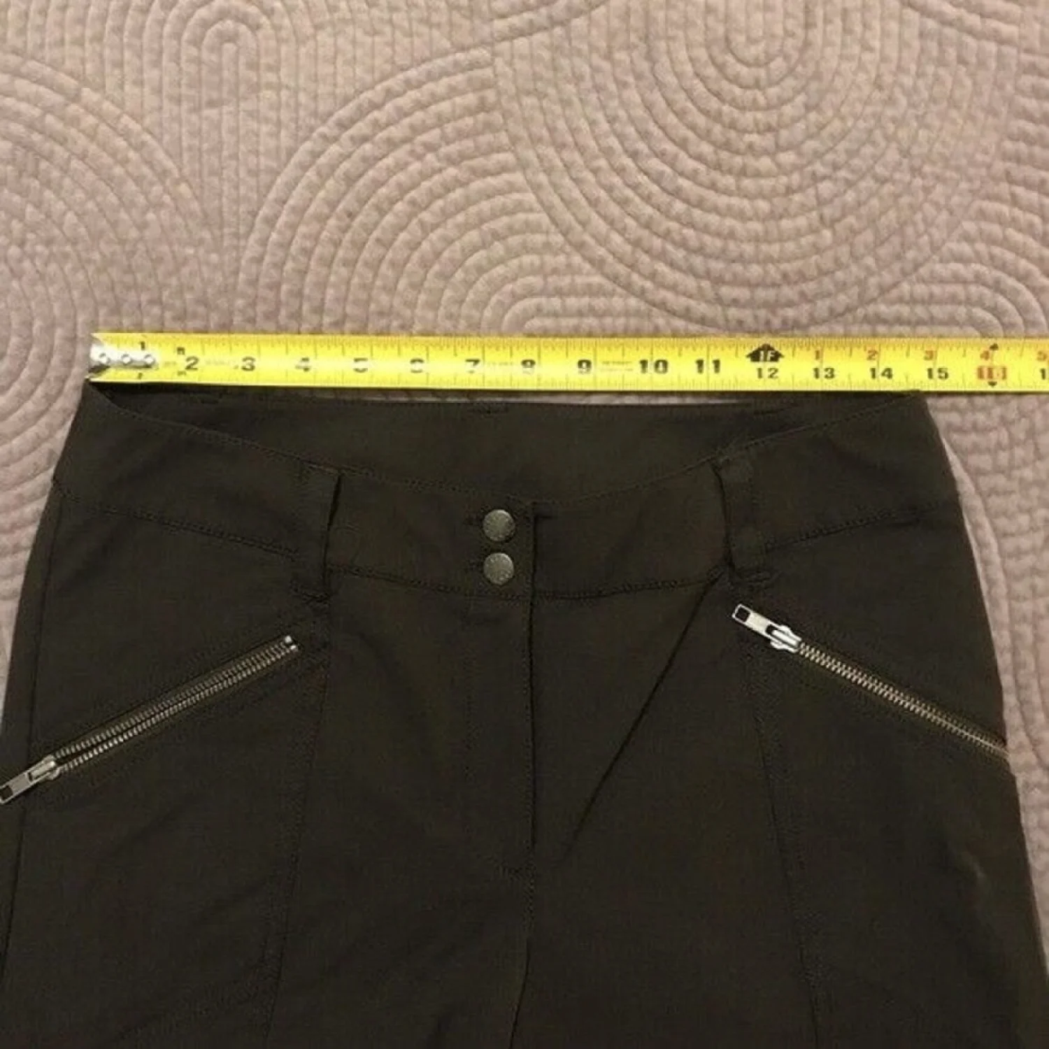 Excellent pair of women's vintage DKNY City Pant in dark brown! It features 2 pockets on the front with zip closures. Made of a slick nylon & spandex blend fabric that is machine washable. Great used condition with one small discolored spot on back right side near waistband. See pictures for details and measurements. Size is women's 6. casual, stretch, 1990s, Y2K 20211020 35
