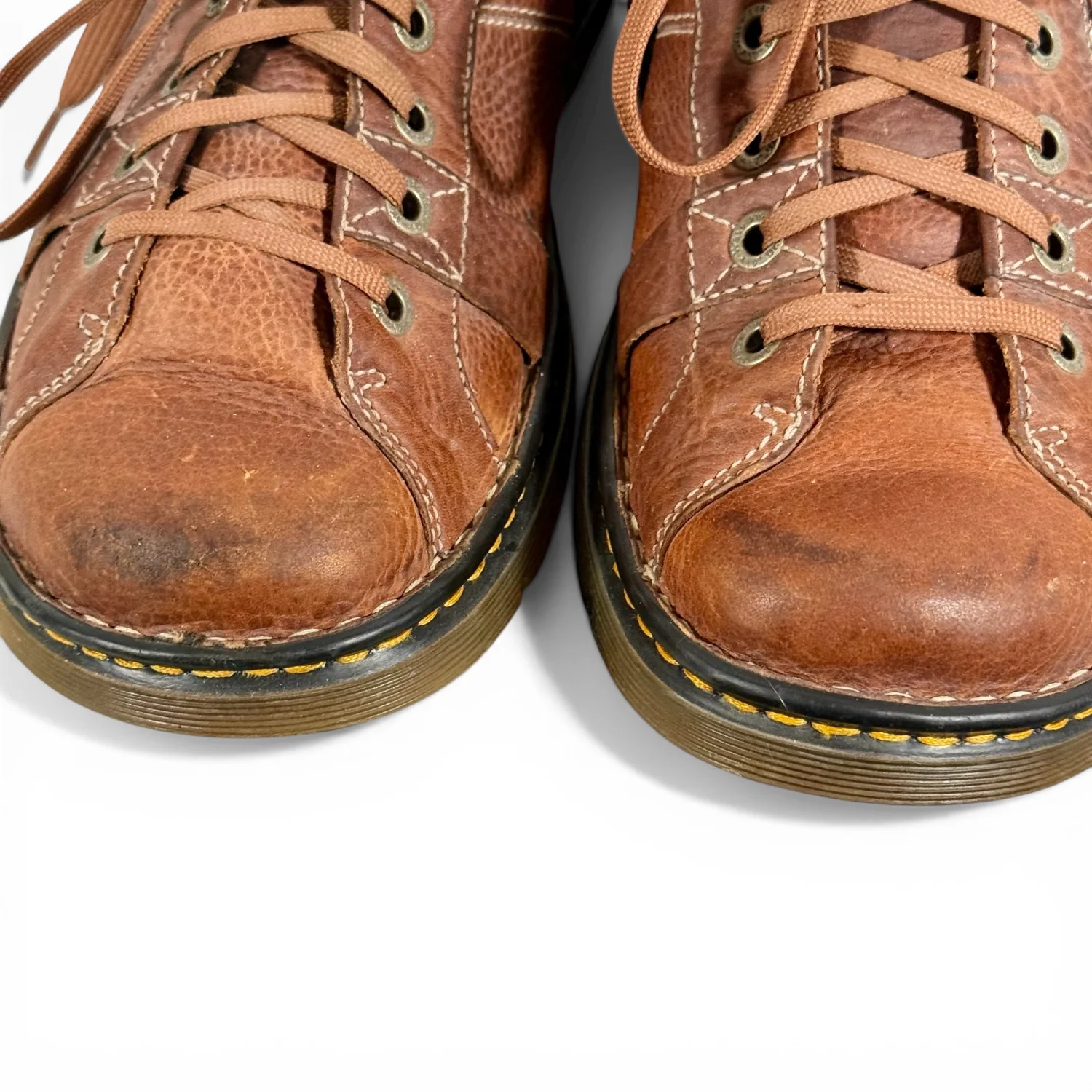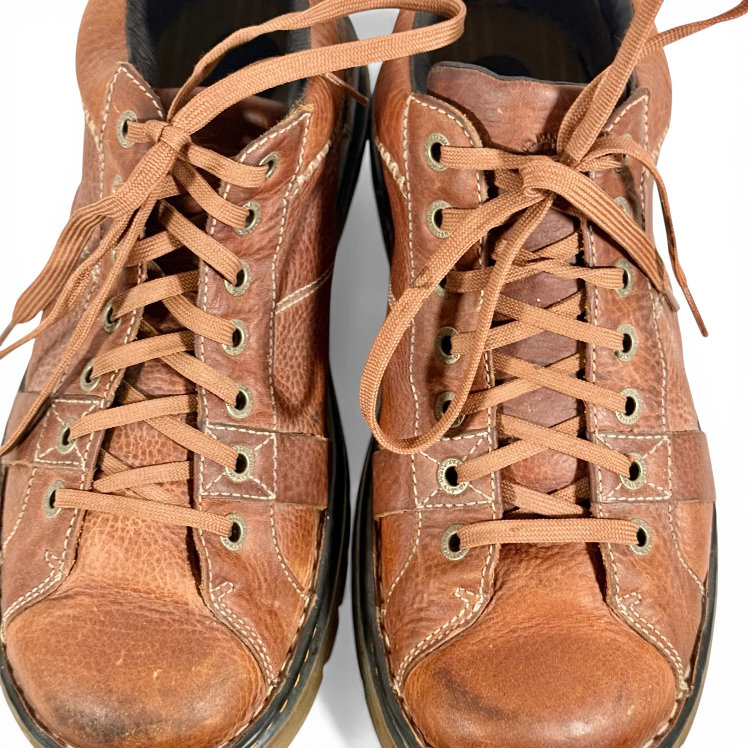Generally, these shoes are in fair preowned condition. They have some wear on the toes, and on the heels. Some staining on the shoelaces as well. See pictures for details. Keywords: grunge, y2k style, hipster, walking, school, casual, 1990s P20260071 S