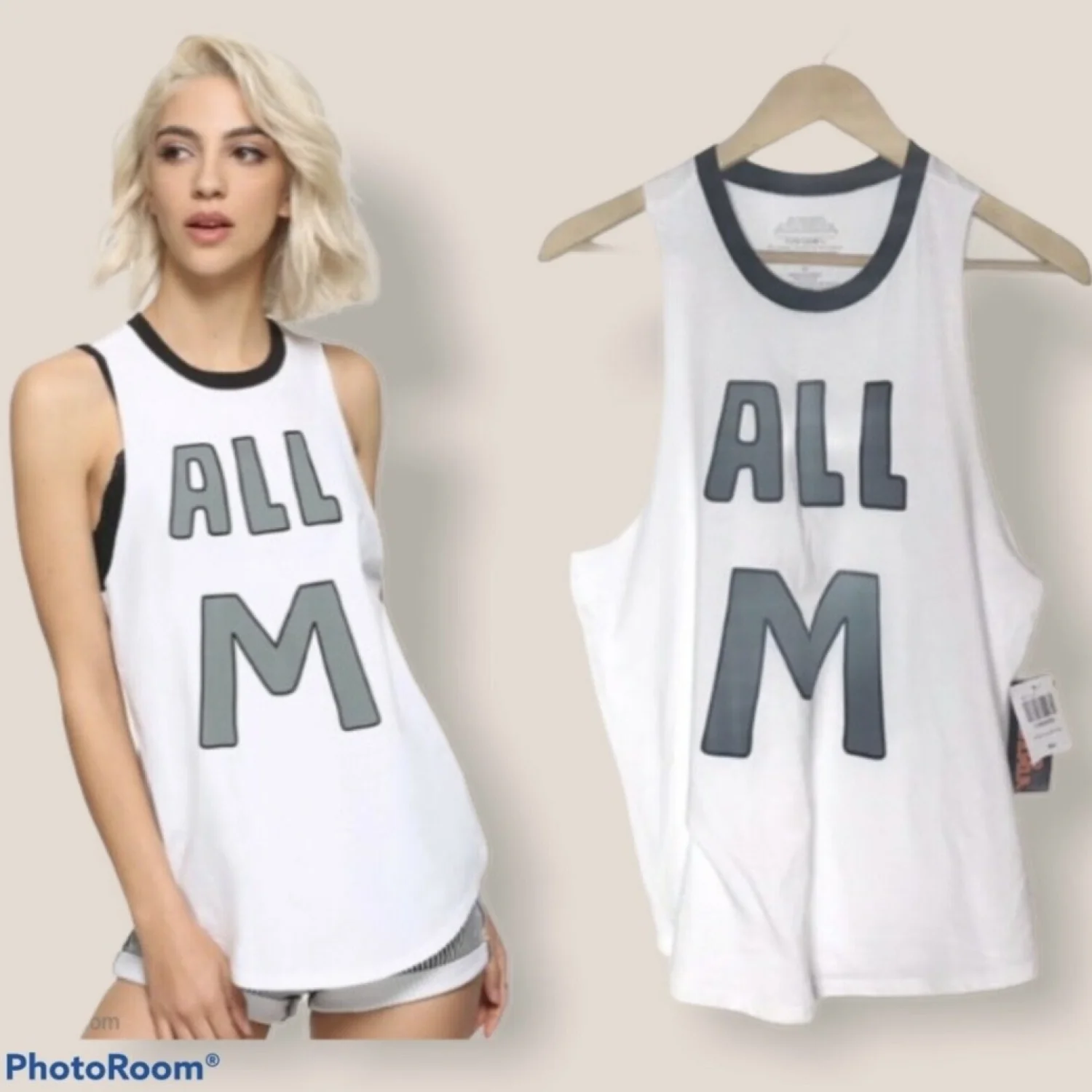 BRAND NEW women's Funimation "My Hero Academia" graphic tank top! It features graphics saying "All M" and is based on the character of Deku. Material is 100% cotton, and is white with contrasting black collar and gray & black graphics. New condition and machine washable. Size is women's junior medium. manga, Japan, athleisure 20211127 47 CONDITION: New With Tags