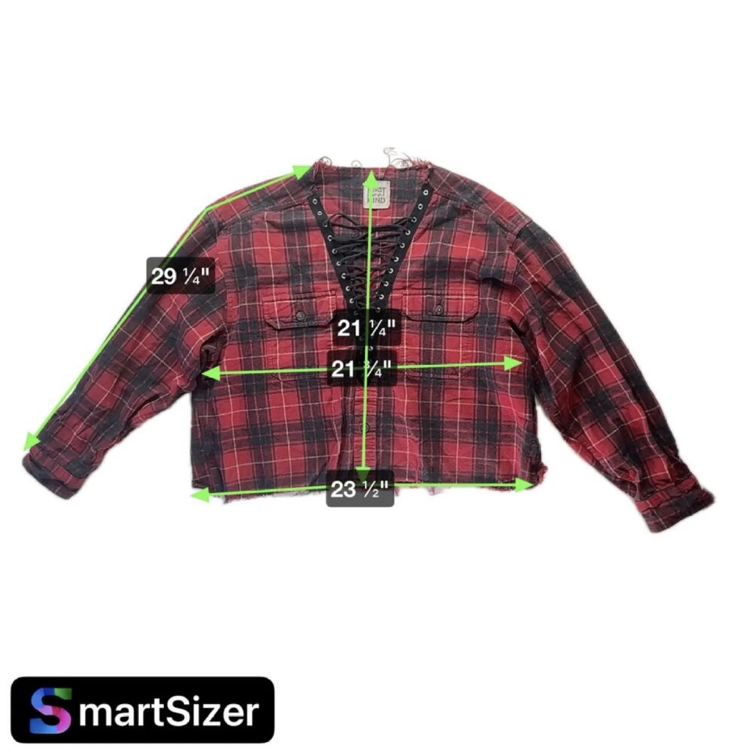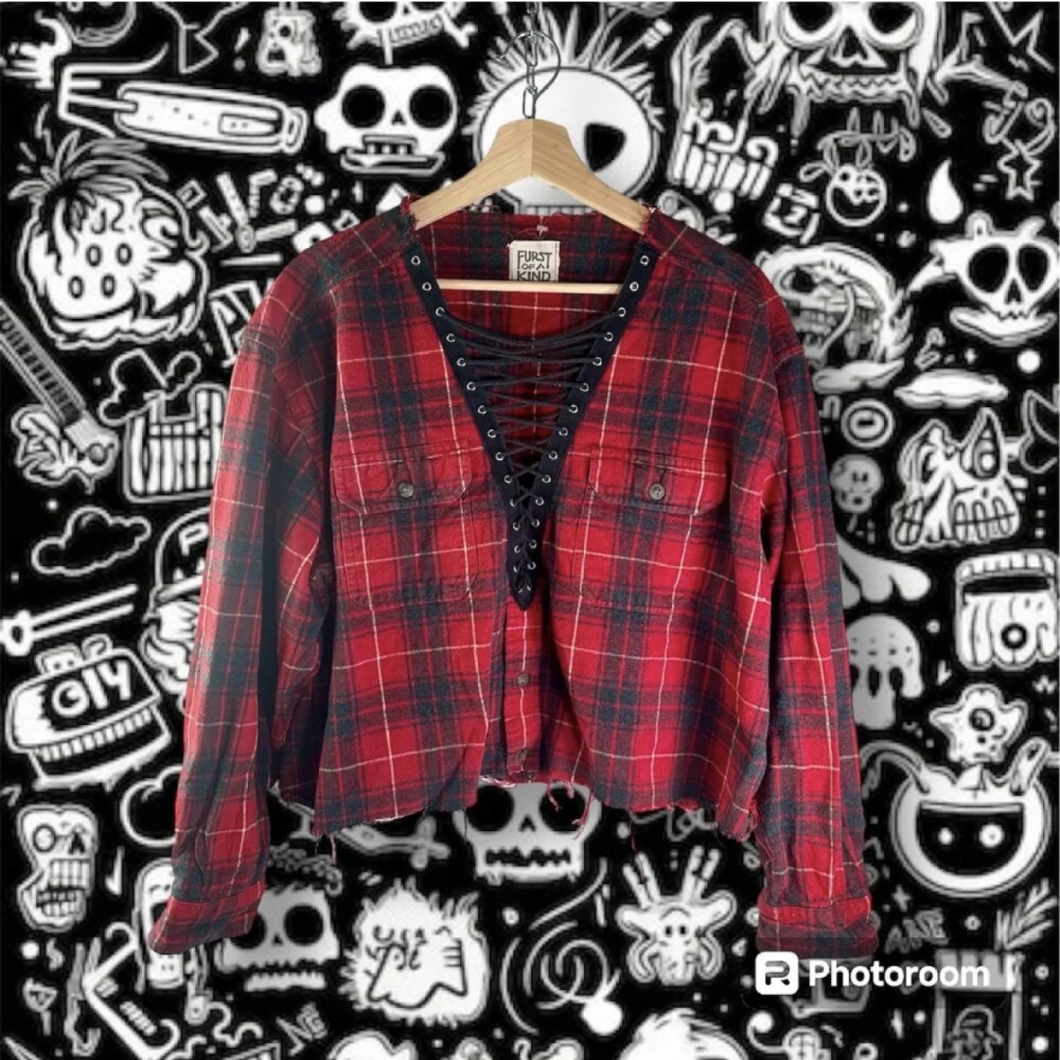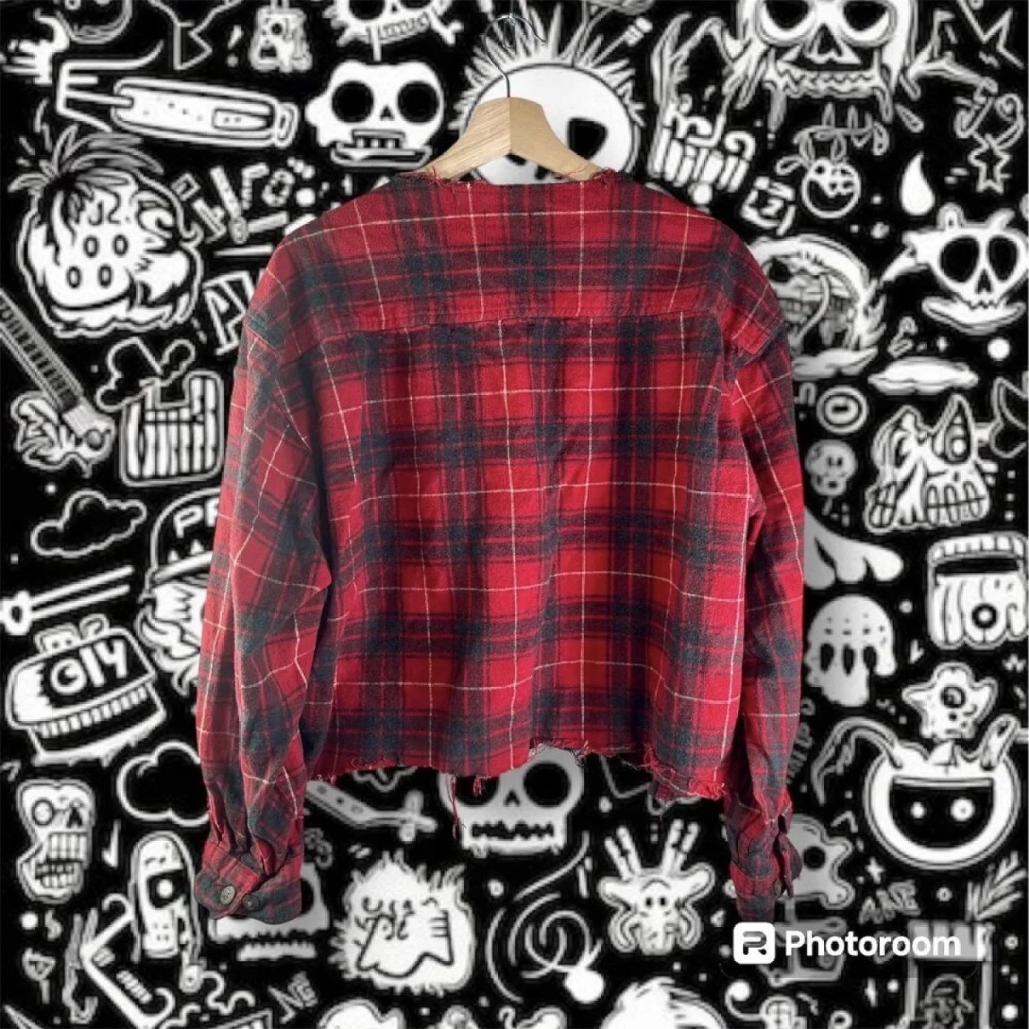 Good preowned condition. *Note that size tag and material tag is missing. Care tag is present. Looked up measurements and looks to fit a women's large. Material feels like cotton.* See pictures for details and measurements. Features a raw hem at the bottom. Keywords: grunge, punk, emo, edgy, casual, layering, festival, concert P20240266 55