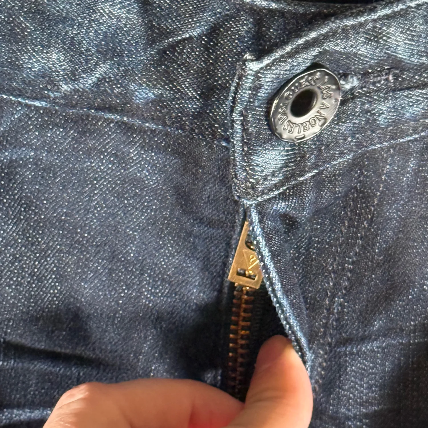 Amazing jeans in amazing condition. Features very light stretch and whiskering on the front. They are in a dark blue wash. Excellent preowned condition. See pictures for details. Measurements waist 33" rise 10" inseam 30.5" Keywords: denim, closet essential, school, everyday, emo, biker, edgy P20260026 4
