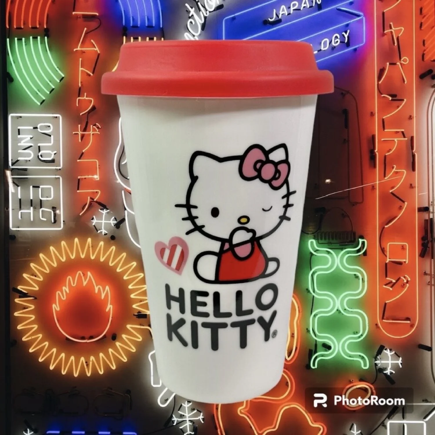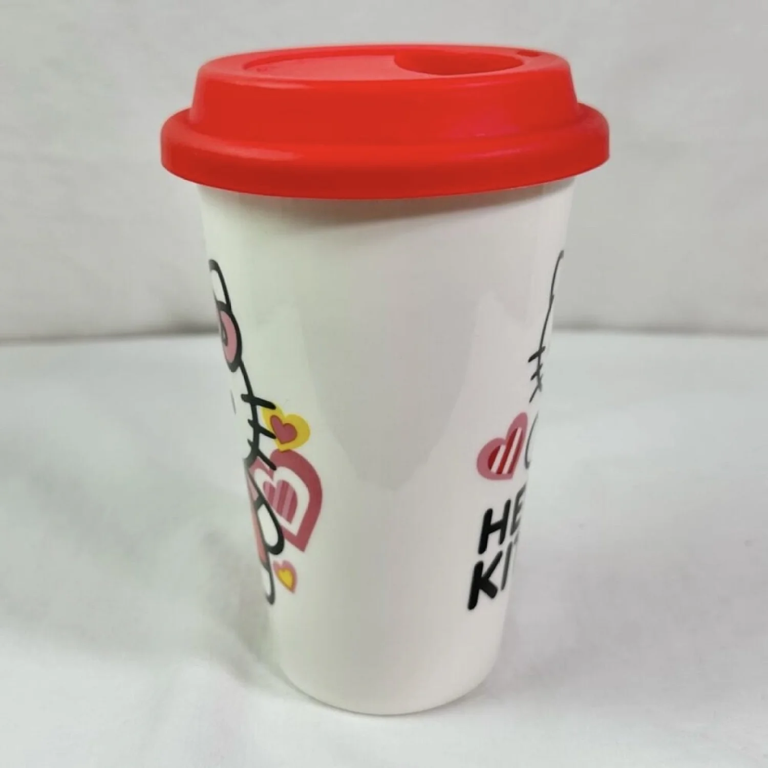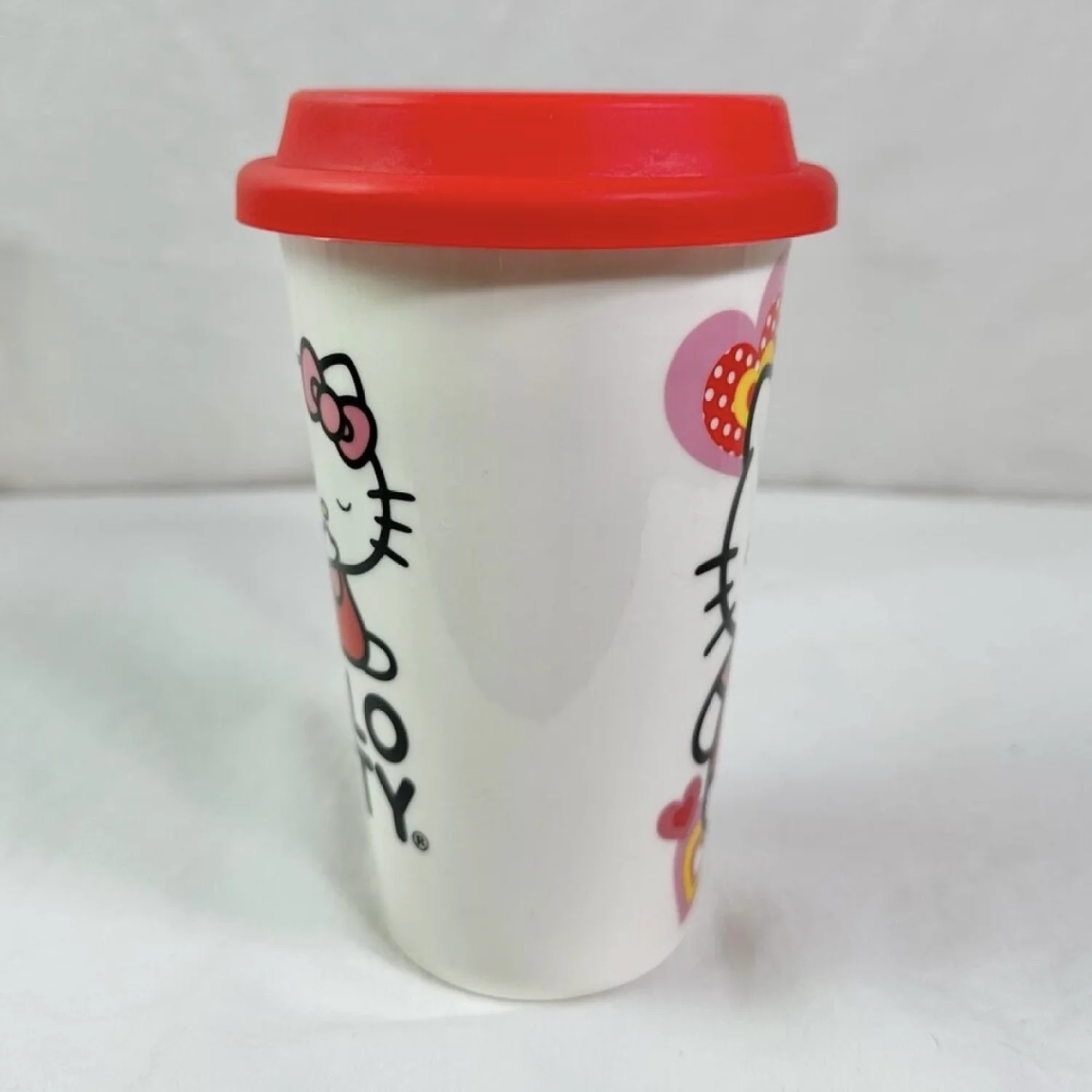 Hello Kitty Sanrio 12 Fl Oz White Ceramic Travel Commuter Mug With Red Lid