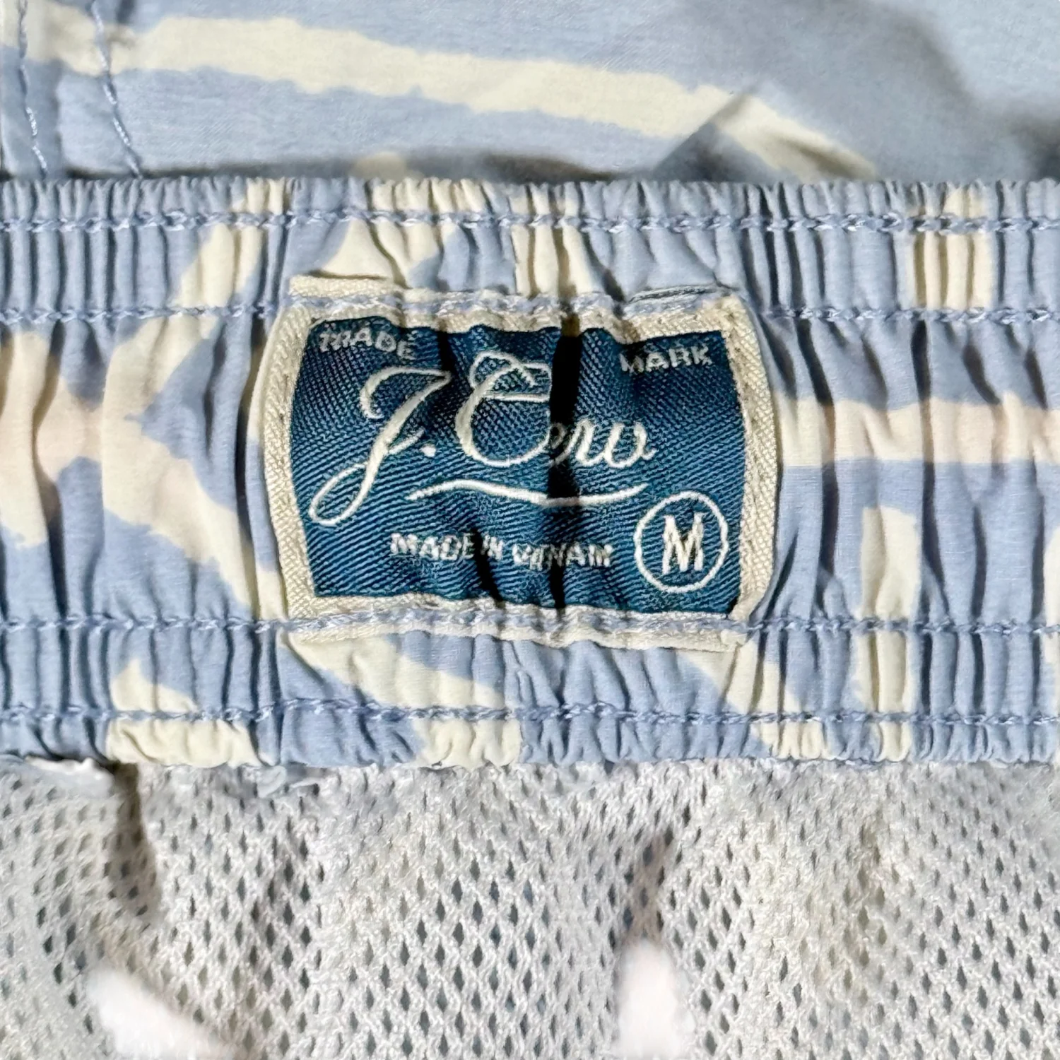 J. Crew Men's Medium Light Blue & White Tribal Pattern Swiming Trunks Shorts