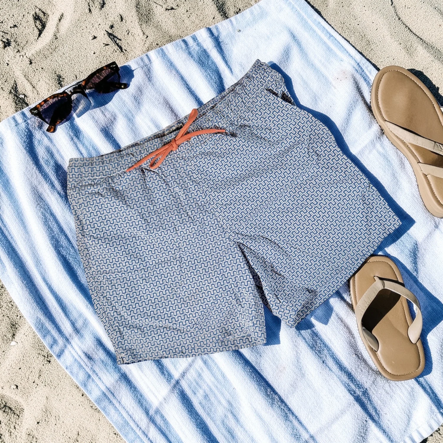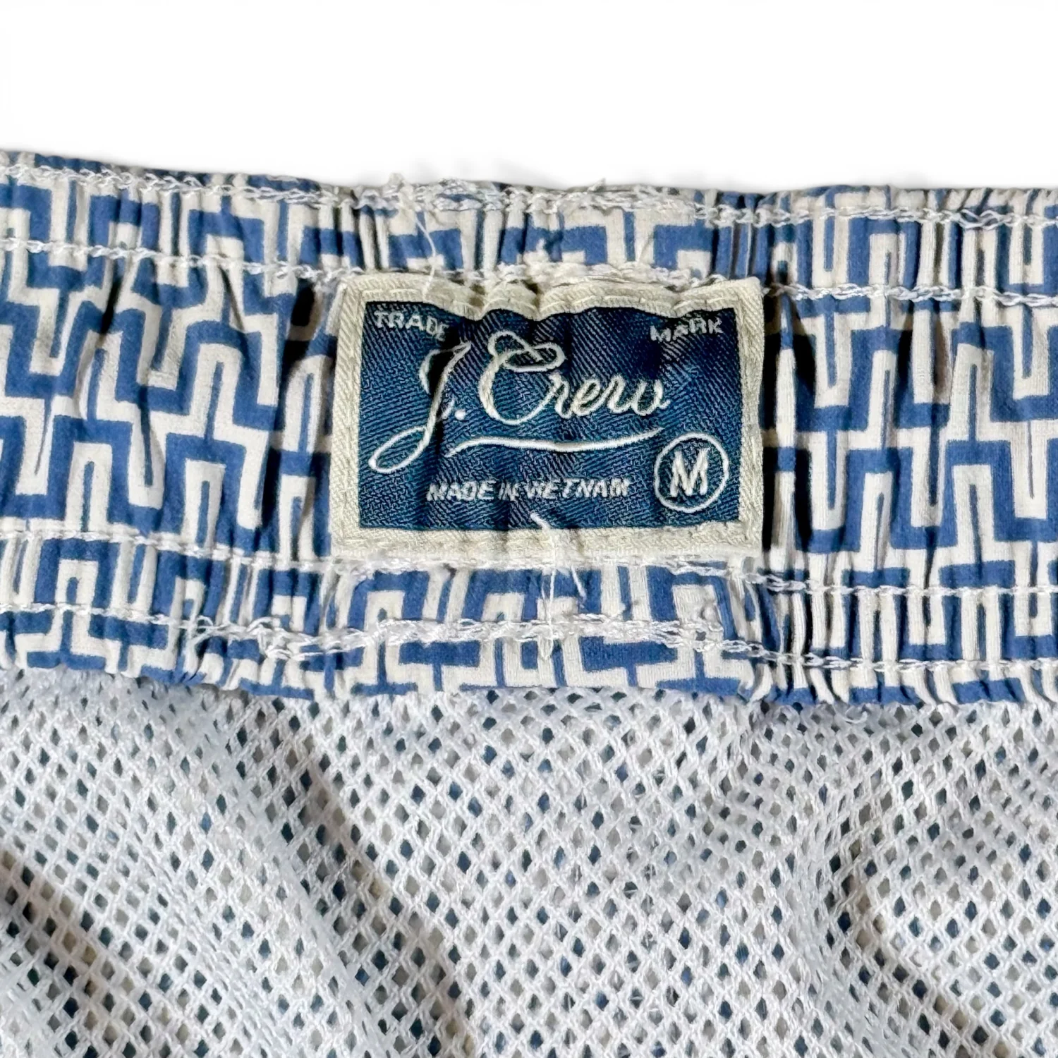 J. Crew Men's Medium Swimwear Blue & White Maze Print Swimming Trunks Shorts