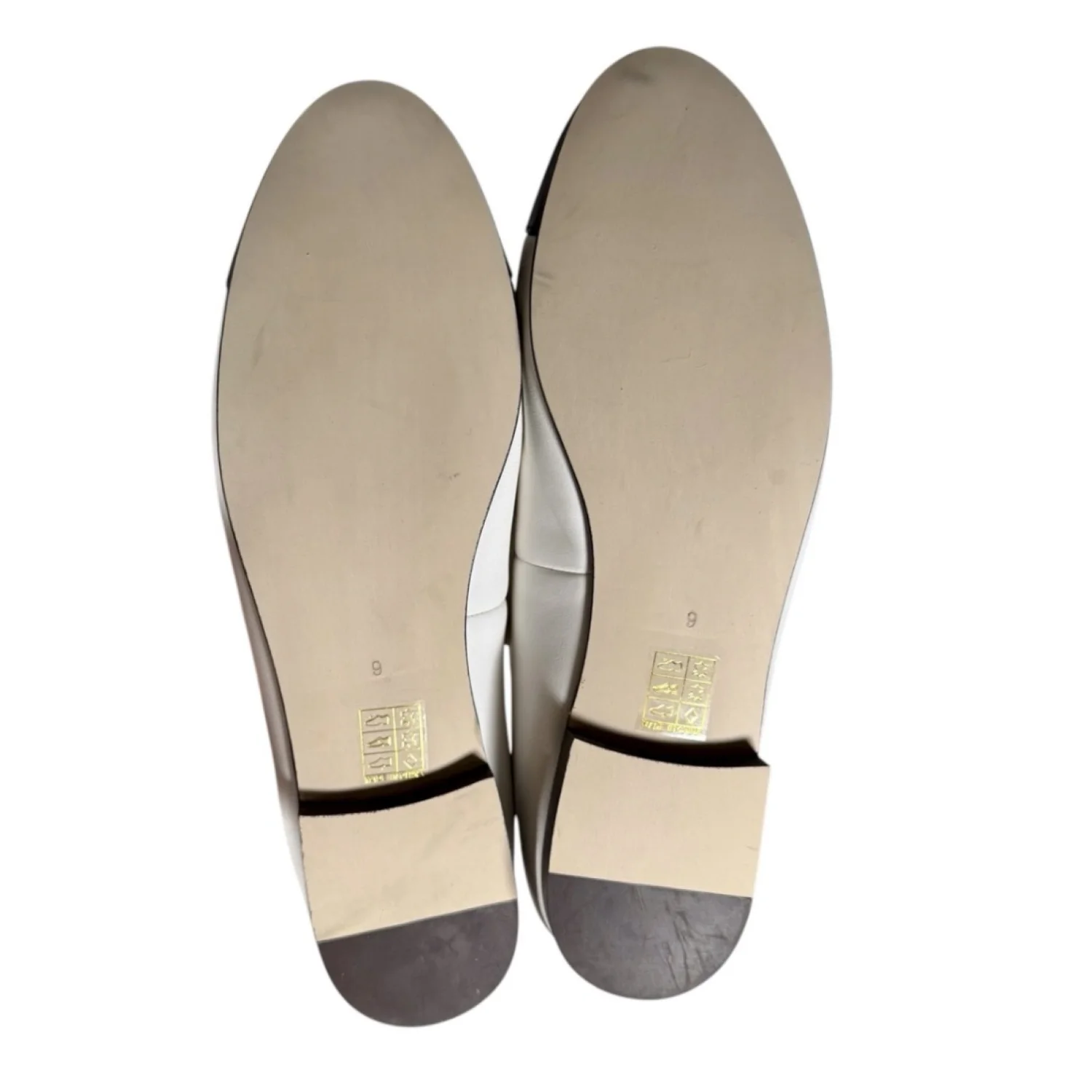Amazing ballet flats made of leather. Perfect for a multitude of outfits! Excellent preowned condition. Very little signs of wear noted, but there is one scuff on right toe. See pictures for details. Keywords: elegant, everyday, neutral, minimalist, office, business casual, teacher, church P20250621 S