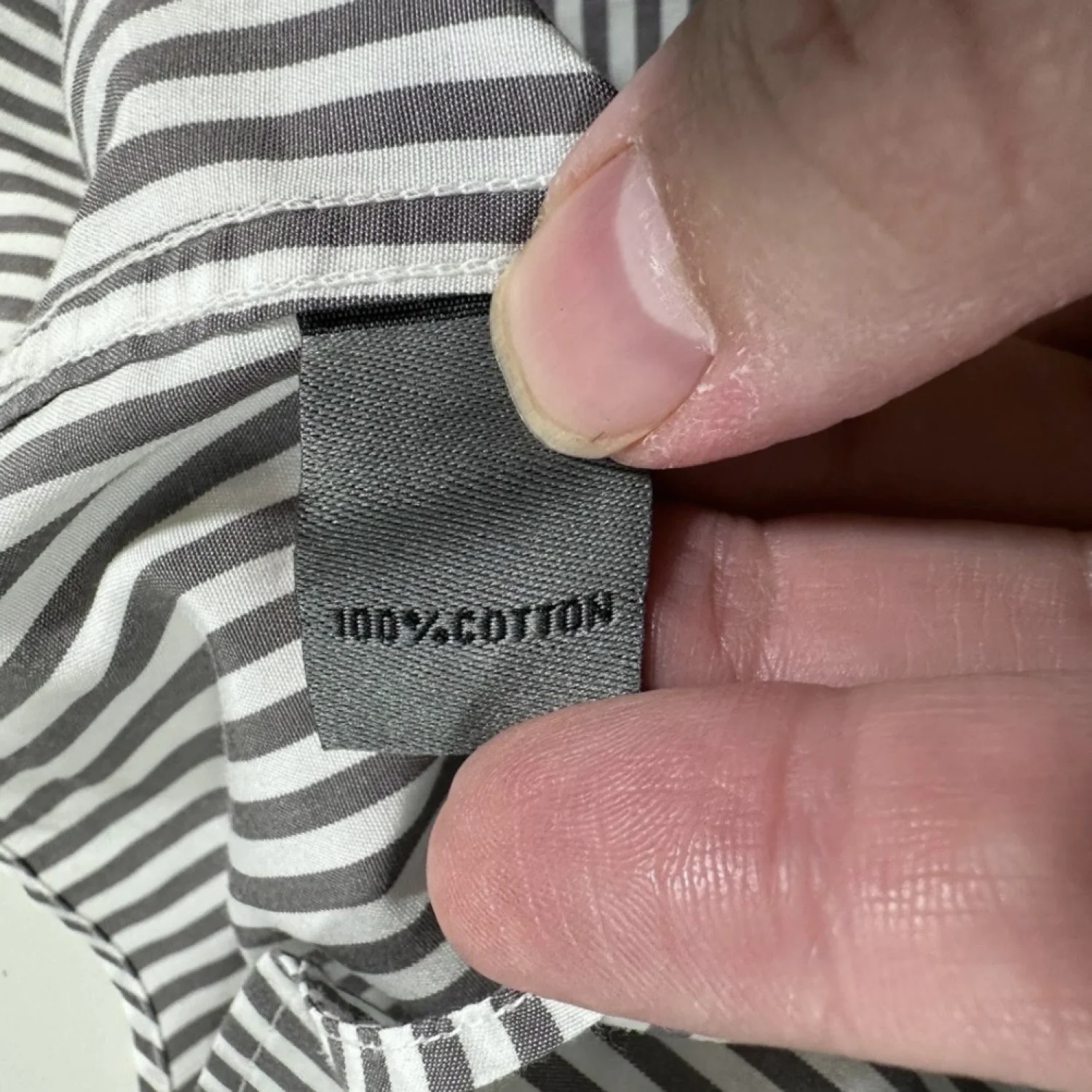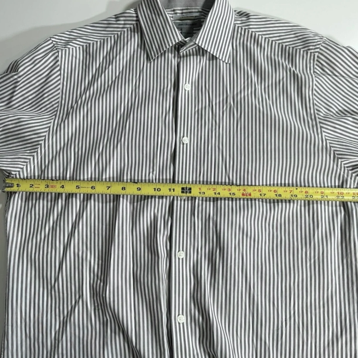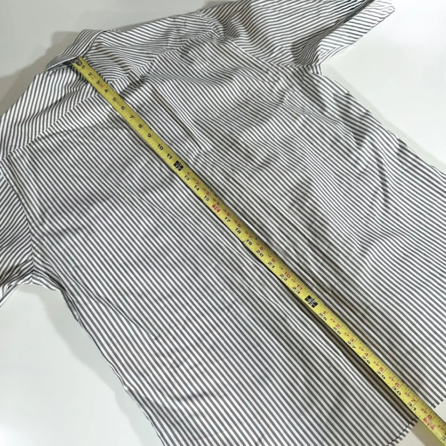 Great essential for your suit and/or office wardrobe! Comes in vertical white & gray stripes. Material: 100% cotton Care: Machine washable Size: Men's large Condition: Good used condition. One tiny spot found on top of right shoulder. See pictures for details and measurements. Keywords: office, suit, career, teacher, church, basic P20230082 11