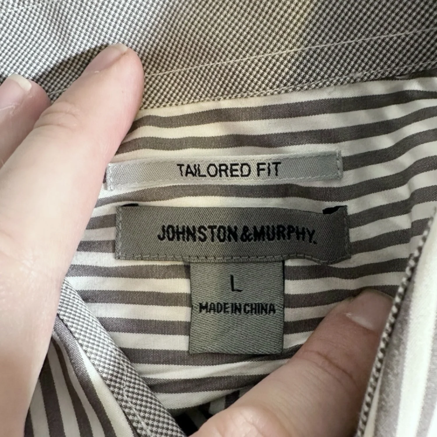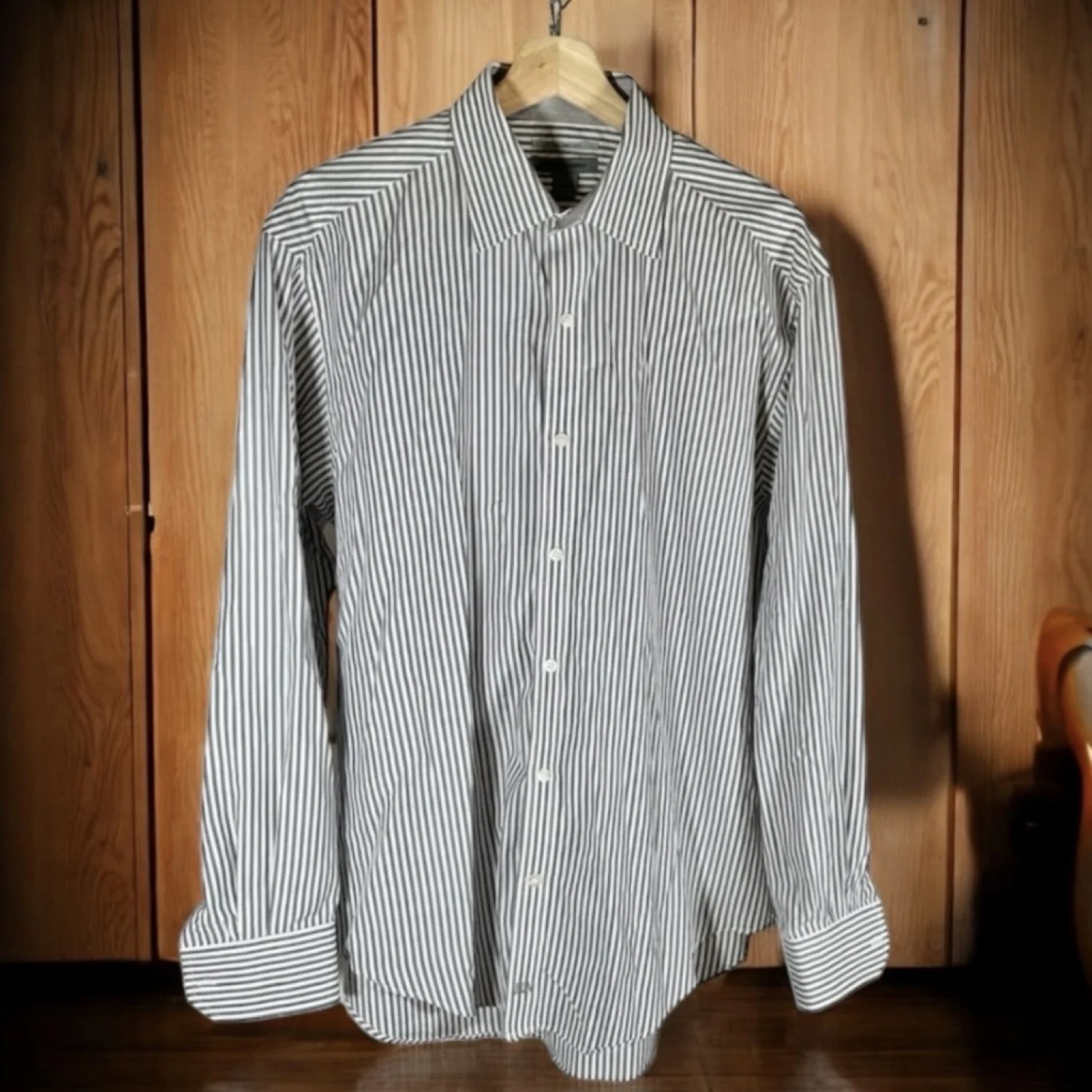 Johnston & Murphy Men's Large White & Gray Striped Tailored Fit Dress Shirt