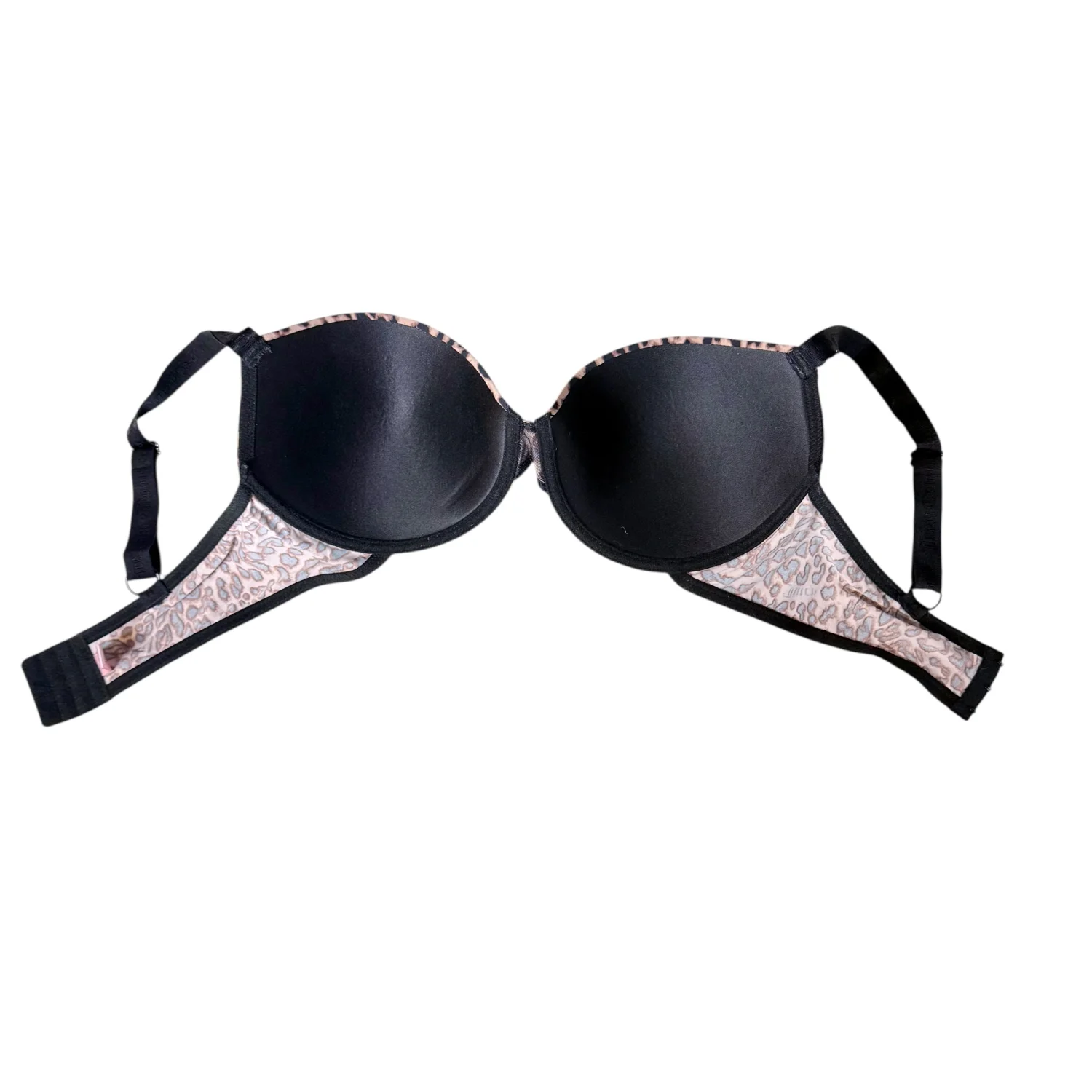 Very cool Juicy bra features cheetah print and and underwire with lightly lined cups. Excellent preowned condition. See pictures for details. Keywords: honeymoon, intimates, support, romantic P20250585 H