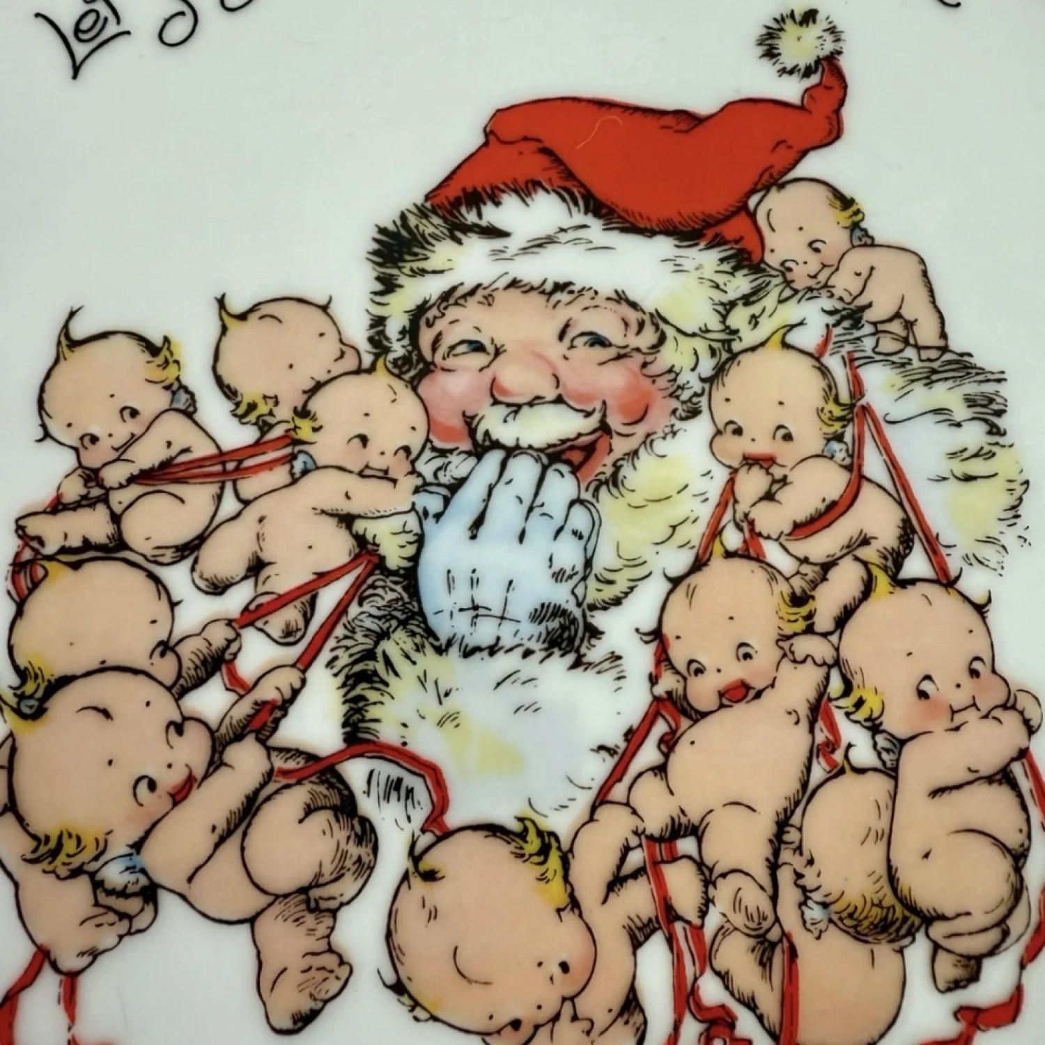 Excellent preowned condition. Features the Kewpies characters, as originally created by Rose O'Neill. See pictures for details and measurement of diameter. Keywords: Xmas, holidays, Santa Claus, whimsical, cartoon, collectible, decor P20240599 208