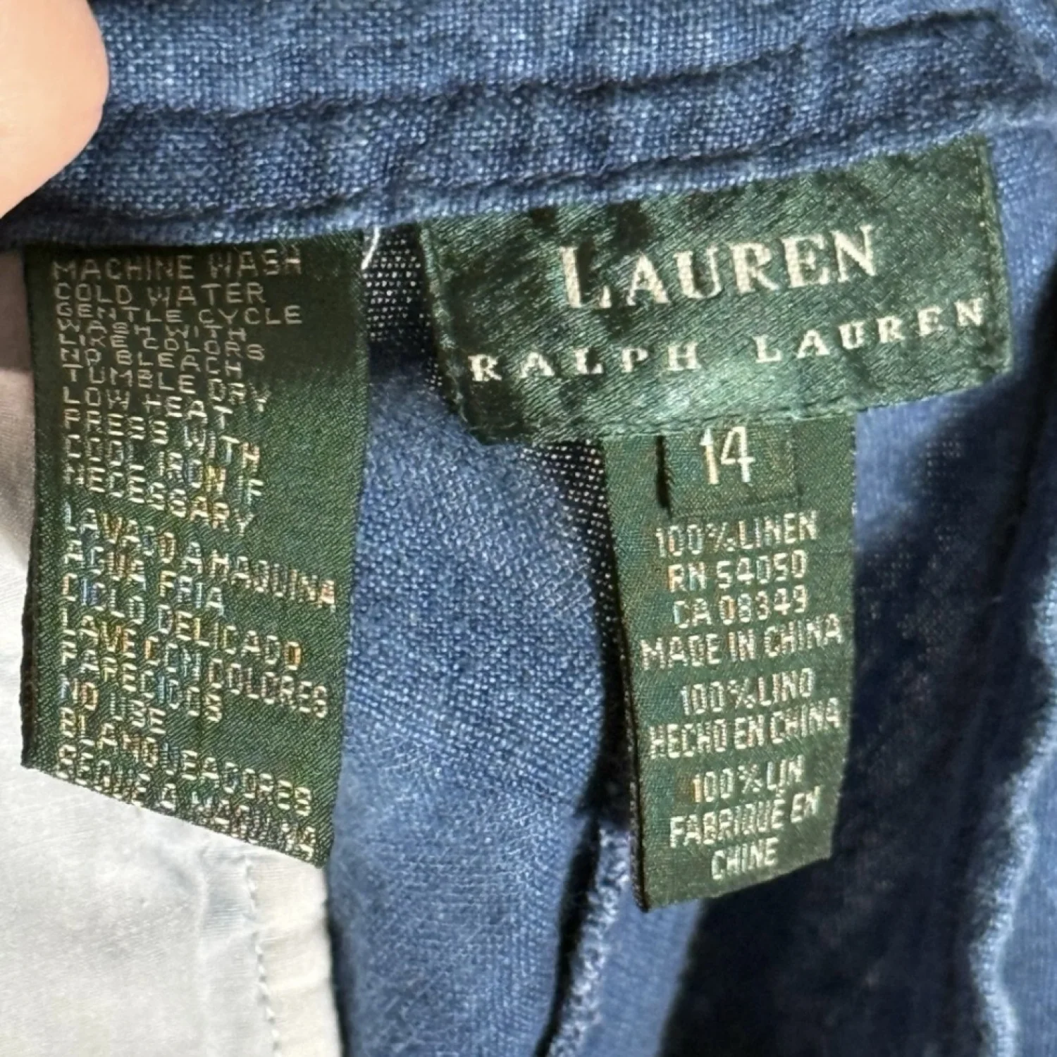 Lauren Ralph Lauren LRL Women's 14 Dark Blue 100% Linen Capri Pants Side Pockets