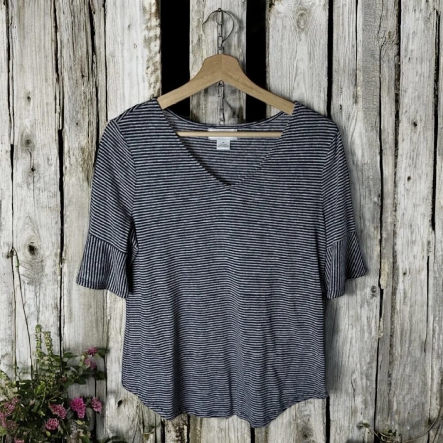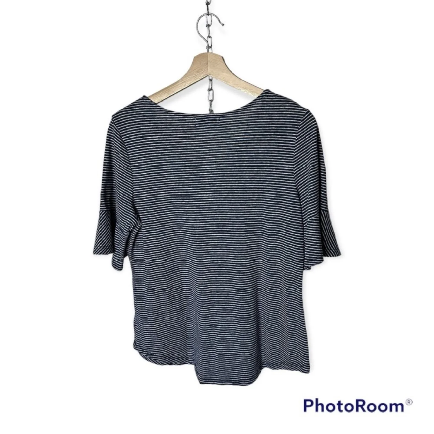 Liz Claiborne Women's Medium Linen Blend Blue & White Striped Pullover Blouse