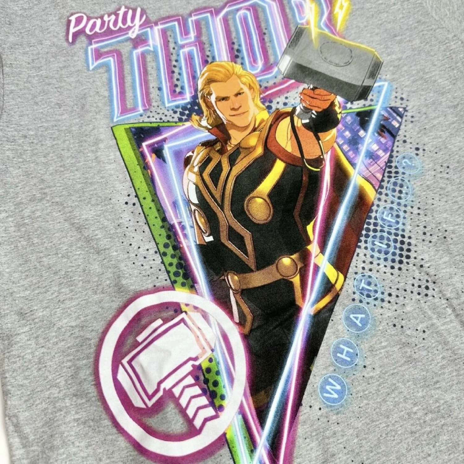 Marvel NWT Adult Small Gray "What If?" Party Thor Cotton Blend S/S T-Shirt