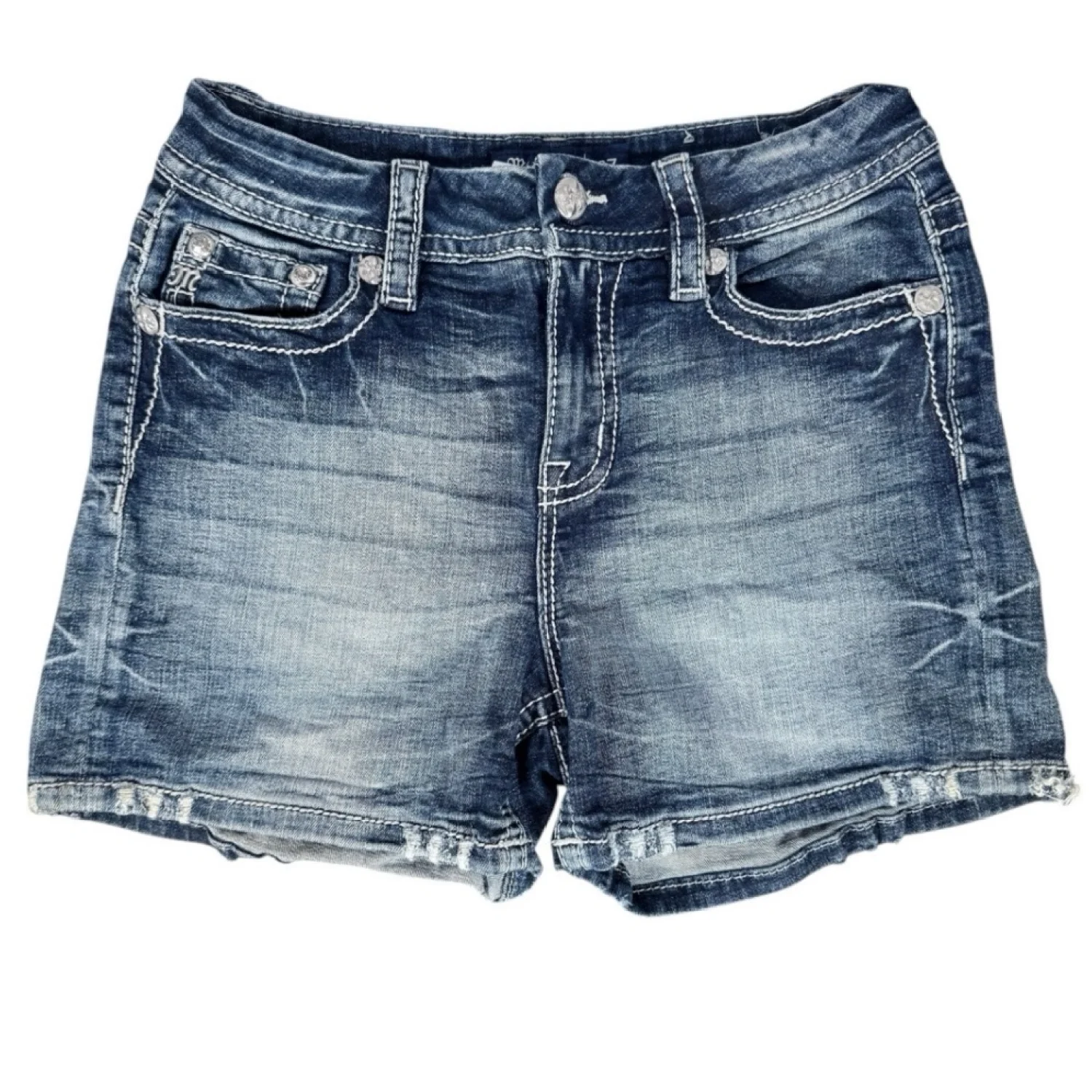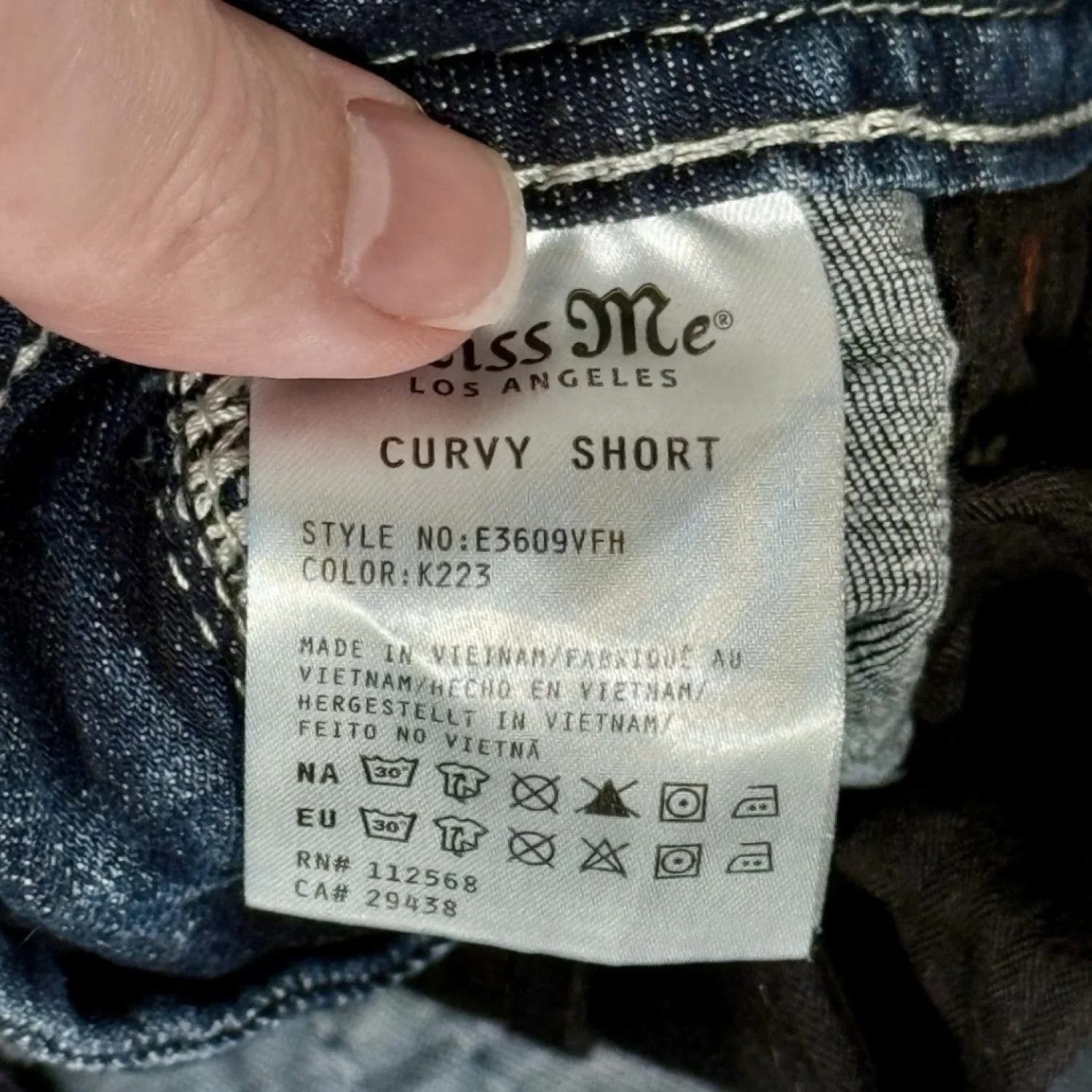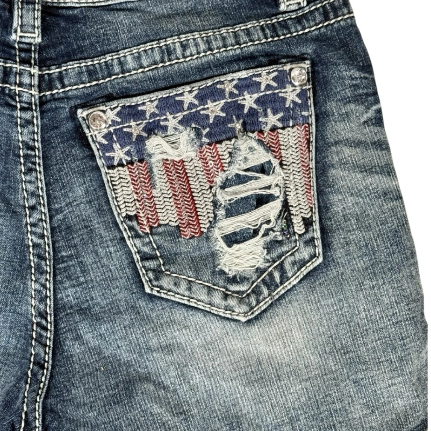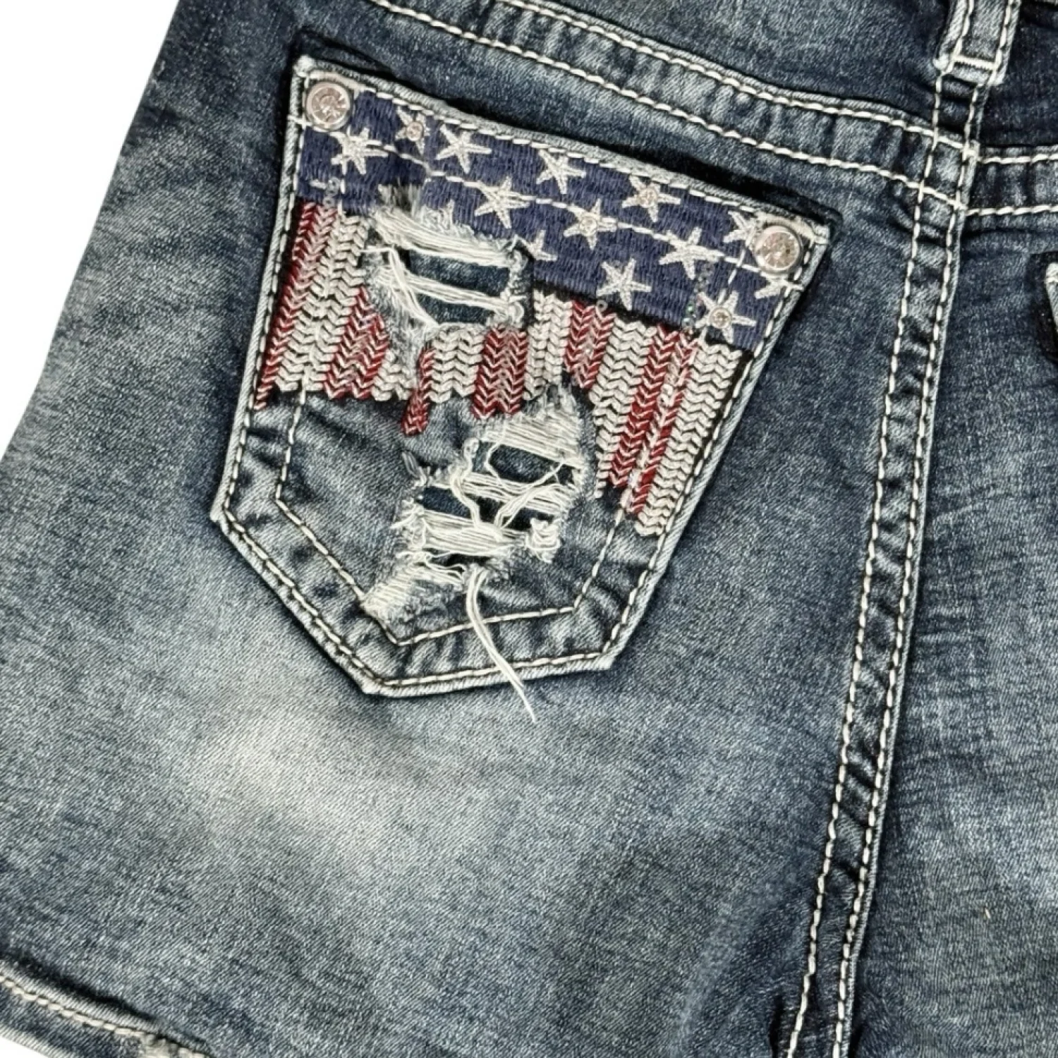 Miss Me Women's 27 Curvy Short Distressed American Flag Denim Mid Rise Shorts