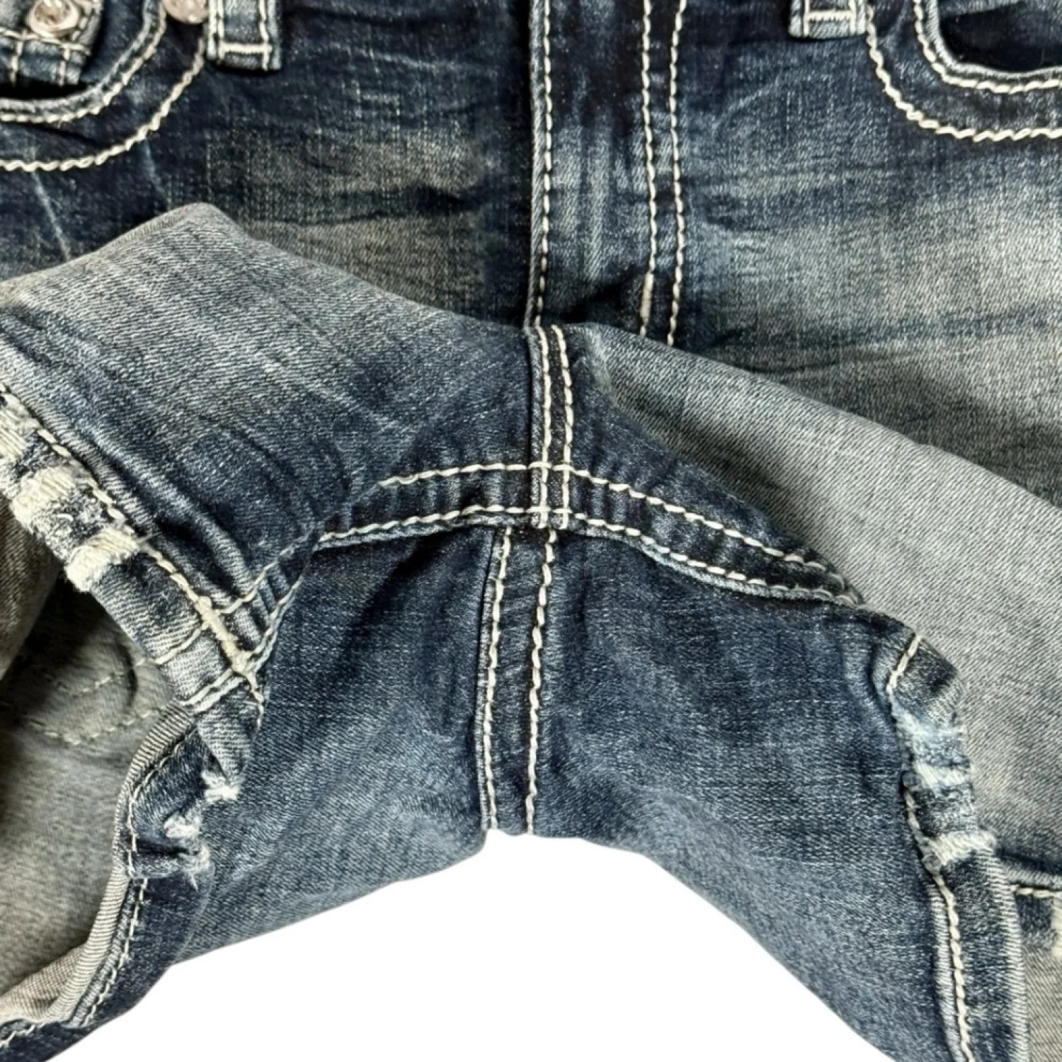 These shorts are perfect for the summer! They feature distressing, stretch, and American flag references in the patch and on the pockets. Also has rhinestones on pocket corners and some of the stars. They are in excellent preowned condition. See pictures for details. Measurements waist 26.5 rise 9.5 inseam 4" Keywords: casual, 4th of July, Independence Day, patriotic, feminine, summer, vacation, lake, BBQ, party P20250429 1