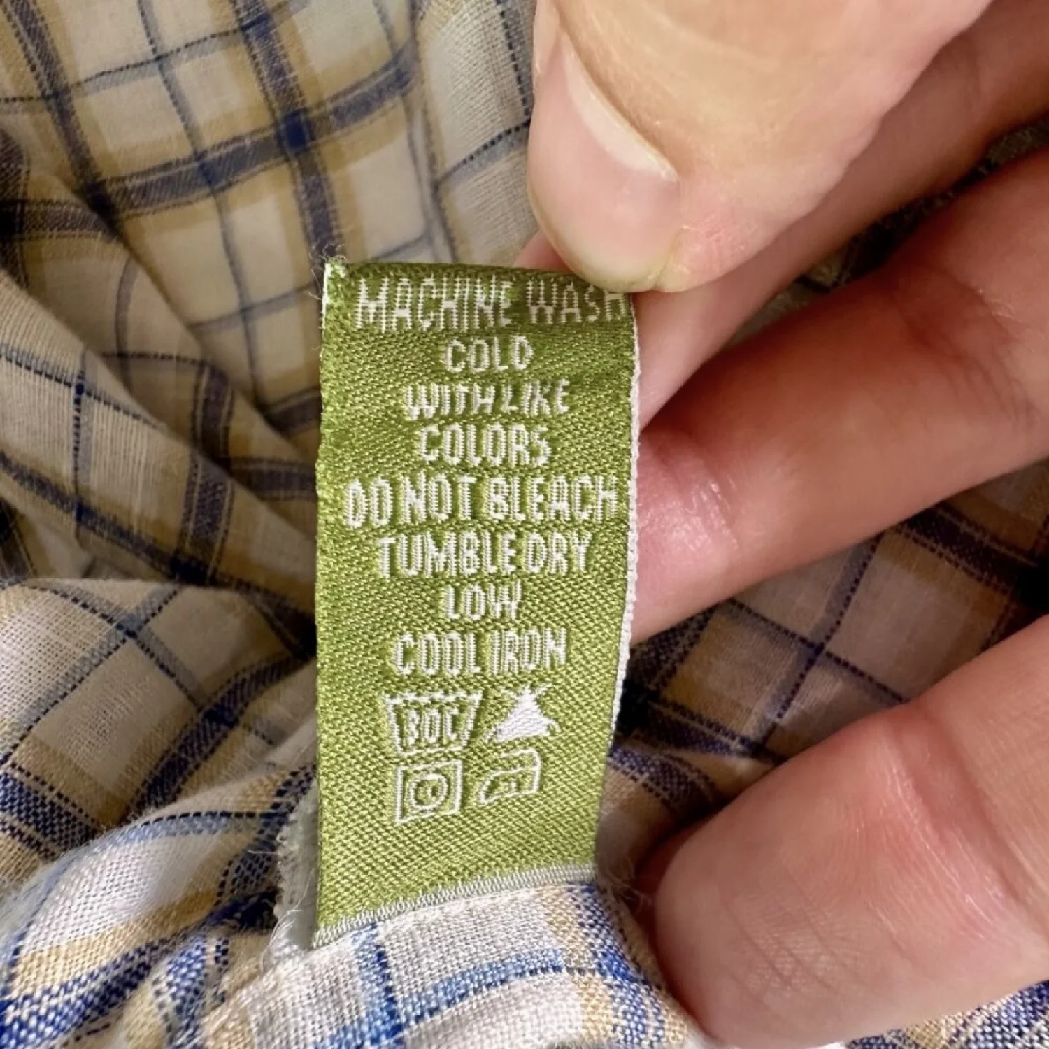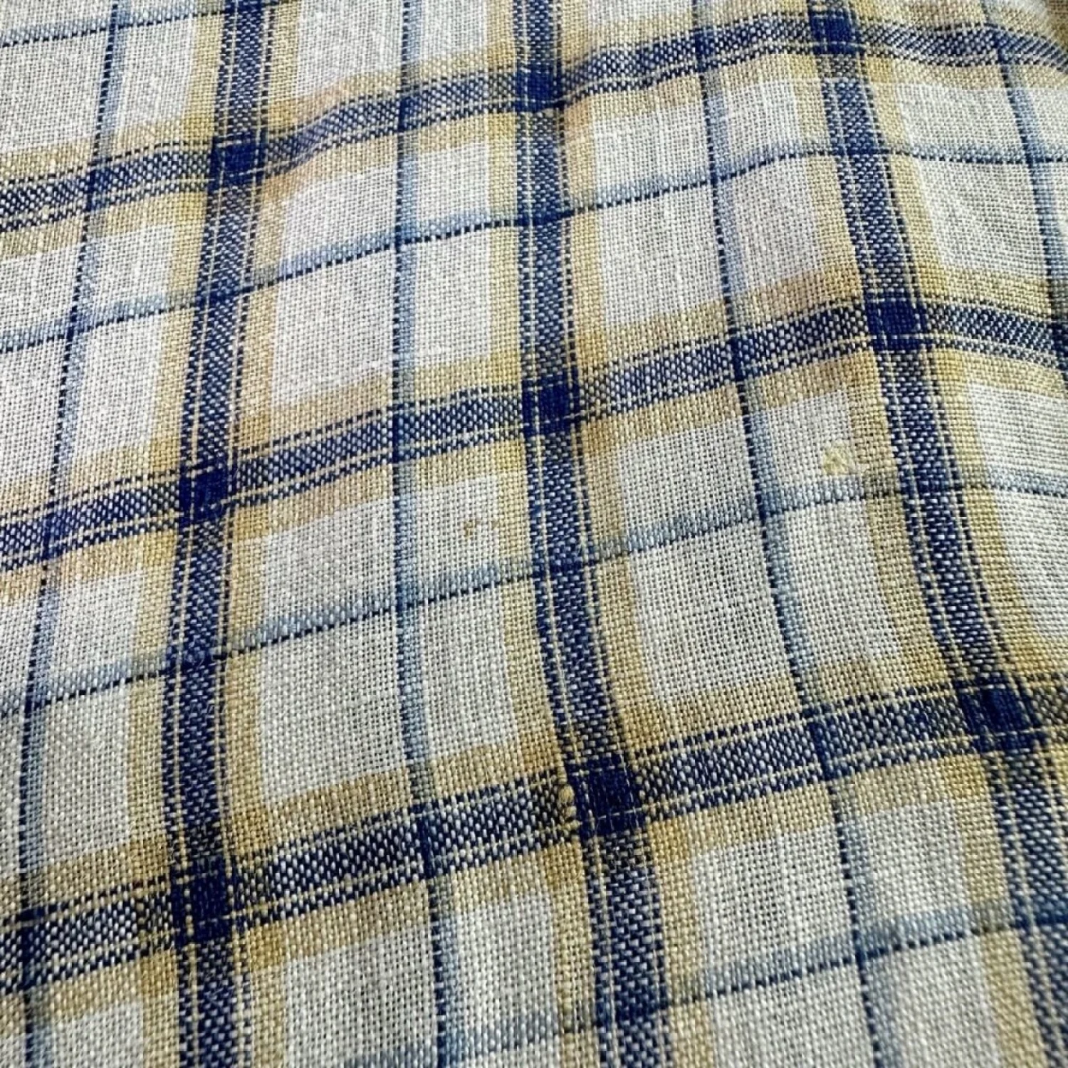 Orvis Men's Large 100% Linen White Blue Yellow Plaid S/S Button Up Shirt Summer