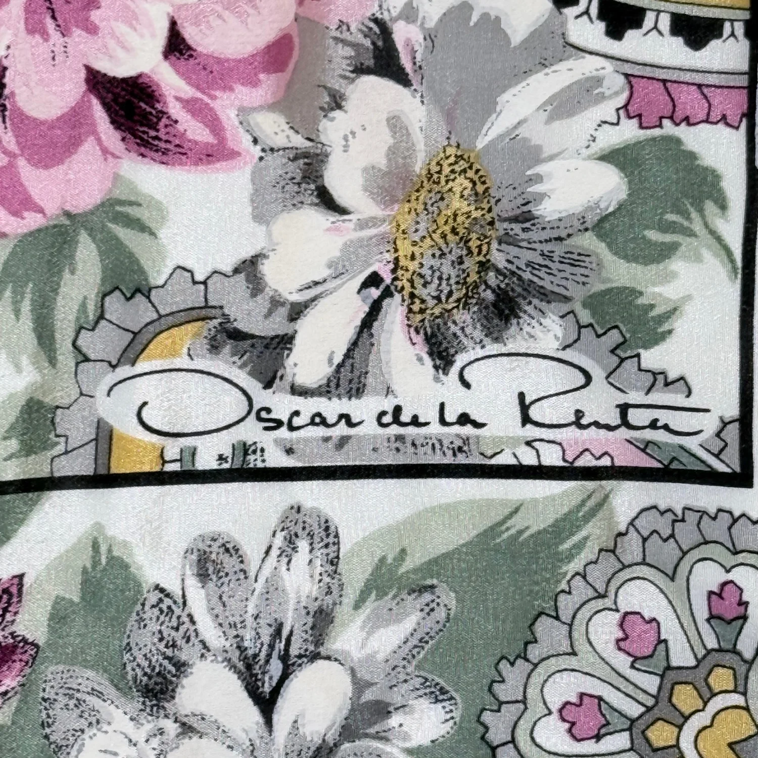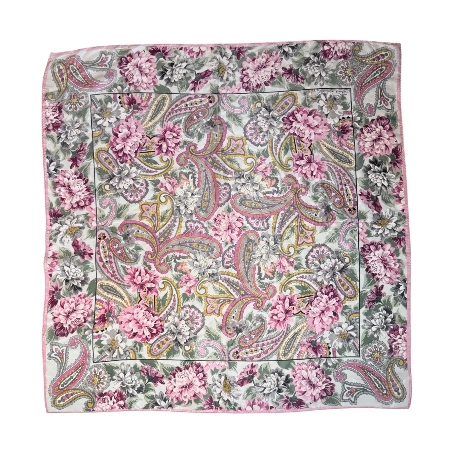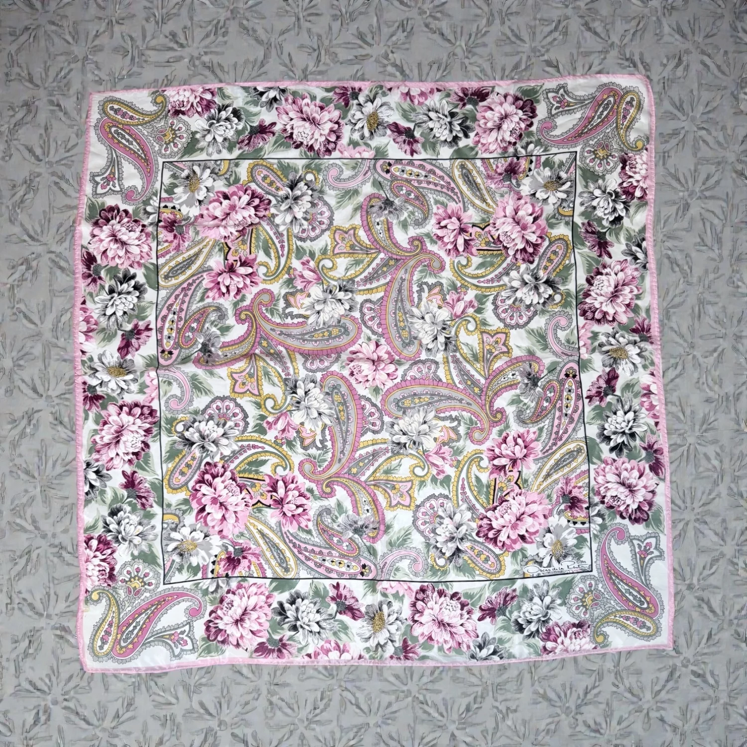Oscar de la Renta VTG Women's 100% Silk Pink Paisley Floral Square Scarf READ