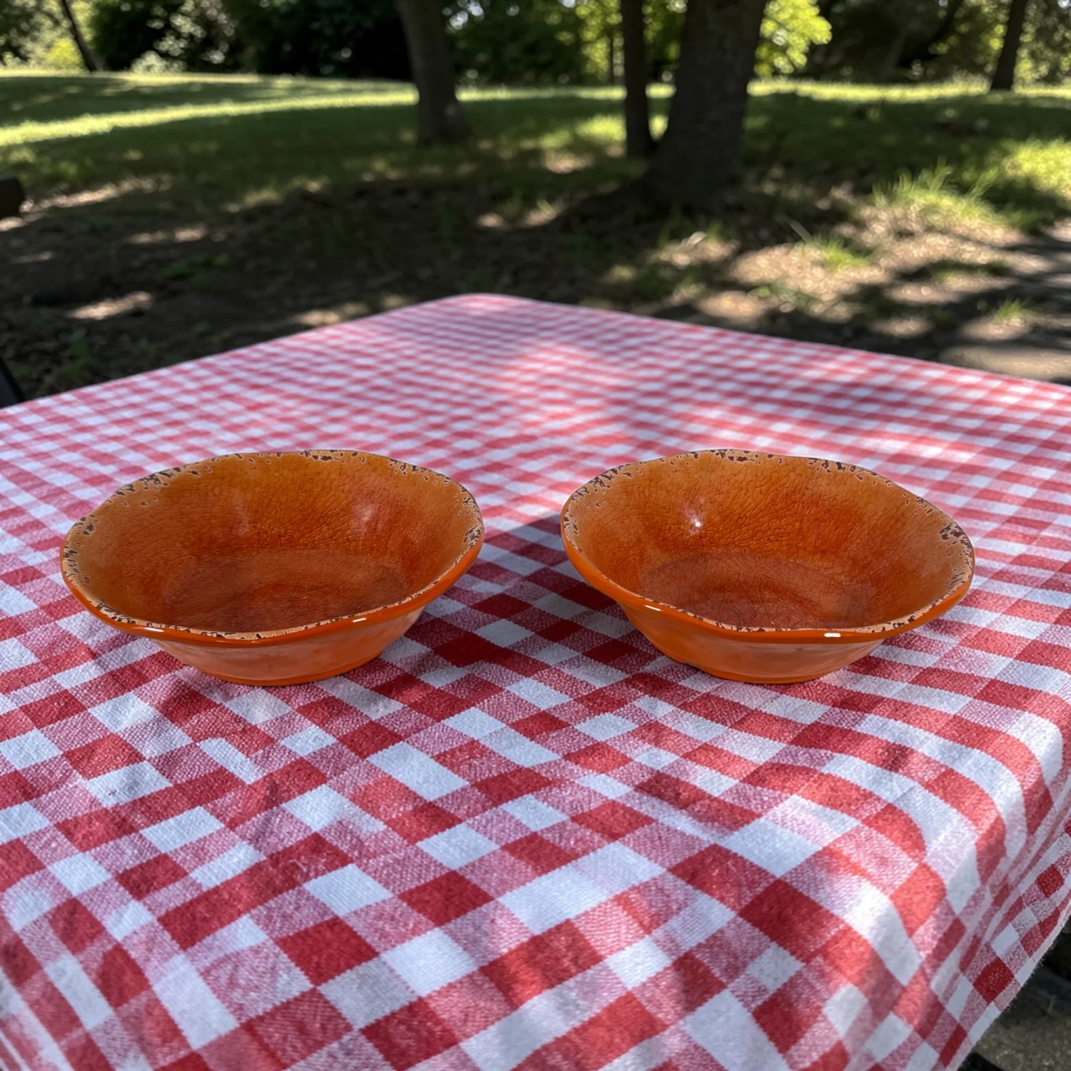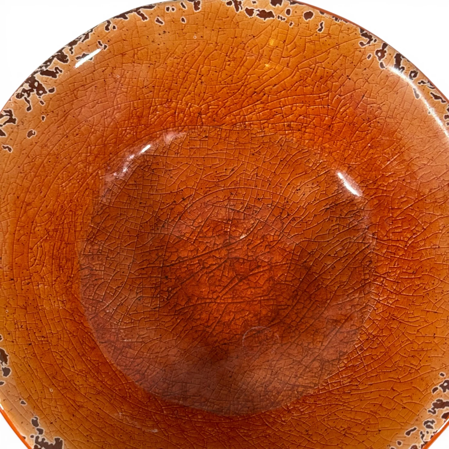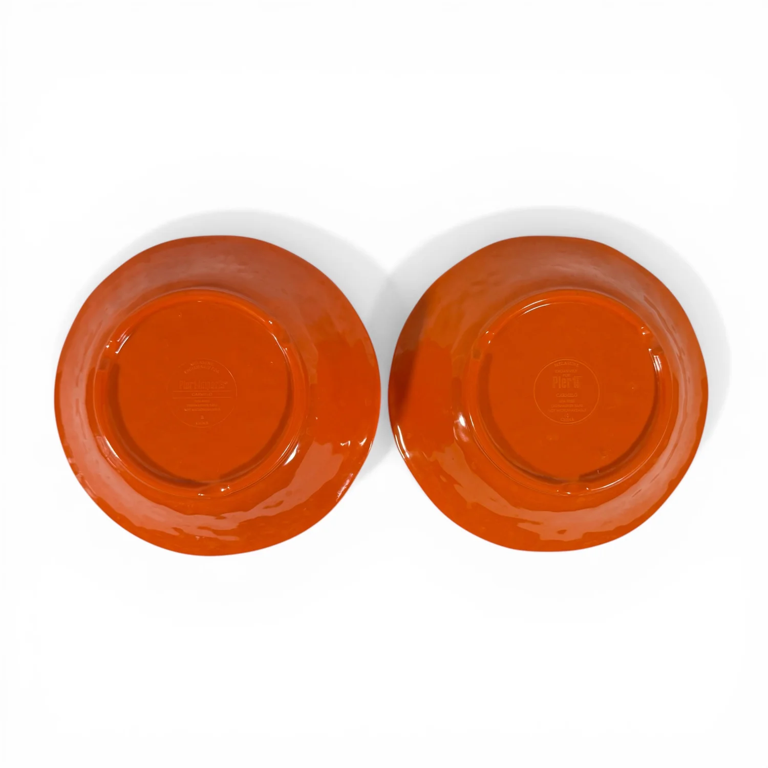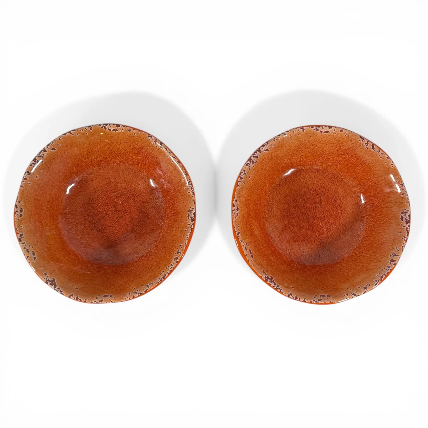 Pier 1 Imports Set of 2 Orange Carmelo Melamine Bowls Crackle Finish Distressed