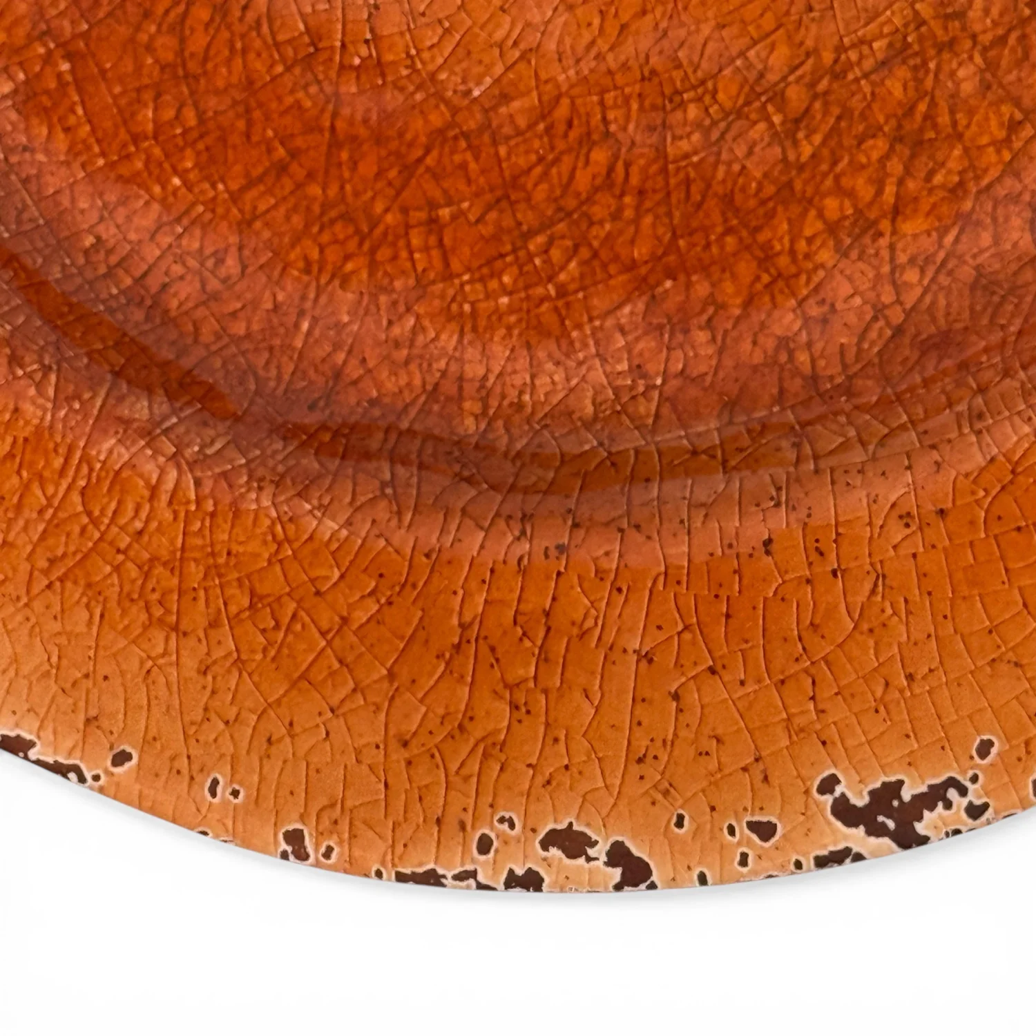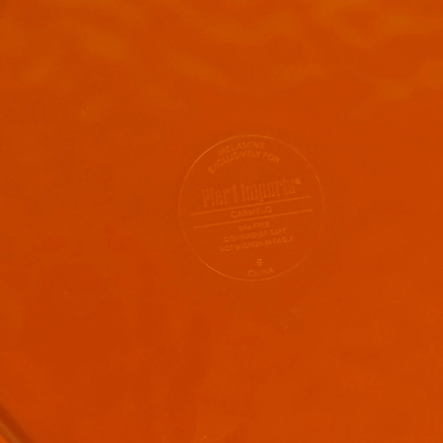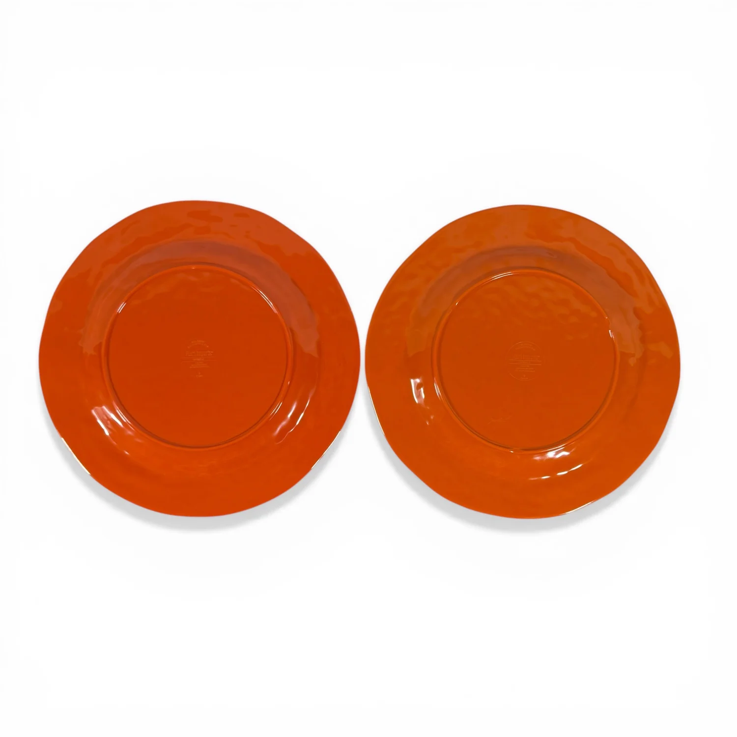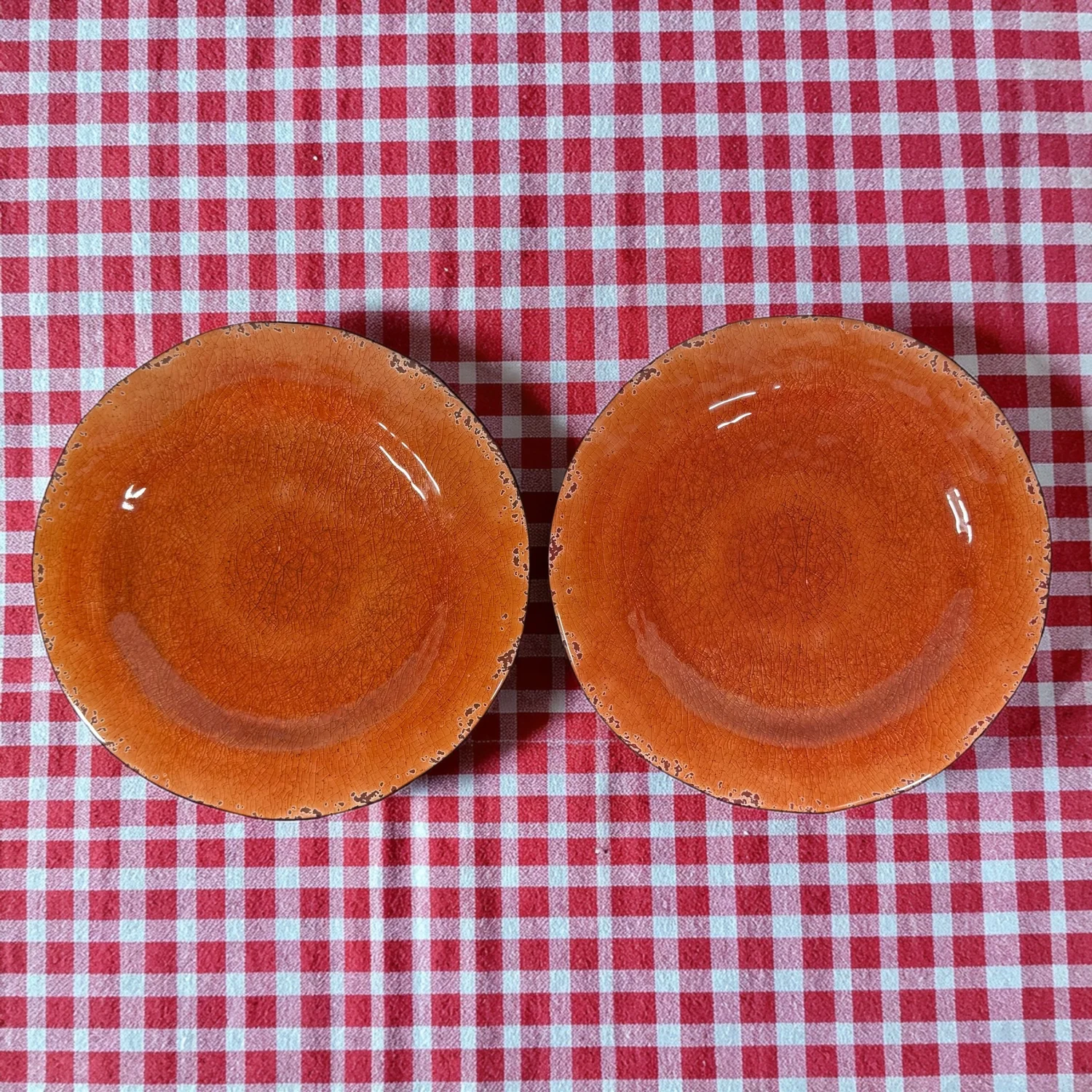 Pier 1 Imports Set of 2 Orange Carmelo Melamine Dinner Plates Crackle Finish