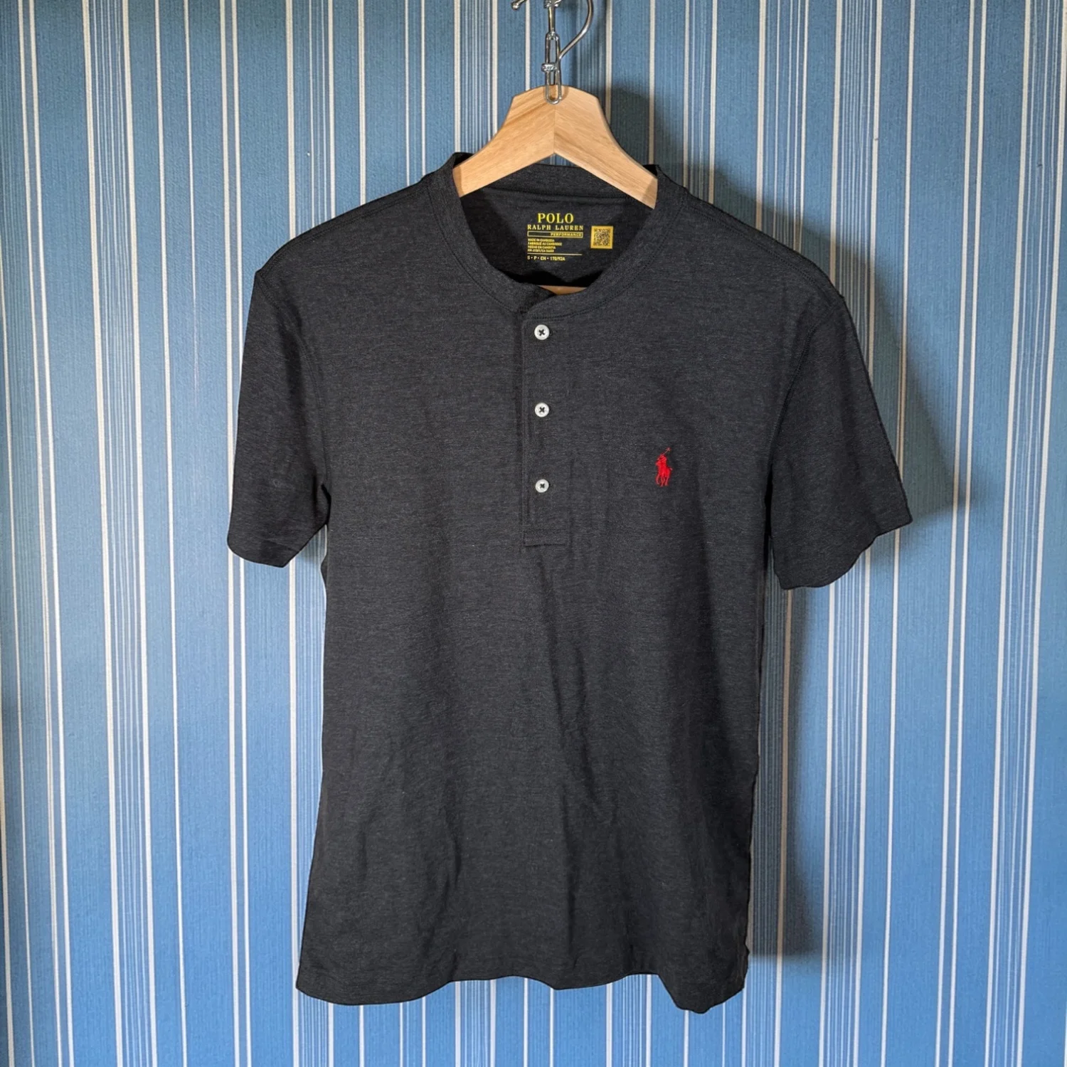 Polo Ralph Lauren Men's Small Dark Gray Cotton Blend S/S Henley Shirt Basic