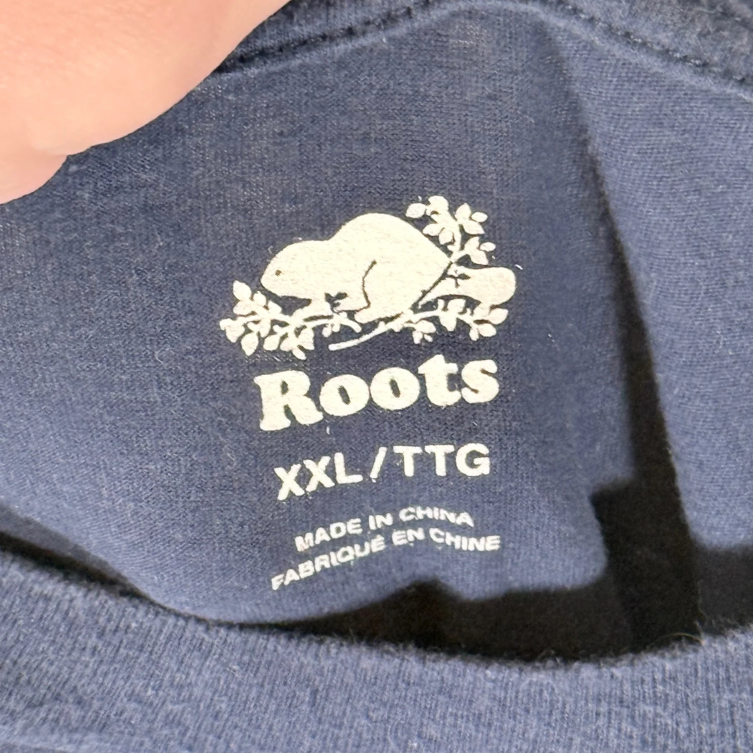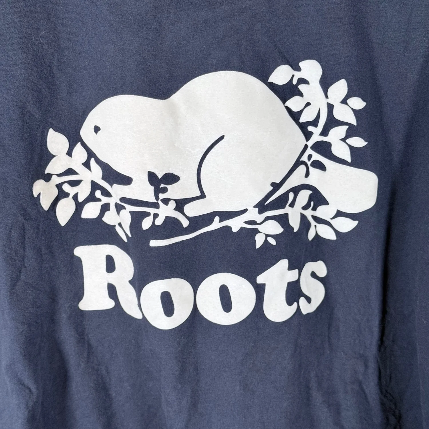 Roots Canada Men's XXL Navy Blue White Textured Graphics Logo Beaver S/S T-Shirt