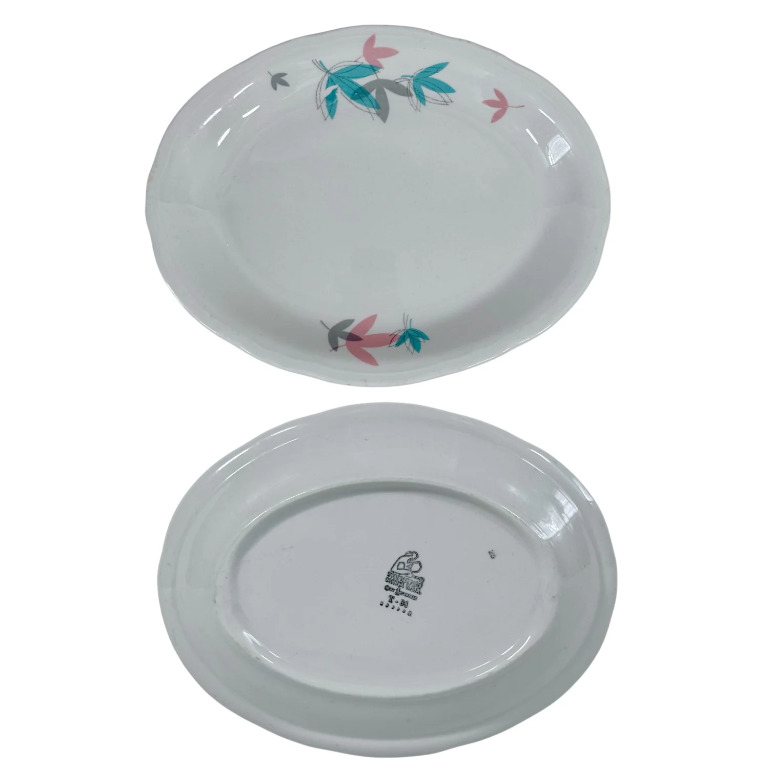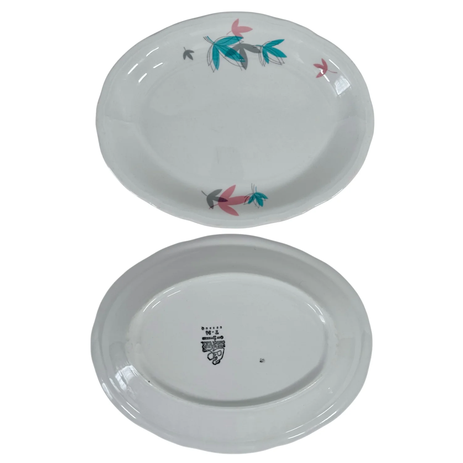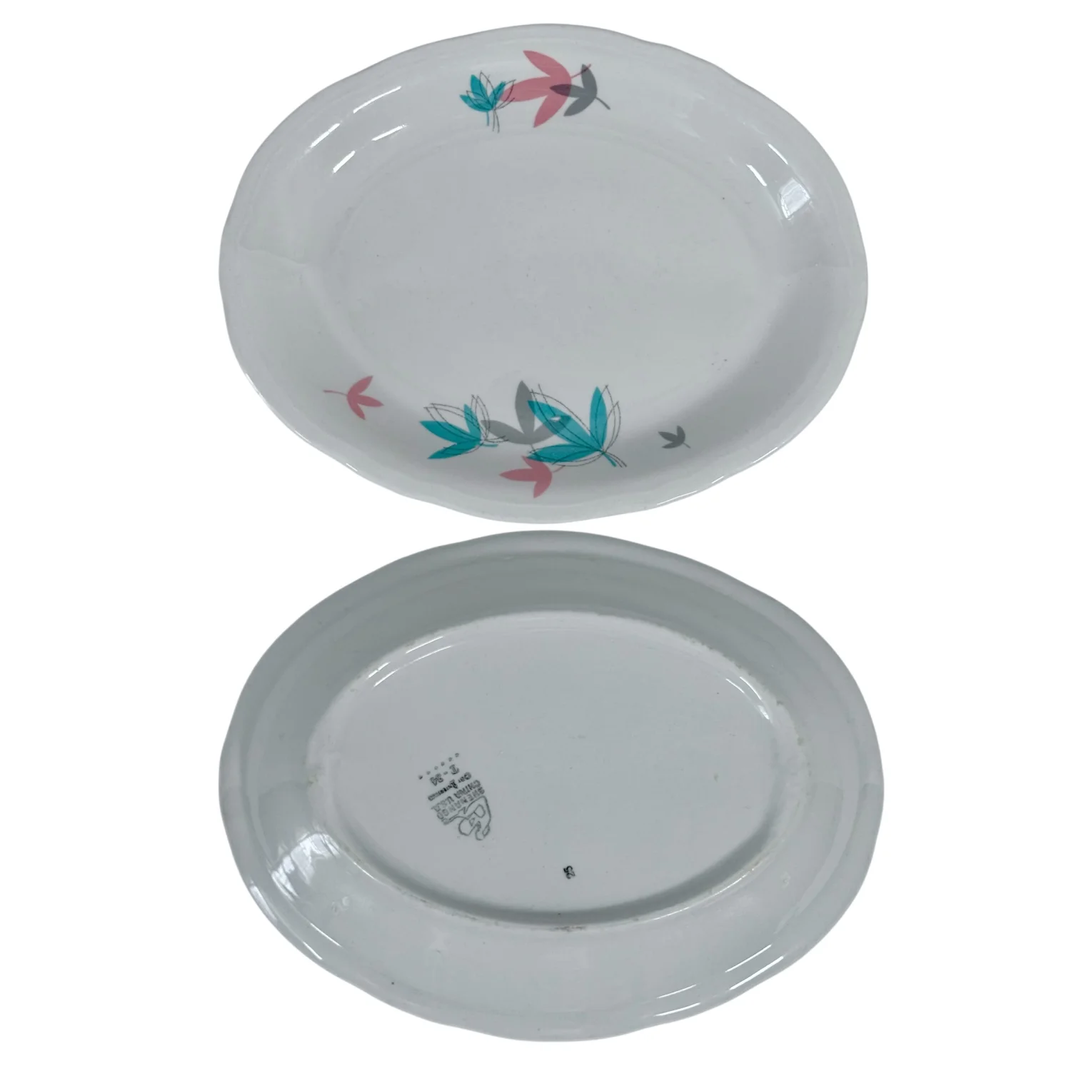 Shenango VTG Set 4 Restaurant Ware MCM Oval Plate Blue Pink Silver Leaf T-14