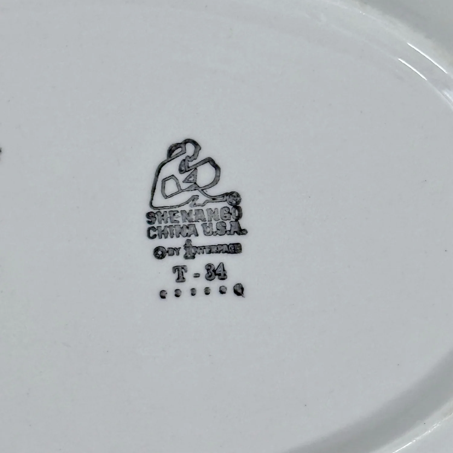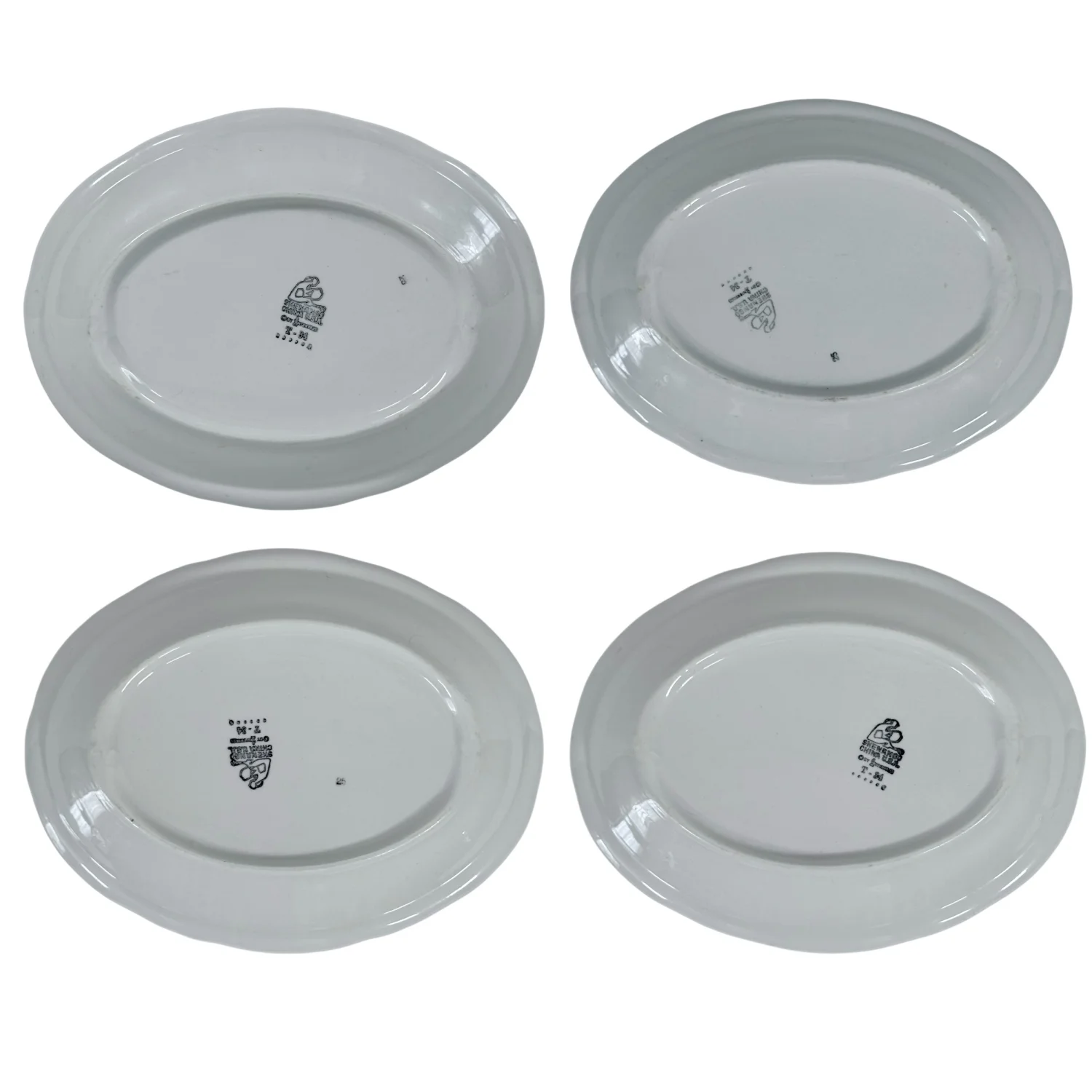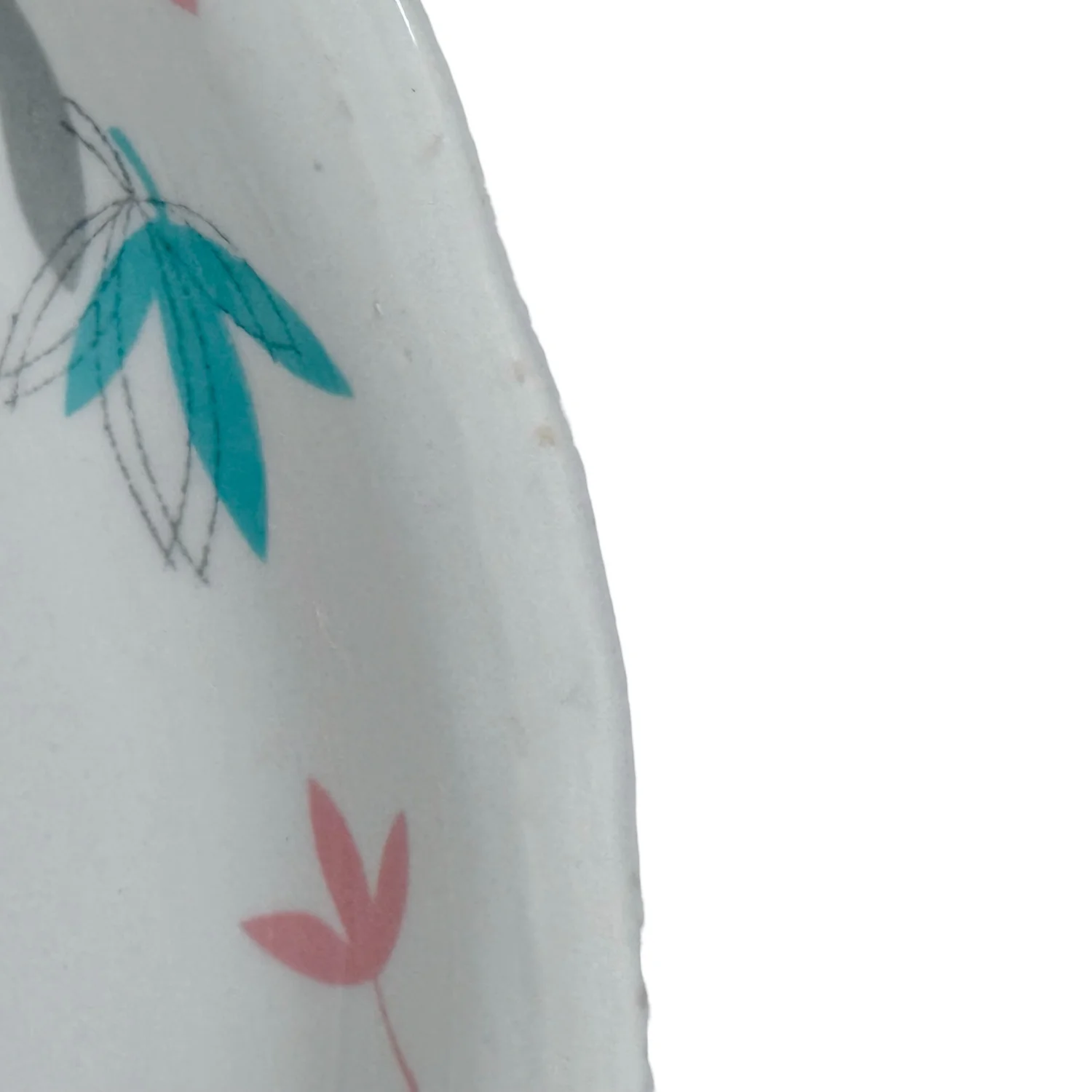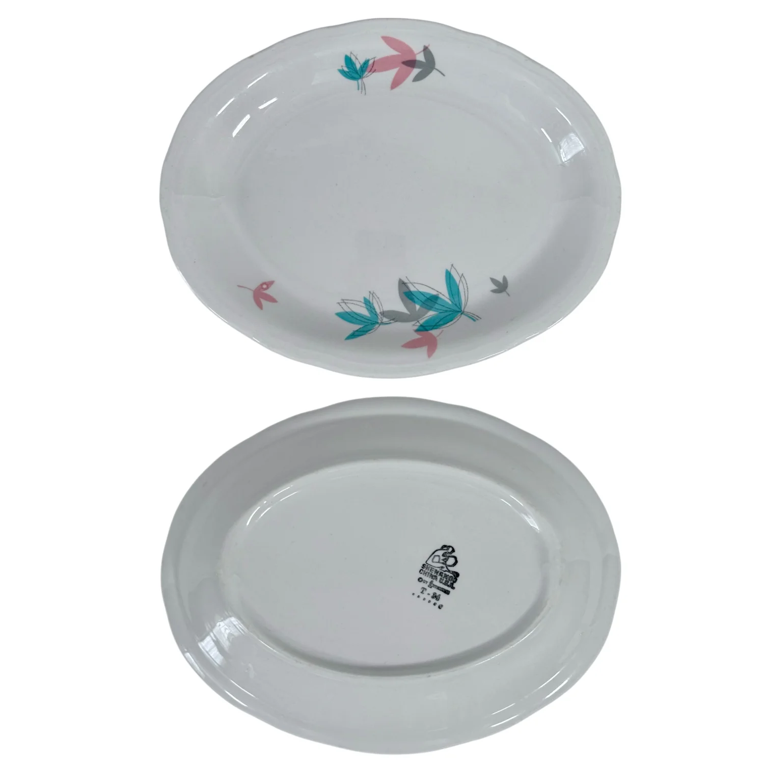 Shenango VTG Set 4 Restaurant Ware MCM Oval Plate Blue Pink Silver Leaf T-14