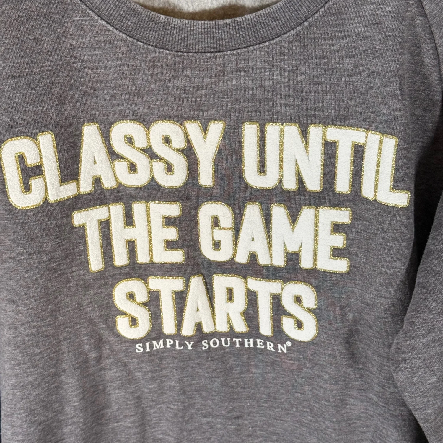 Simply Southern Women's Medium Gray CLASSY UNTIL THE GAME STARTS L/S Sweatshirt