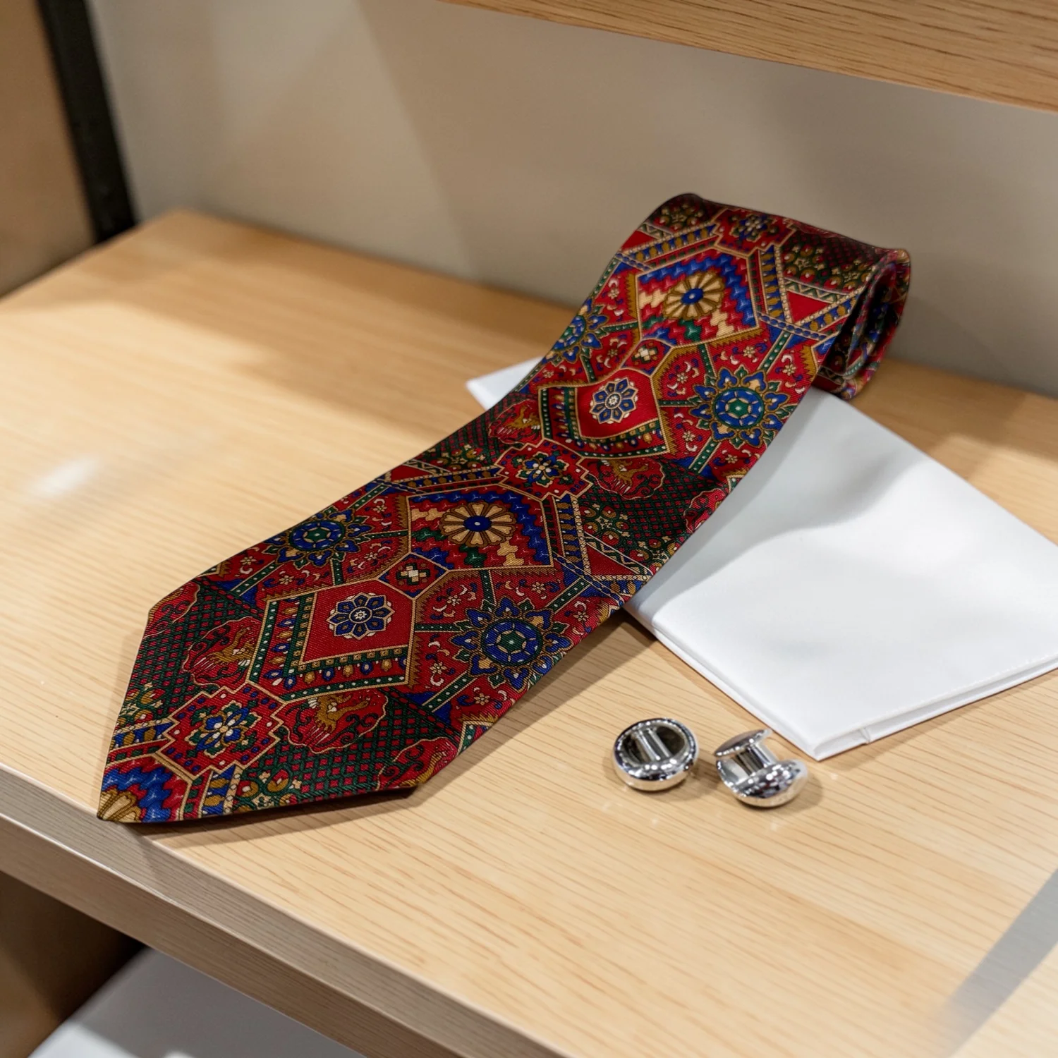Smithsonian Institution Men's 100% Silk Multicolored Arts & Crafts Pattern Gouda