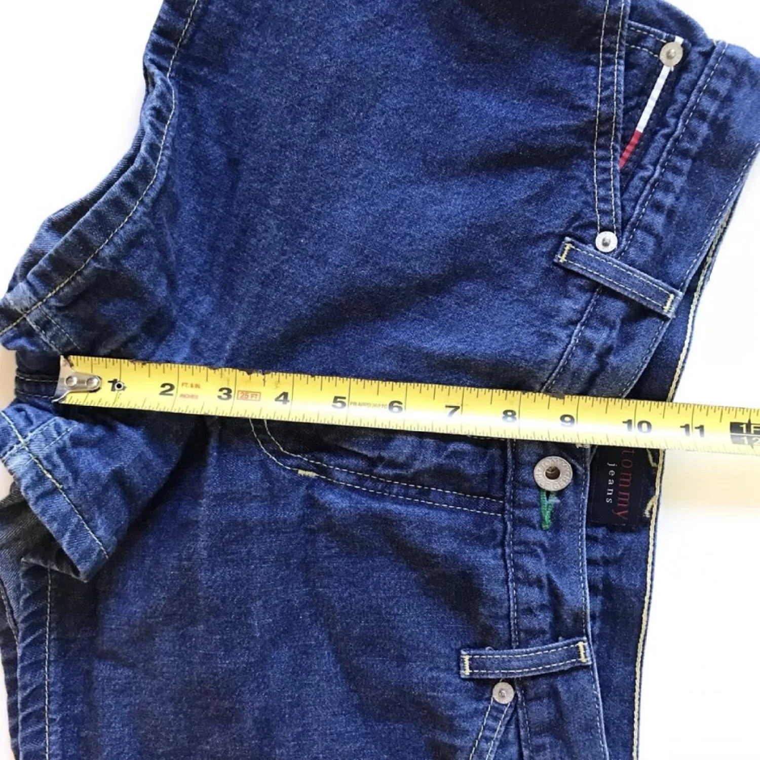 Perfect for your 90s/Y2K inspired outfit! These denim booty shorts are ready for everyday and casual wear! Features a carpenter loop and a large "tommy jeans" patch on the back. Dated 1999. Material: 100% cotton Care: Machine wash & dry Size: Women's junior 9 Condition: Good used condition with no spots or holes on the exterior. One spot on the inside under the pocket on the extra lining material. Feels hard. See pictures for details and measurements. Keywords: casual, denim, vintage, summer, preppy 20220271 15