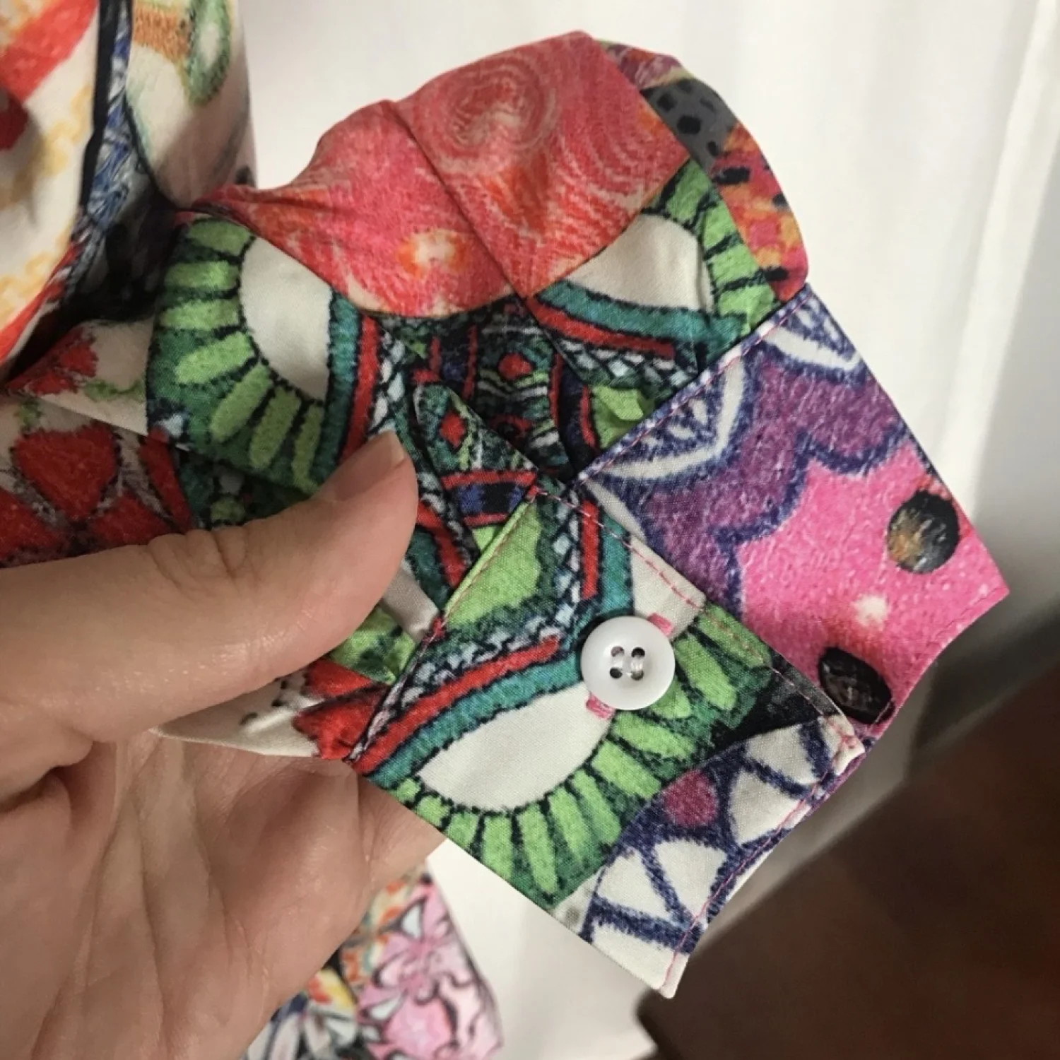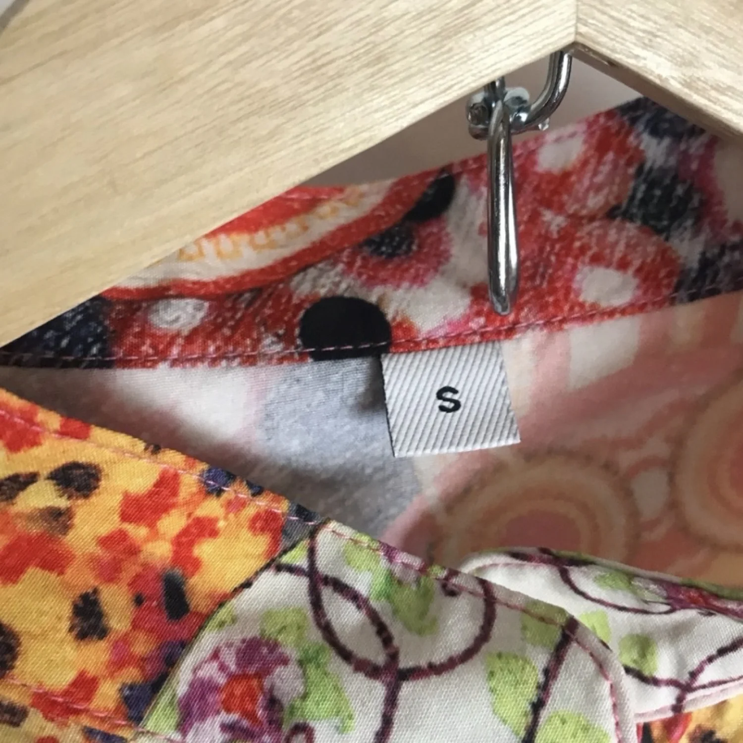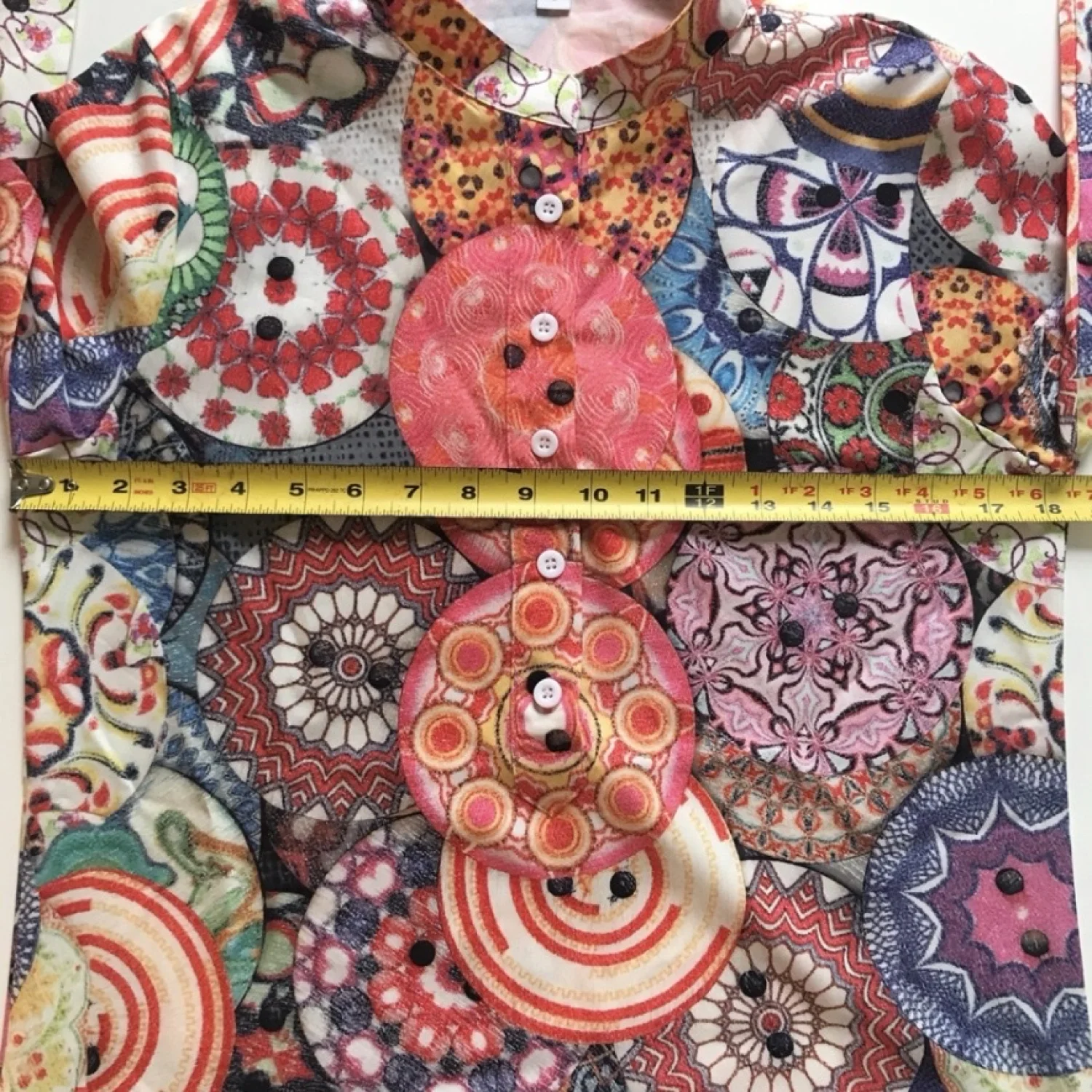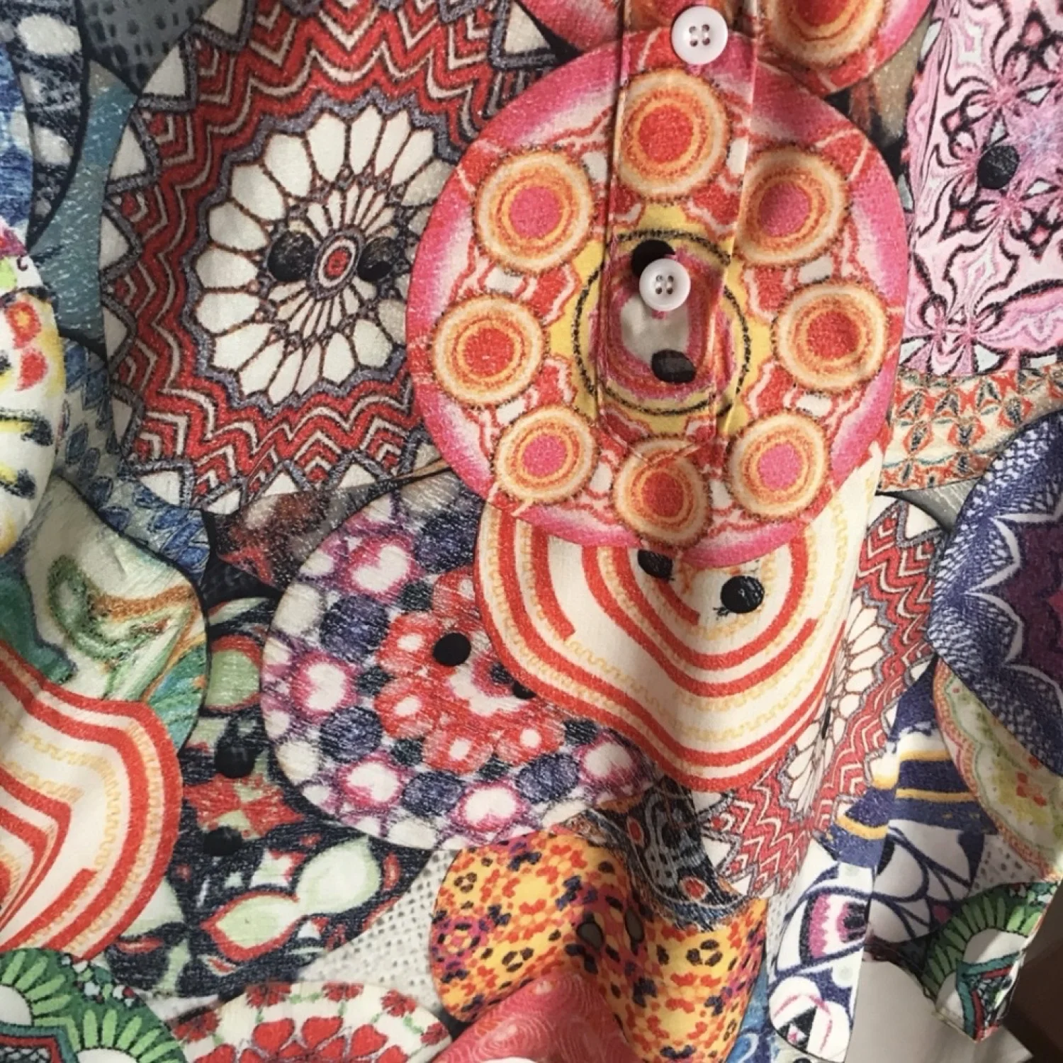 Make a statement in this gorgeous blouse! Features half button front with mock collar. Appears to be semi-fitted. No brand associated with this blouse. Material: No material tag. Feels like 100% polyester. Care: No care tag. Wash machine washed and dried on low with no issues. Size: Women's small (per tag) Condition: Good used See pictures for details and measurements. Keywords: groovy, wrinkle free, 1970s, vintage style, colorful, vibrant 20220190 51
