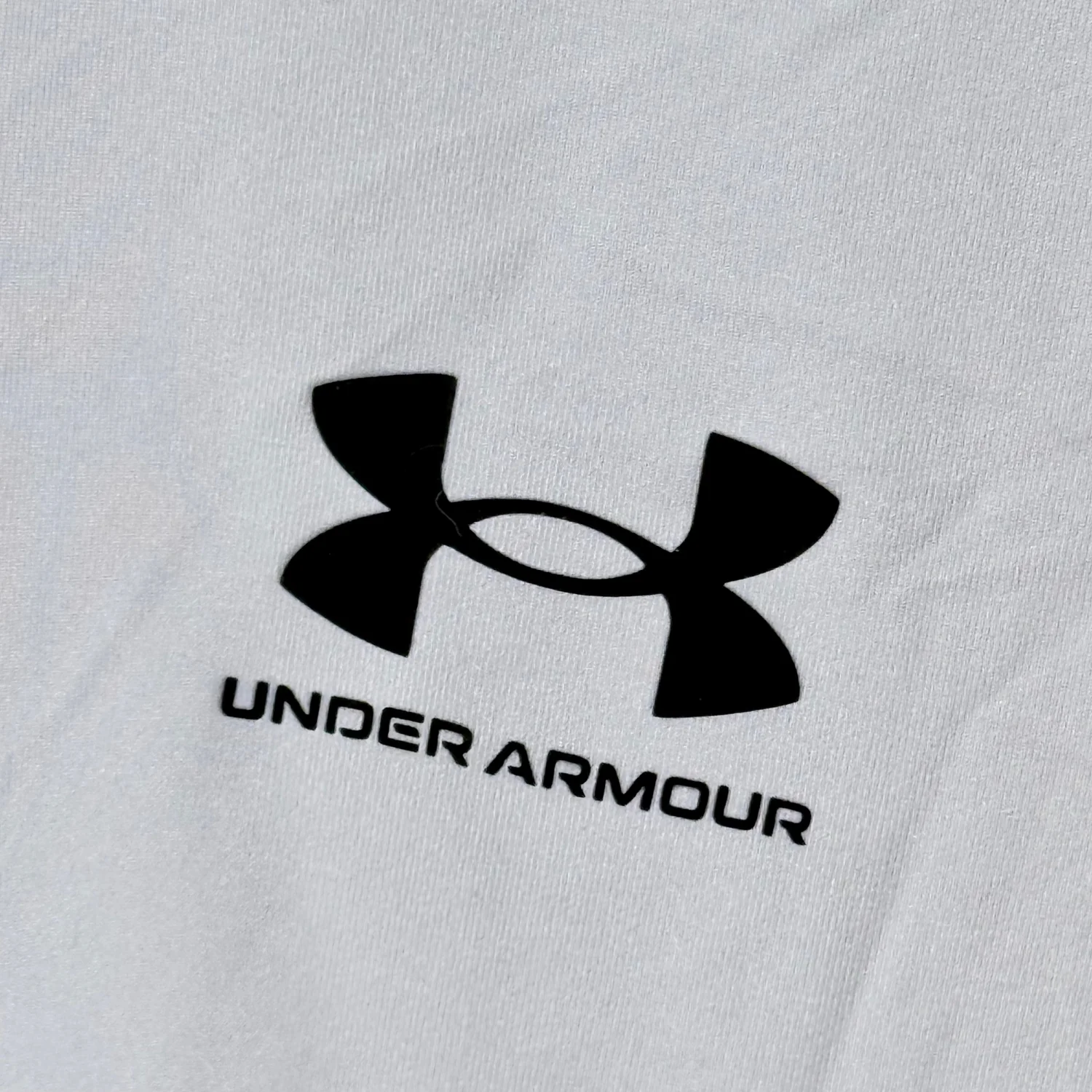 Awesome for the gym or outdoor activities! Features vented mesh-like material under arms and at each side, HeatGear technology, and is fitted. Both are in good preowned condition with mild wear. There are a couple of small faint stains on one of the shirts. The care & material tags are missing. See pictures for details. Measurements armpit to armpit 21.5" length 29" front, 30.5" back Keywords: exercise, gym, workout, sports, athleisure, performance, minimalist, basic, closet essential P20260043 7