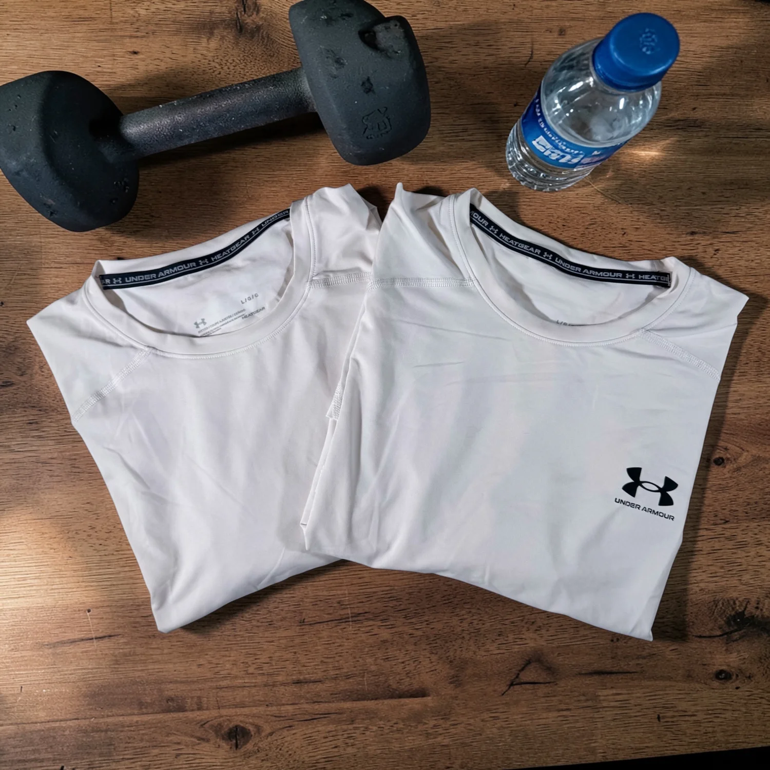 Under Armour Men's Large Set of 2 White S/S Fitted HeatGear Athletic Shirts