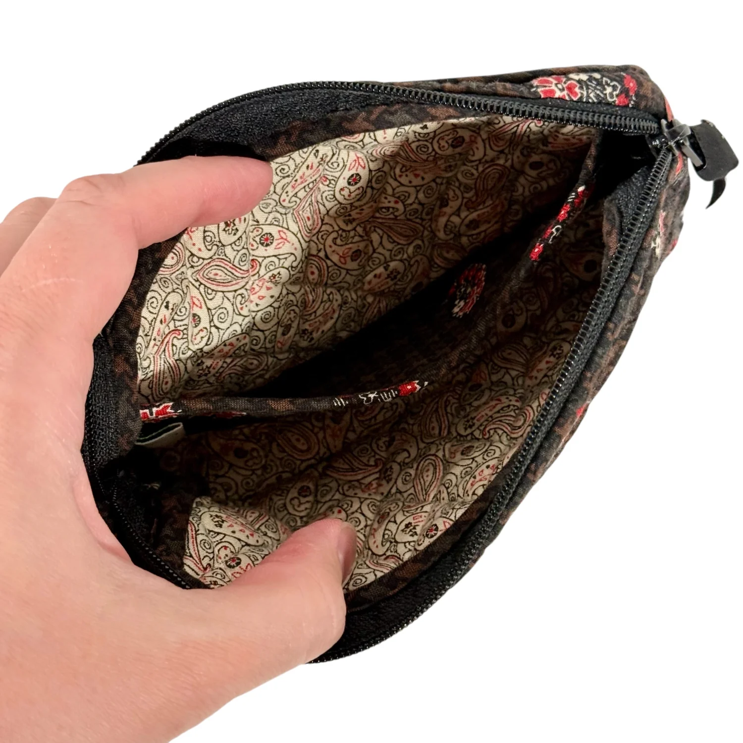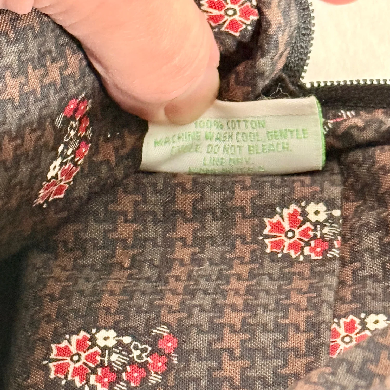 Both the handbag and wallet are in good preowned condition with mild wear. Machine washable and made of 100% cotton. See pictures for details. Handbag measurements 10.5" length 6.5" height (excluding handles) 4.25" width (taken at base) Wallet measurements 7" length 4" width Keywords: accessories, purse, feminine, academia, retro style P20260097 203