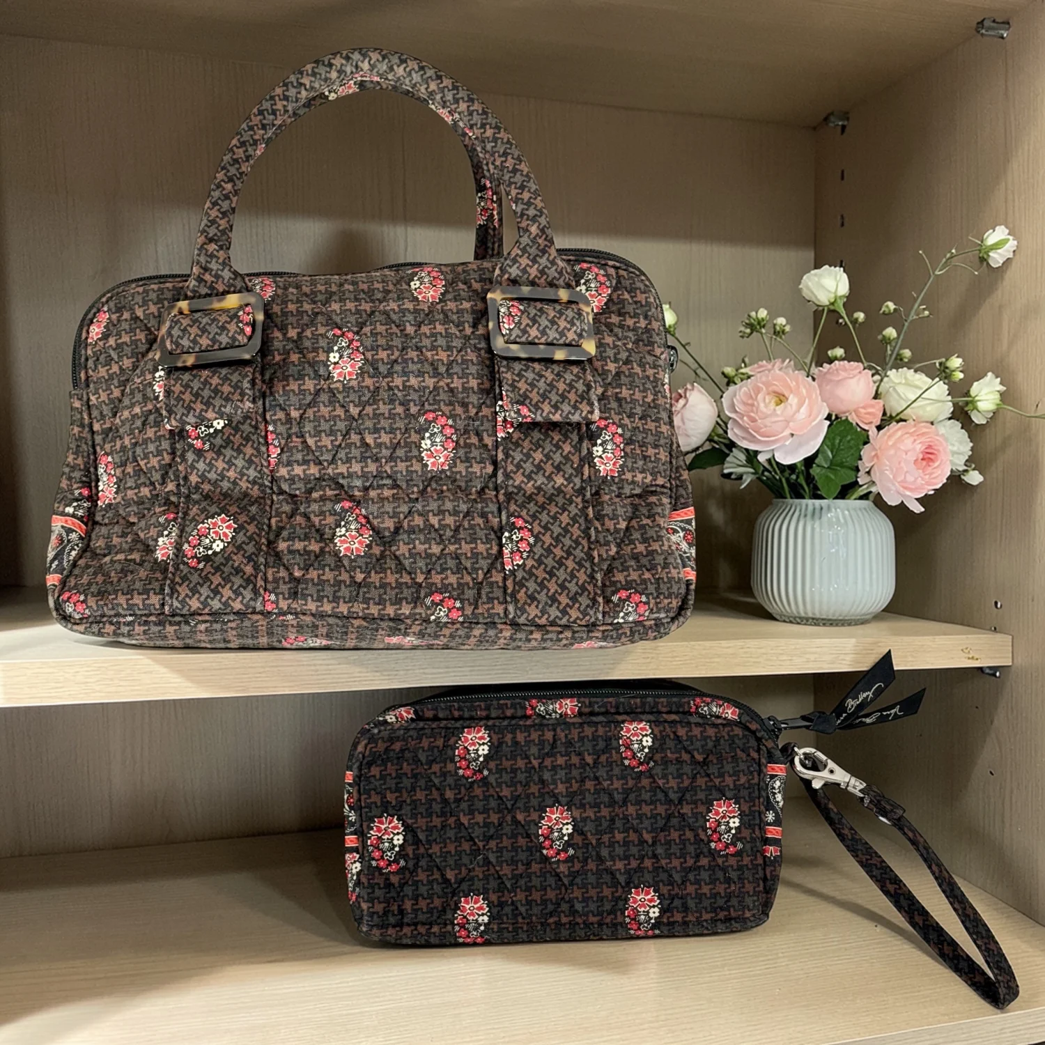 Vera Bradley Women's Brown Houndstooth & Floral Lucy Handbag & Wallet Retired