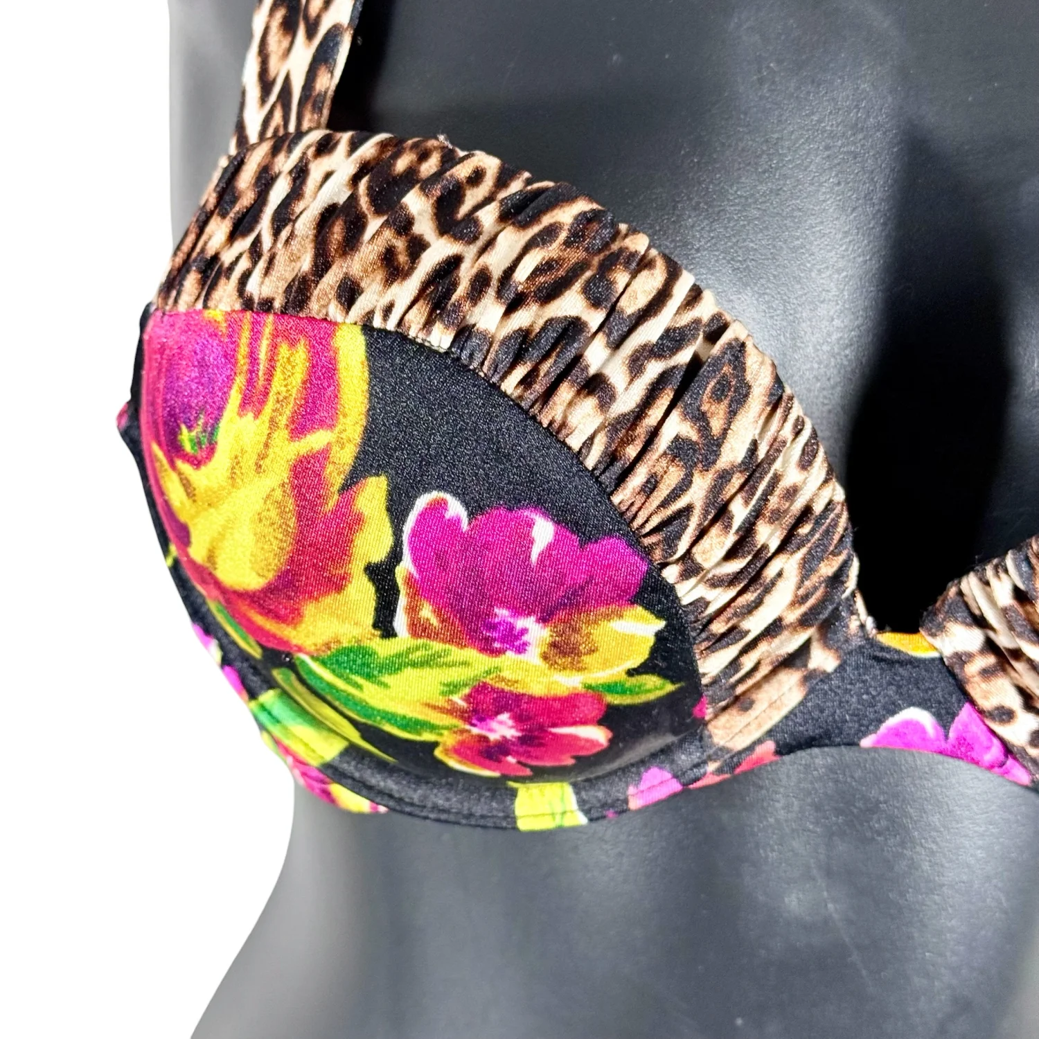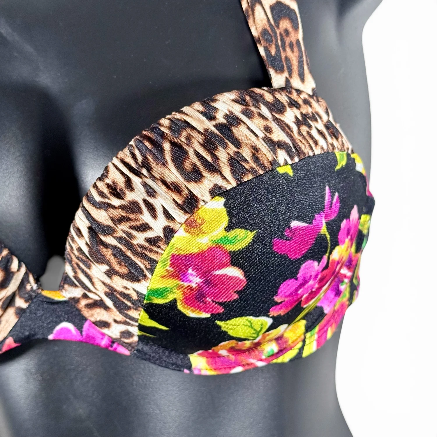 Victoria's Secret Women's 34B Bombshell Floral & Leopard Print Halter Bikini Top