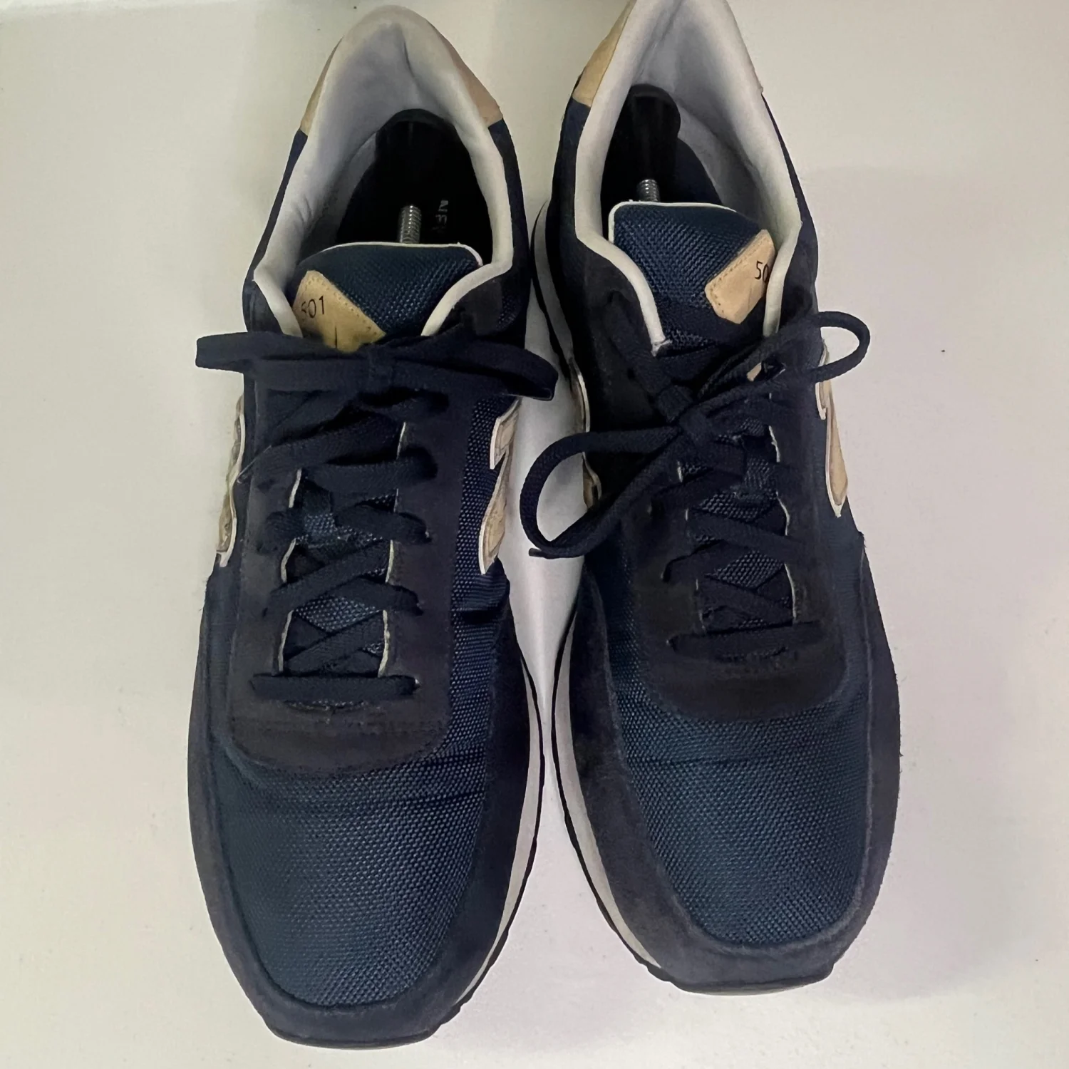 No box. Shoes have been cleaned, disinfected, and stored in freezer bags. Toe box creasing. Light midsole and outsole dirt.
