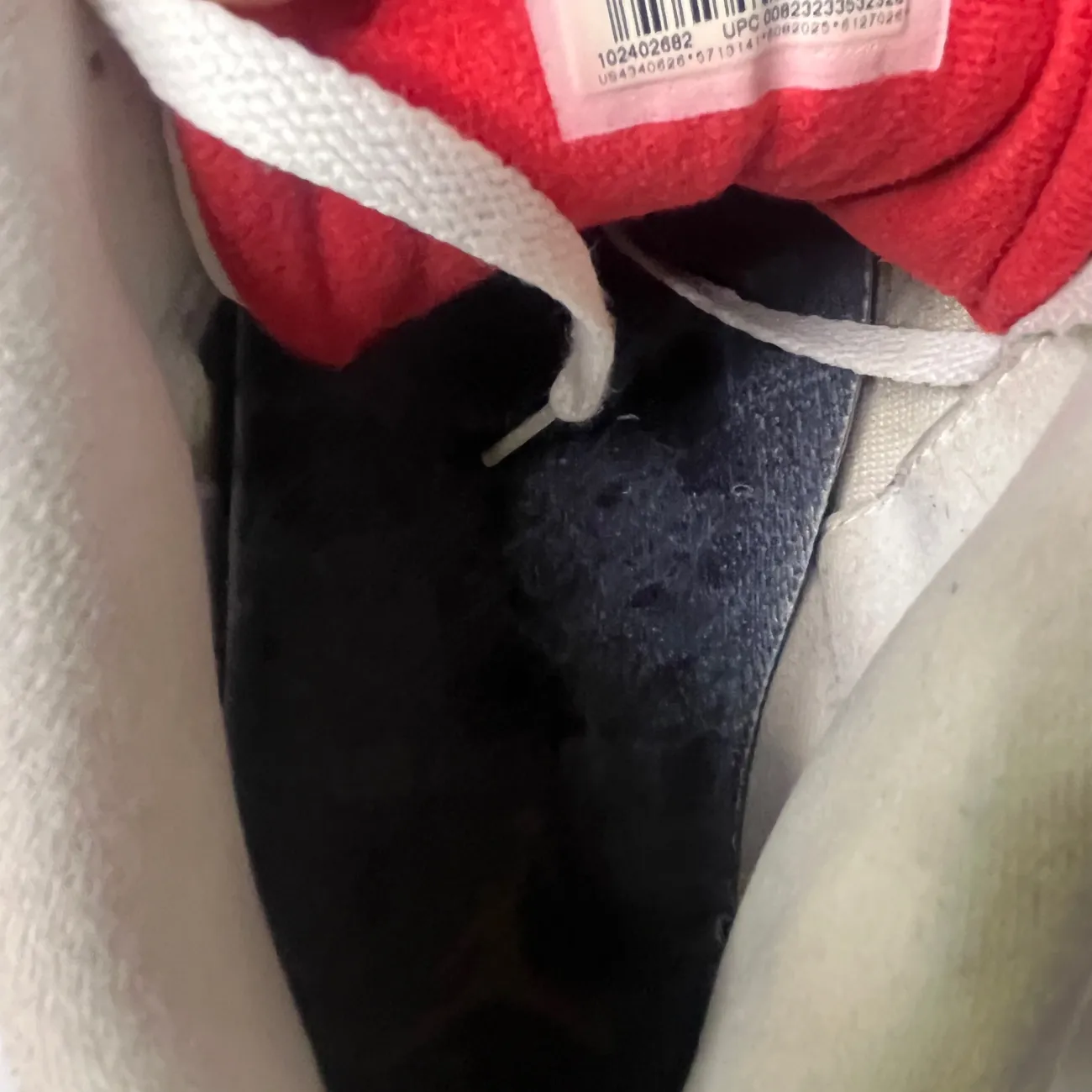 No box. Replacement insoles. Shoes have been cleaned, disinfected, and stored in freezer bags. These have definitely had a midsole repaint. The midsoles have large depressions in them, particularly across the heel area (attempted to photograph this as best I could). Toe box creasing. Outsole wear.