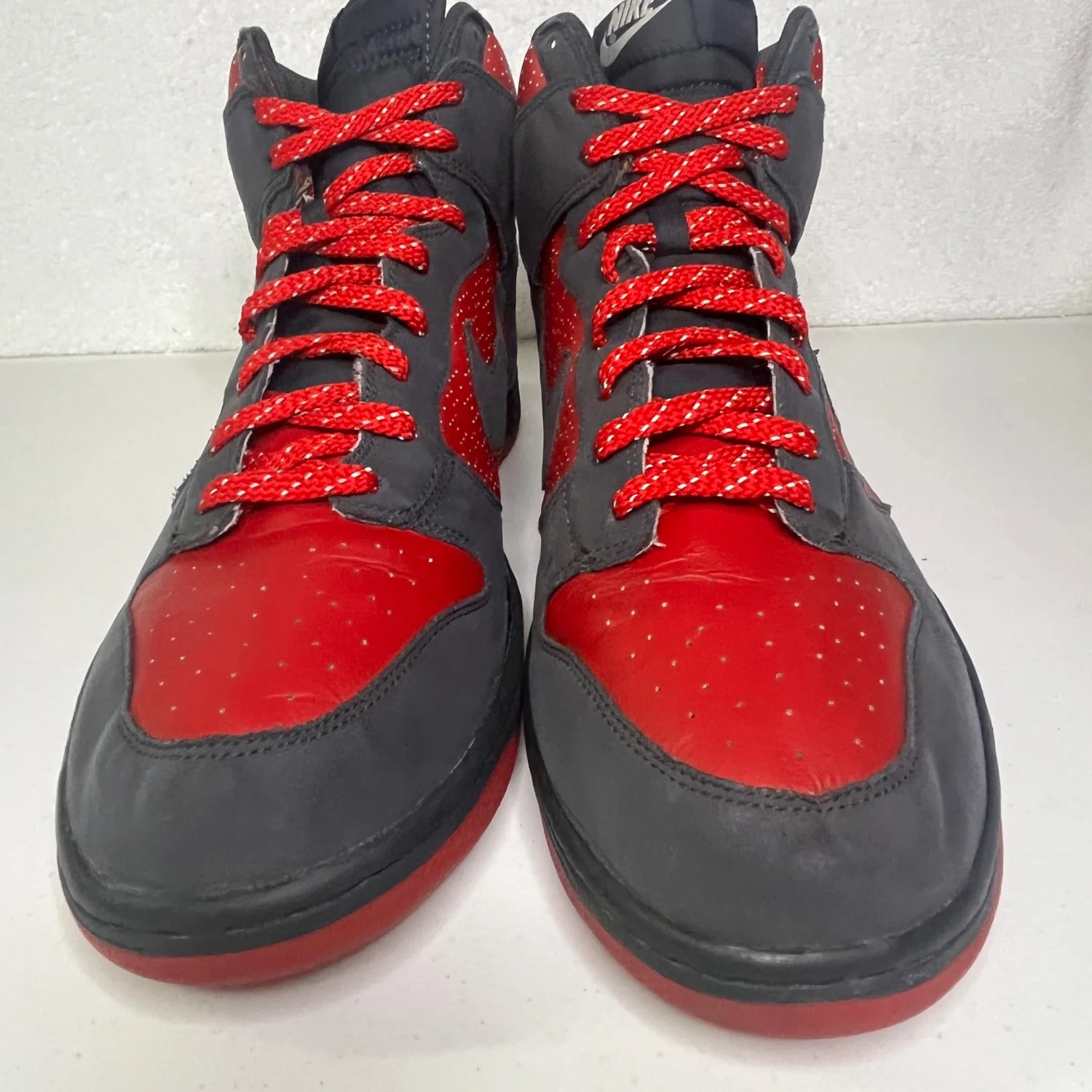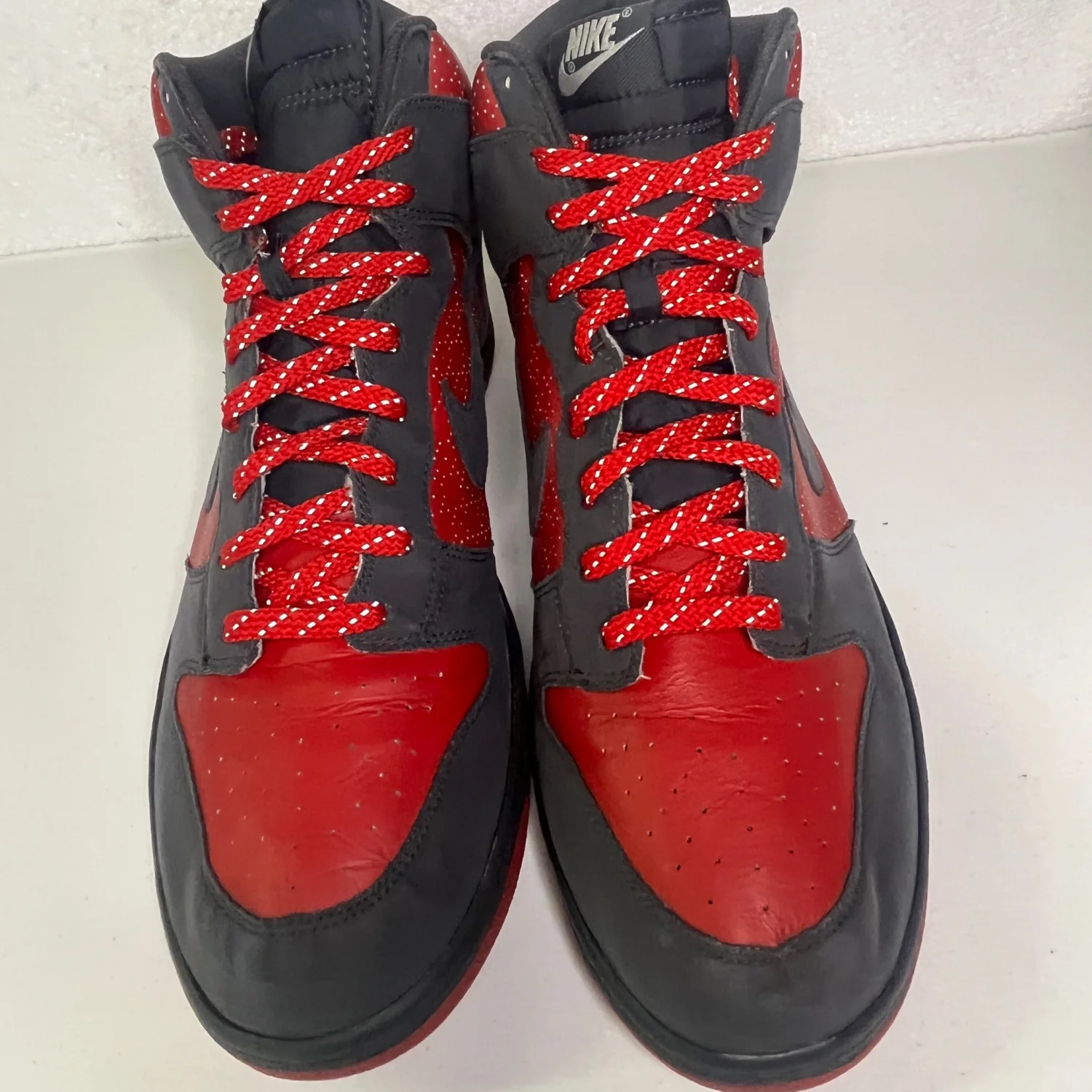 Vintage circa 2009. No box. Shoes have been cleaned, disinfected, and stored in freezer bags. Replacement laces and insoles. Toe box creasing. Some dirt on the outsoles. There is separation above the stitch line on the midsoles.