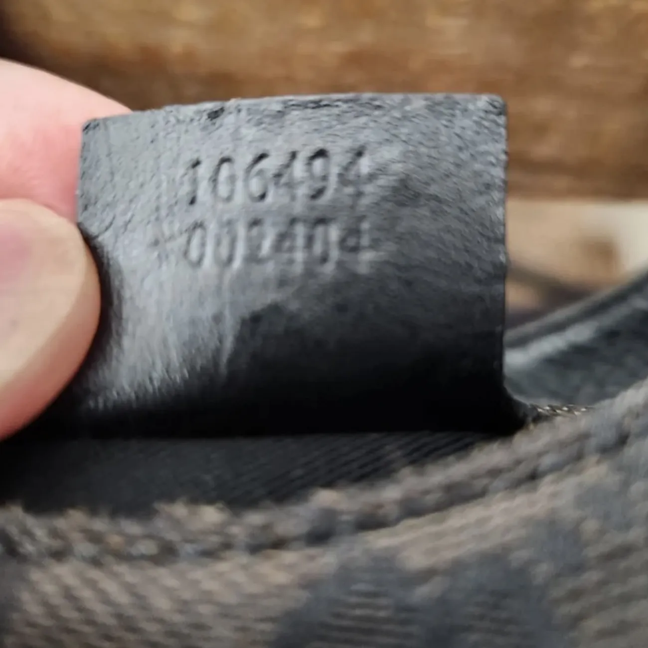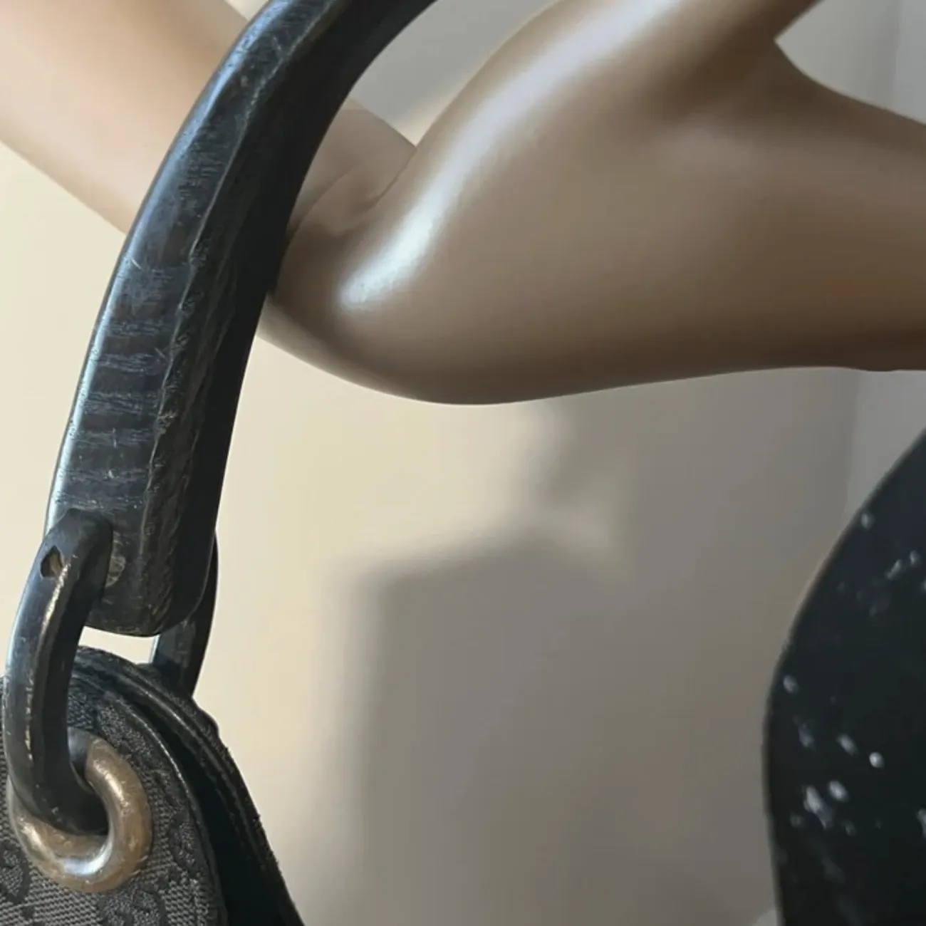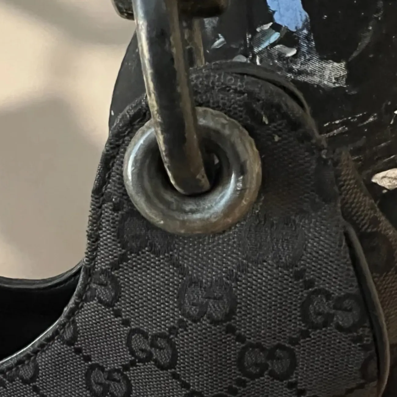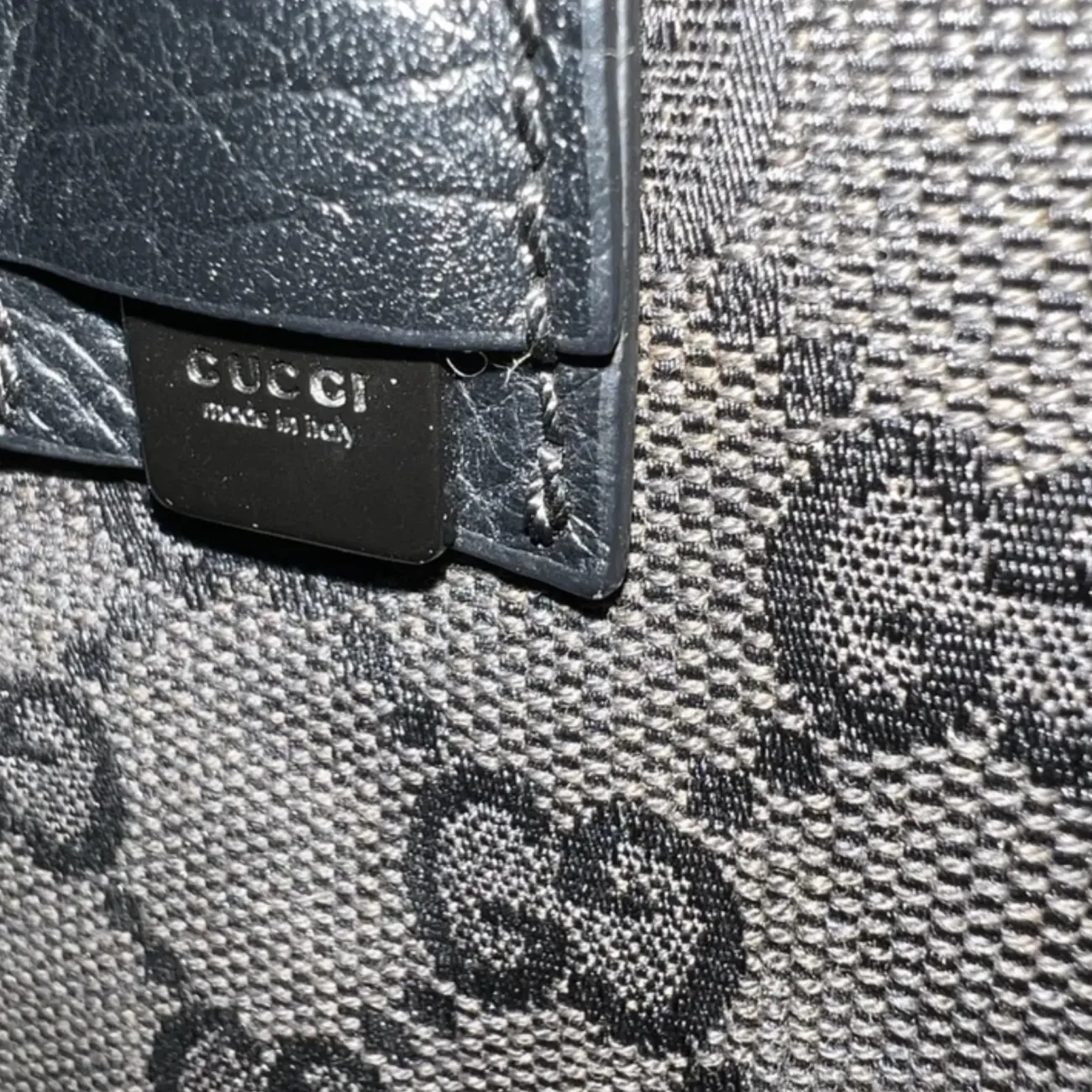 Black Gucci GG Logo Shoulder Bag Hardware: Black Wood Exterior Material: Canvas Lining Material: Cotton Handle/Strap: Wood *White Stain- inside bag Bag has loose wooden circles around the bottom handle Inside zipper pocket Open face interior Serial Number: 106494002404 Size 13” length @ base highest is 10”x 5.5” wide @ base AUTHENTIC𖥸