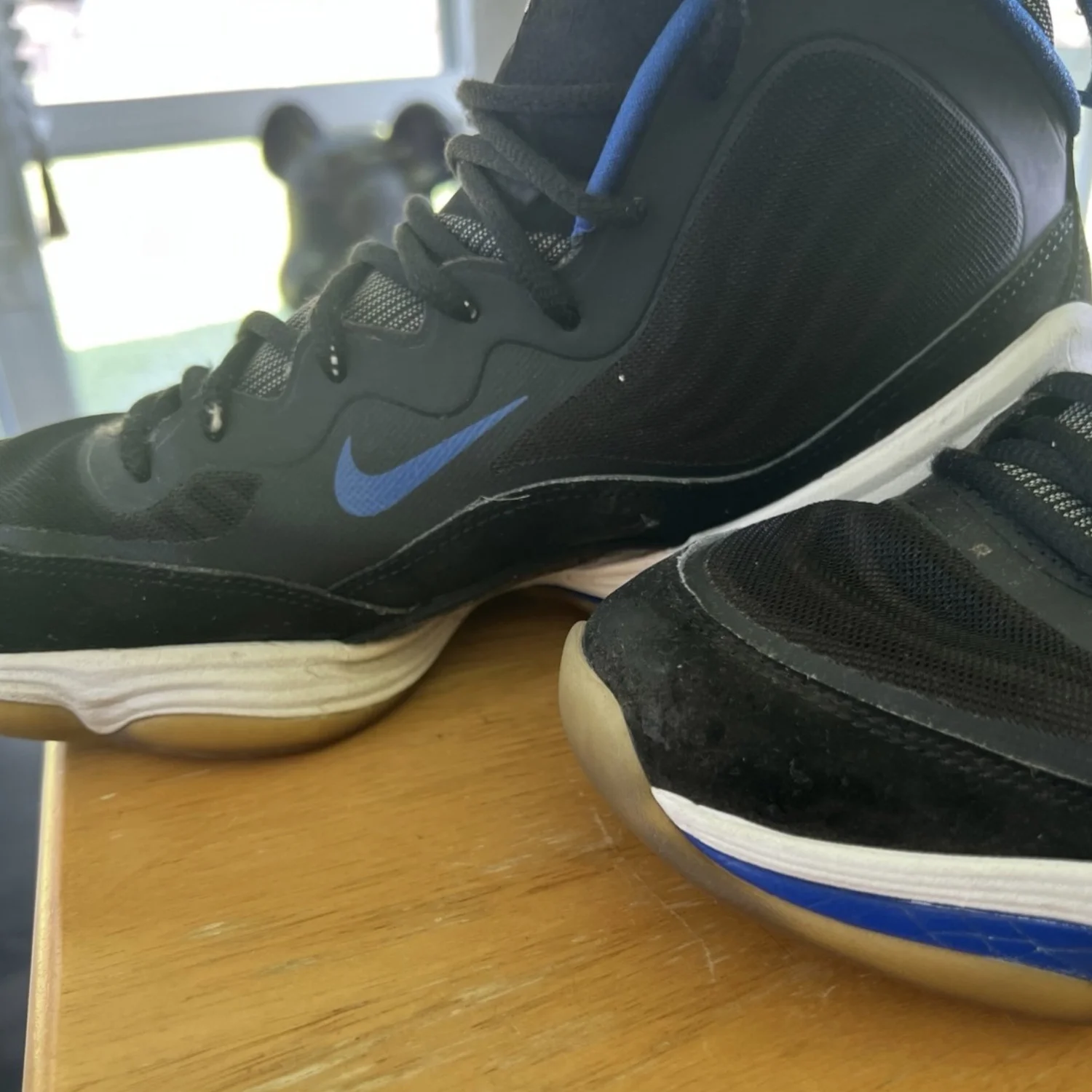 Basketball Shoes Sneakers Size 10.5 Color- Black, Blue, White Pre-Owned Shows Wear No Original Box Lace Up Closure Fair Condition