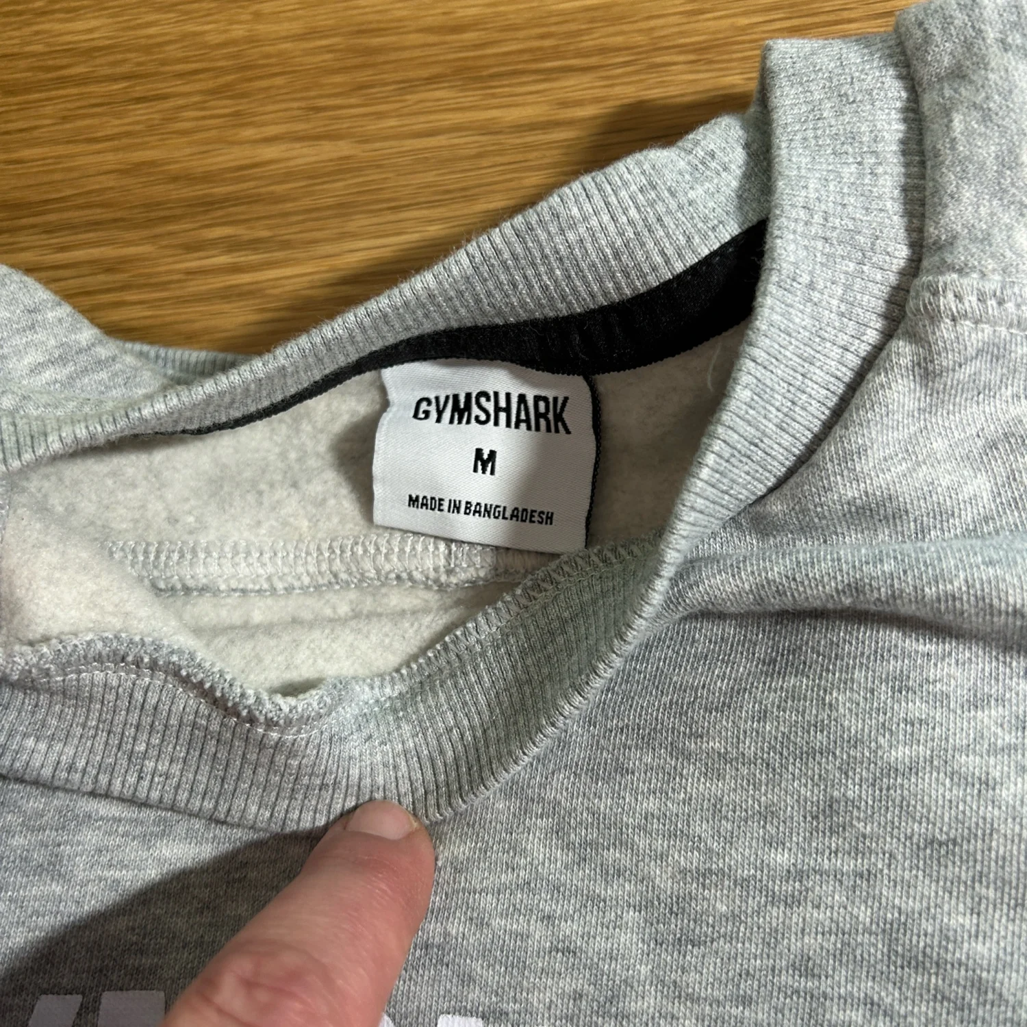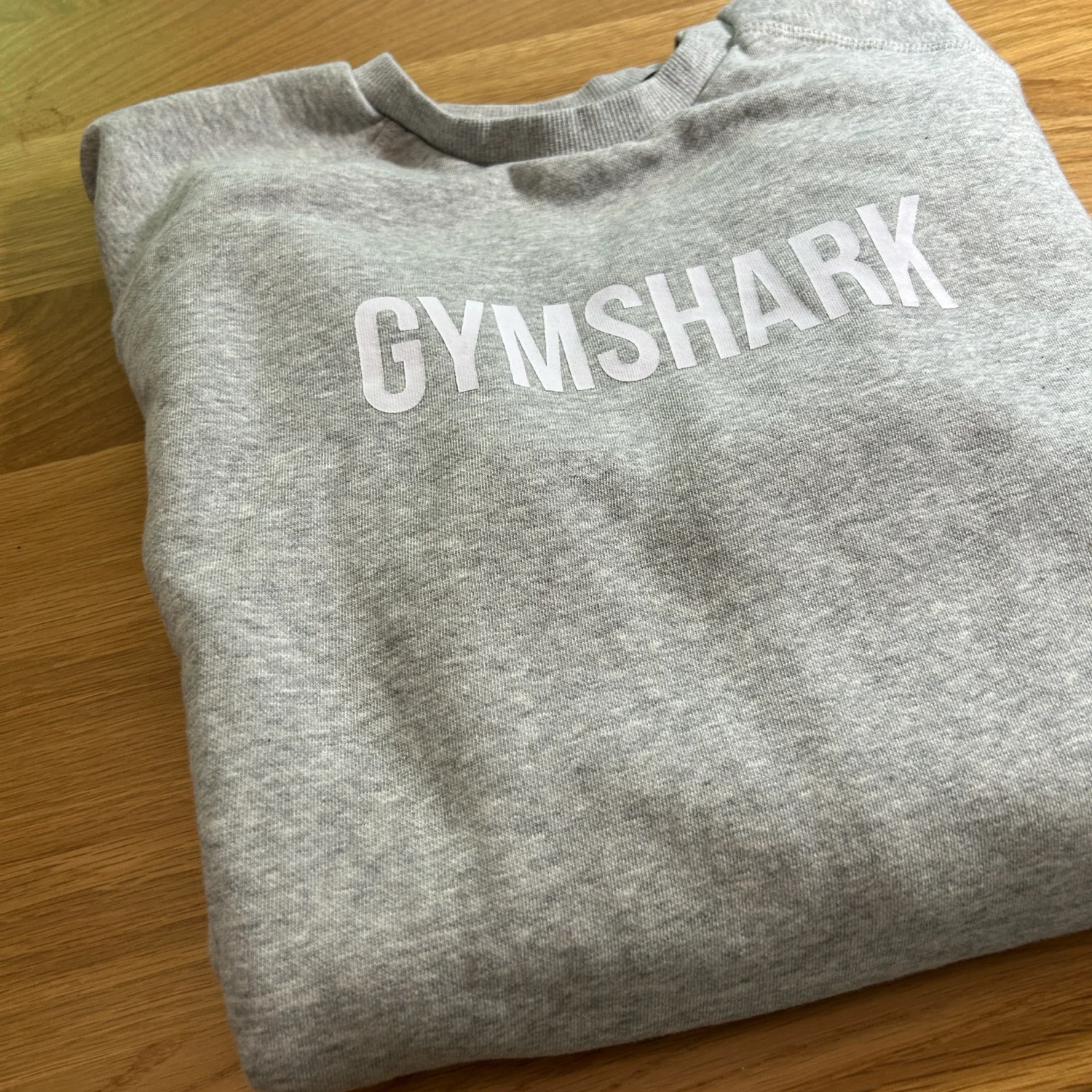 Medium-sized grey Gymshark sweatshirt featuring a classic crew neck design and fleece-lined interior for added warmth and comfort. Ideal for casual wear or workouts. #Gymshark #CasualWear #Athleisure