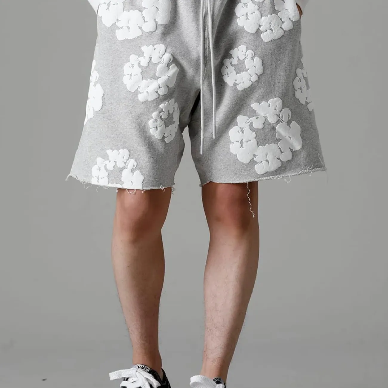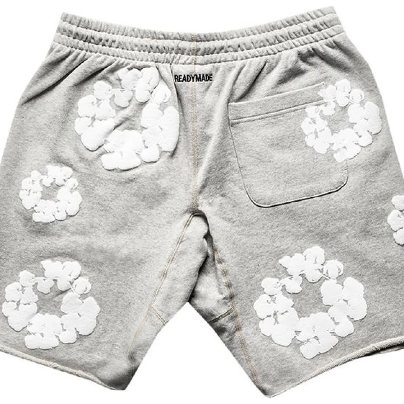 READYMADE x Denim Tears Cotton Wreath Sweatshorts 'Grey/White' These READYMADE x Denim Tears sweatshorts are printed with Tremaine Emory's signature cotton wreath motif. Made for the FW22 season, the grey pair is crafted from cotton and topped with an adjustable waist.