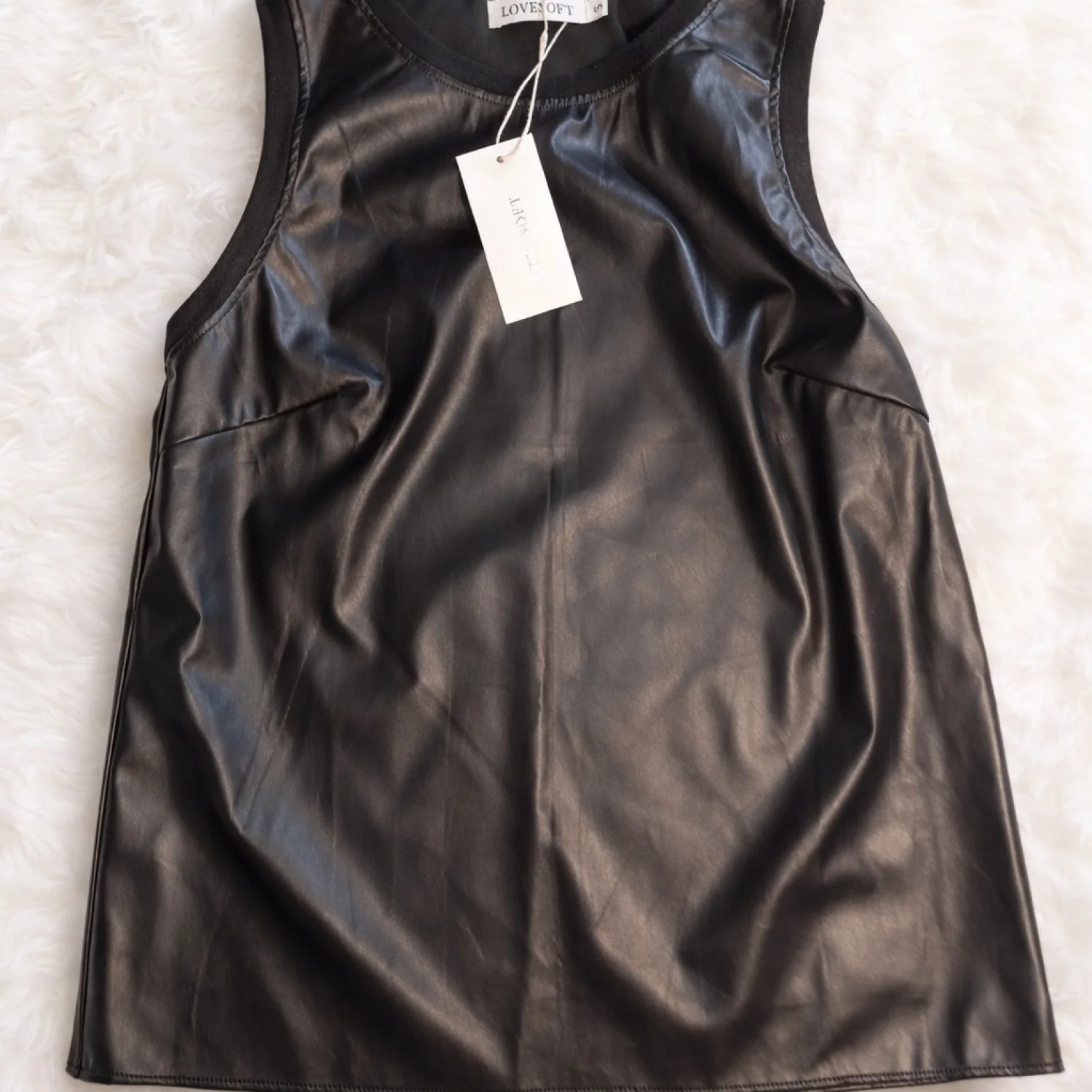 Love Soft Black Faux Leather Tank Top Small NWT Chic Edgy Minimalist Staple