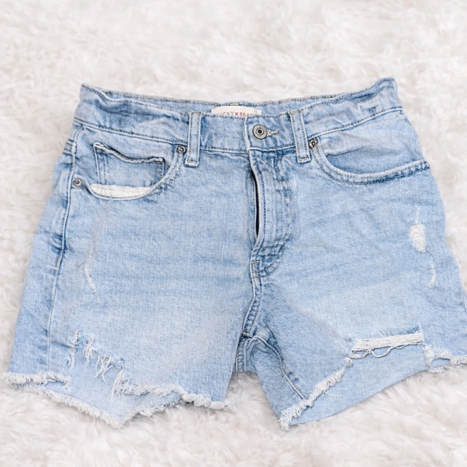 Lucky Brand Distressed Denim Shorts Light Wash Frayed Hem Size 2/26