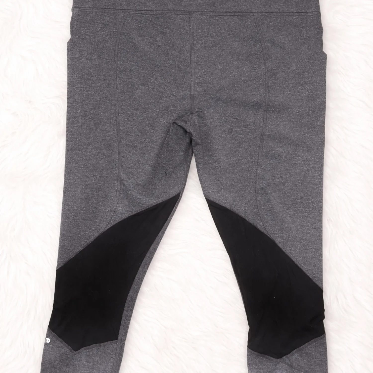 Lululemon Gray Black Cropped Leggings Size 10 Athleisure Workout Pants