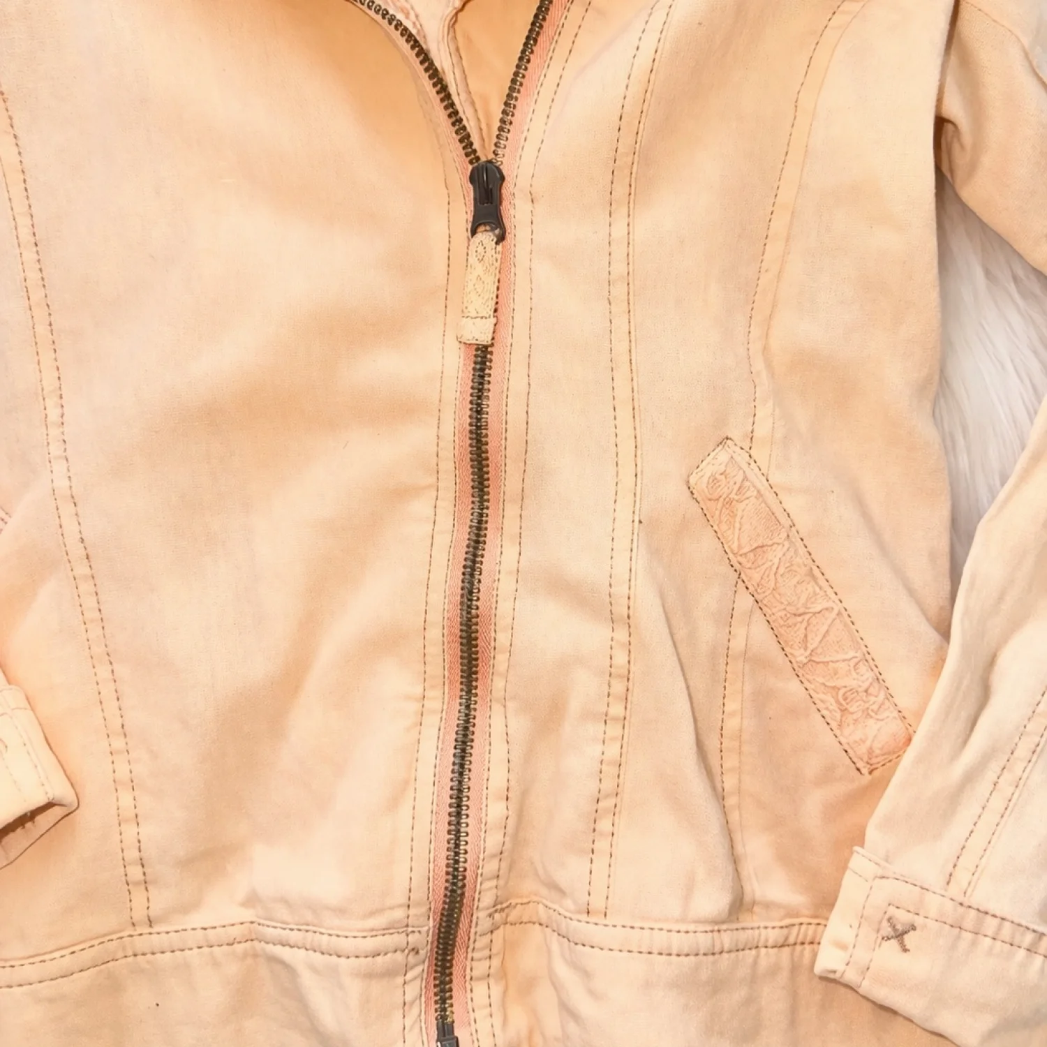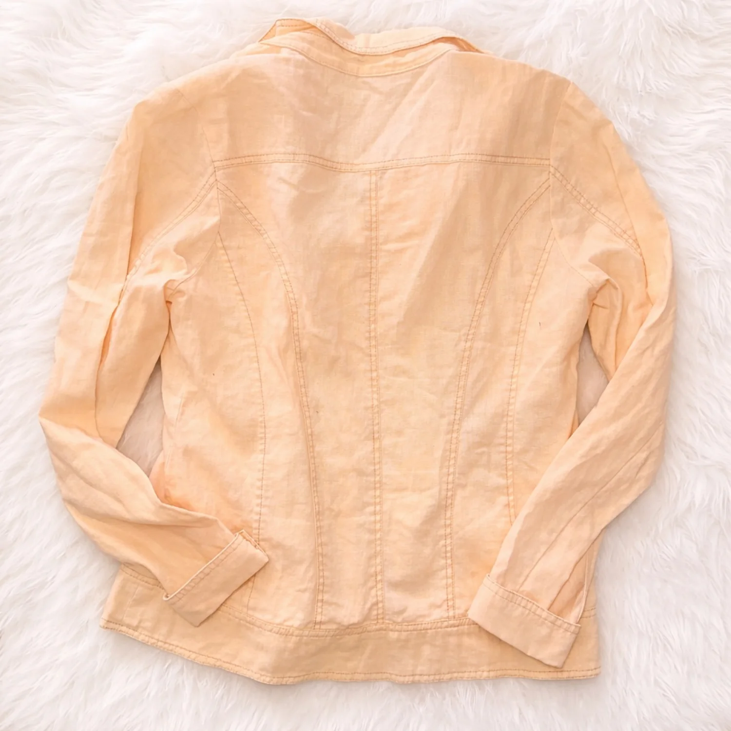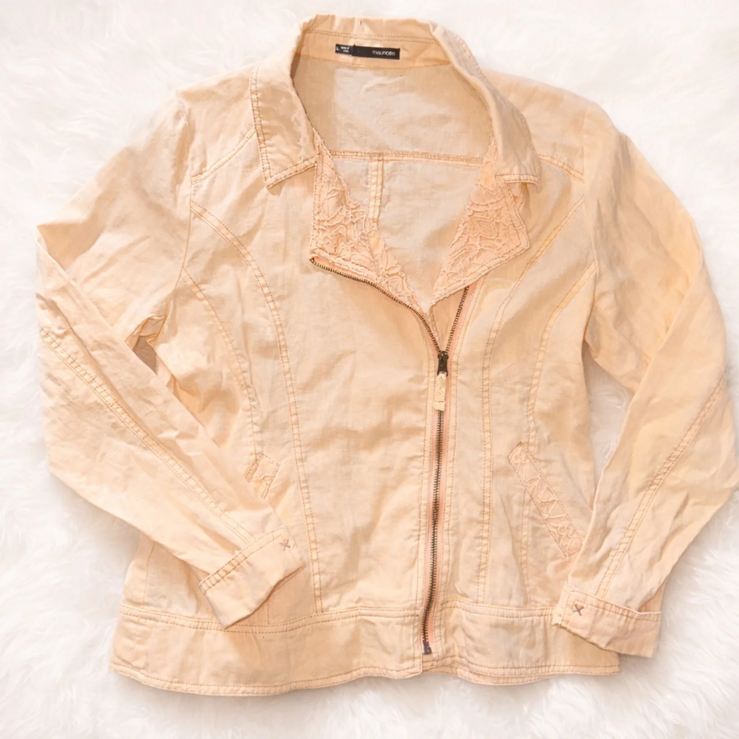 This soft peachy jacket from Maurices is such a dreamy, feminine layer that instantly elevates any outfit 💕 The delicate lace detail along the lapel gives it a subtle romantic touch, while the structured seams create a flattering, tailored fit that looks amazing zipped up or worn open over a tank or dress. The lightweight fabric makes it perfect for transitioning seasons—throw it on with jeans and sneakers for a casual day out, or pair it with a flowy dress and ankle boots for an effortlessly polished look ✨ It’s in good pre-loved condition with normal signs of wear visible upon close inspection, but nothing that takes away from its overall charm or wearability. The color is a beautiful soft peach tone that’s super on-trend and easy to style year-round 🌸 Hashtags: #maurices #peachjacket #lacejacket #springstyle #femininefashion #lightweightjacket #casualchic #layeringpiece #womensfashion #sizeL