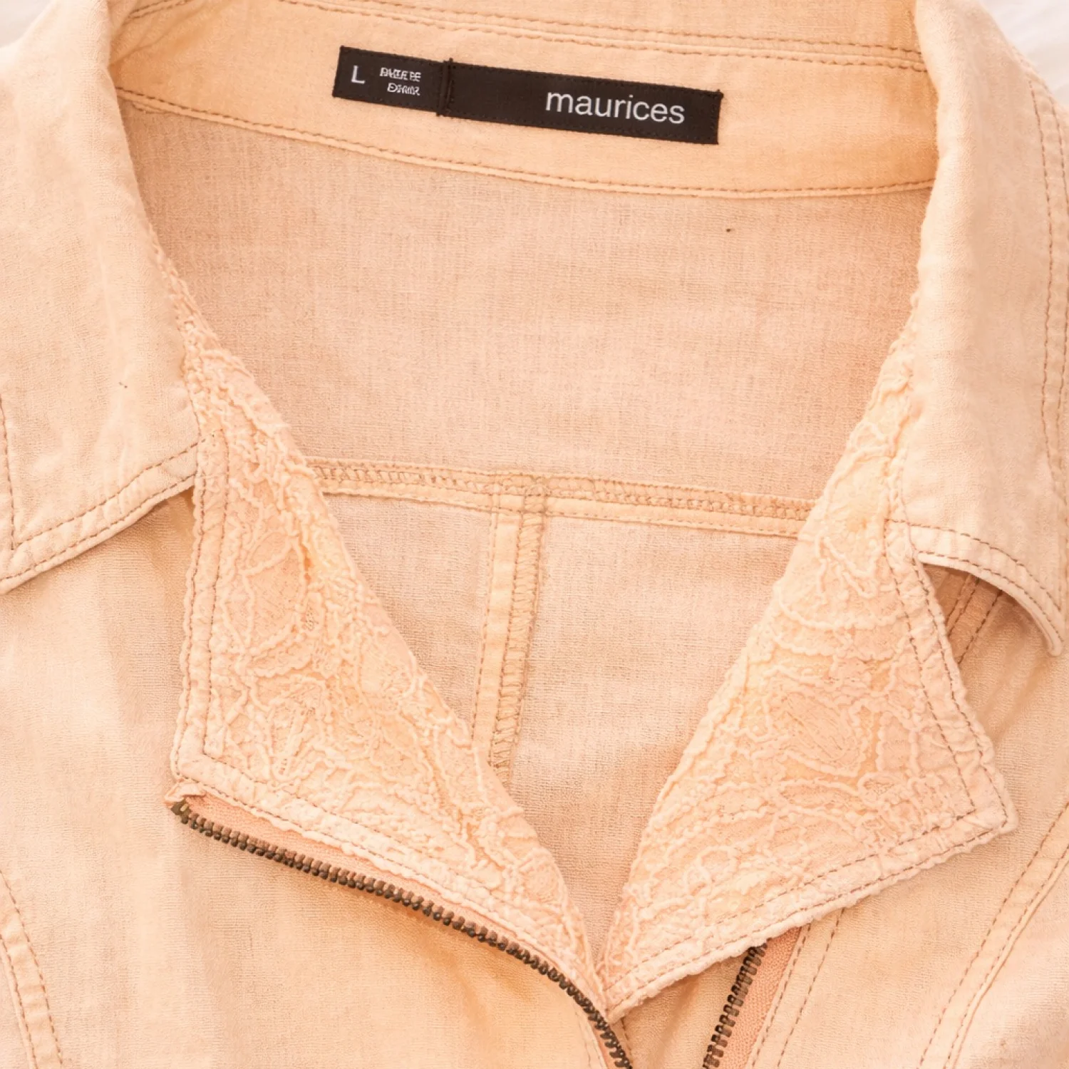 Maurices Peach Lace Detail Zip Jacket Size L Feminine Lightweight Spring Layer