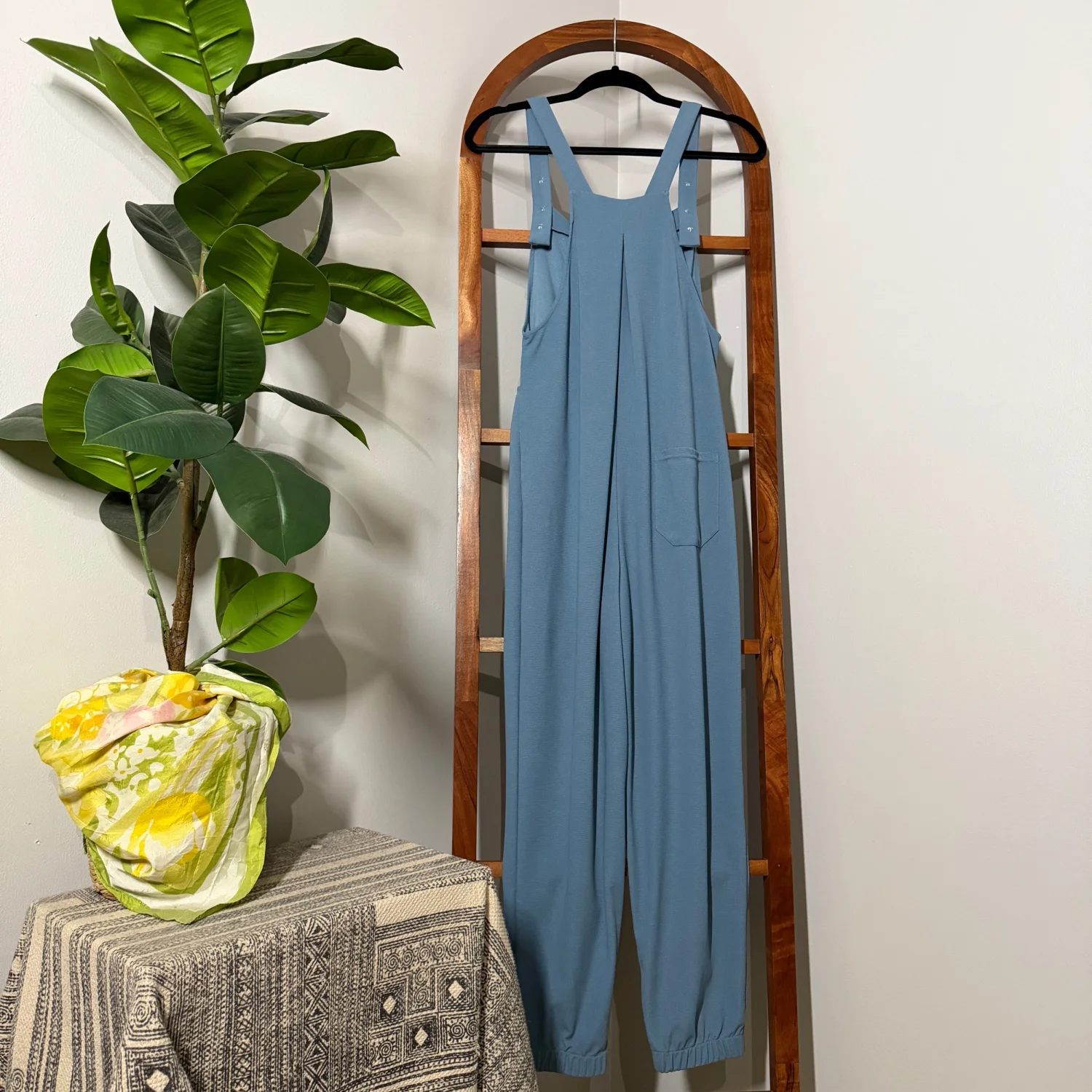 measures approx 15.5in pit to pit 26in inseam SMALL TALL blue pockets waffle casual jogger jumpsuit overalls from halara. I believe the color is mountain spring. Soft and stretchy. In great preloved condition. find me on poshmark dmpr16