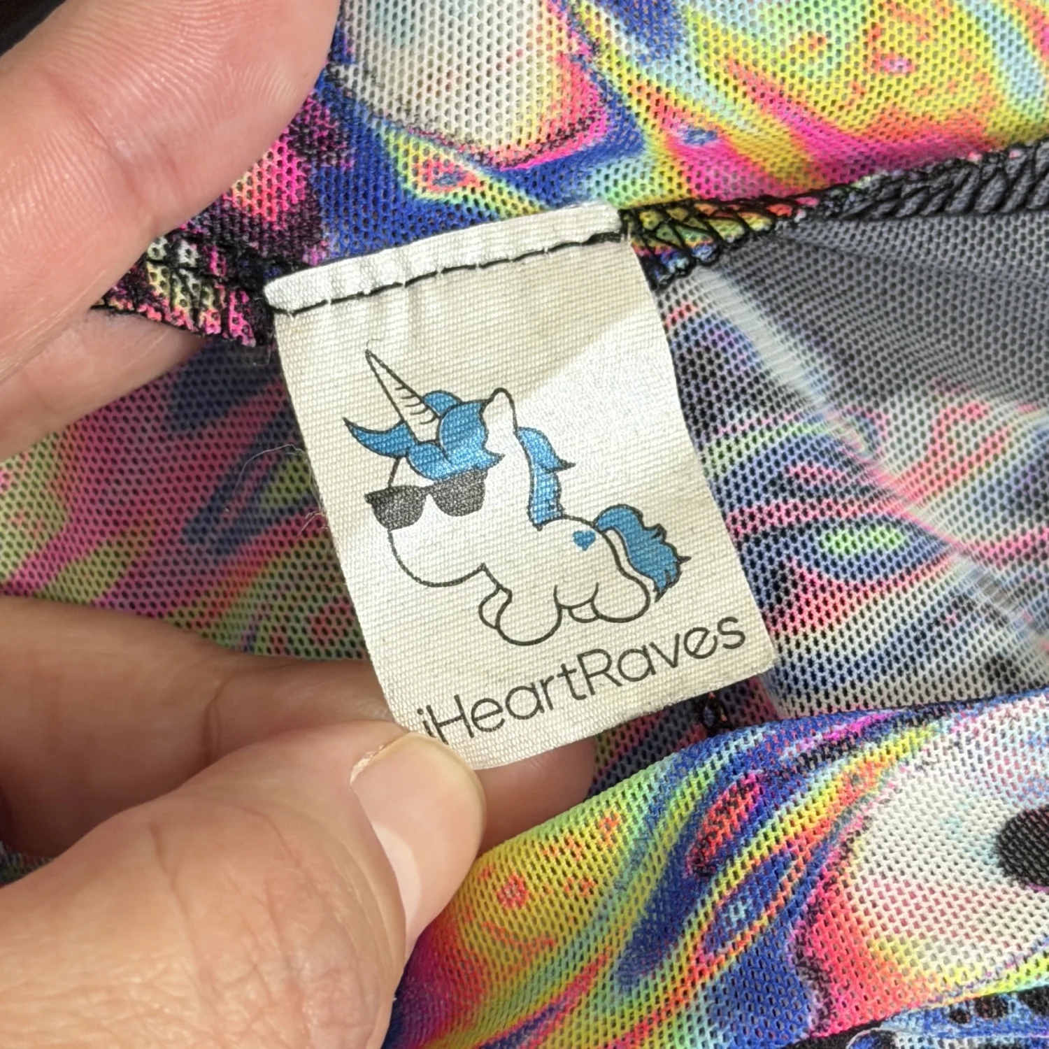 I Heart Raves SMALL Short Sleeve Psychedelic Mesh Shirt USA Made