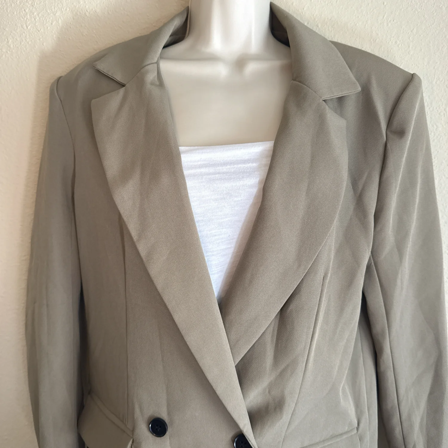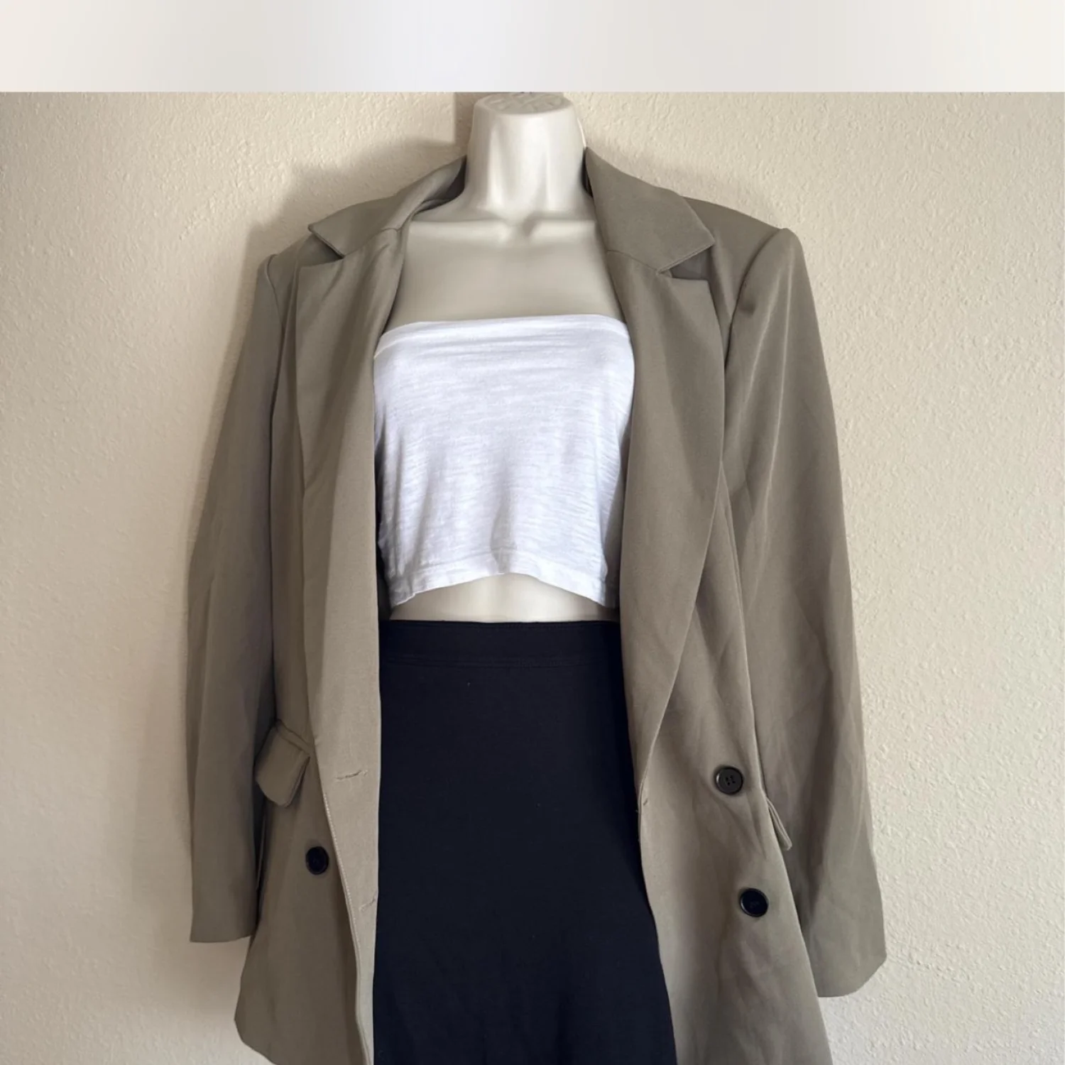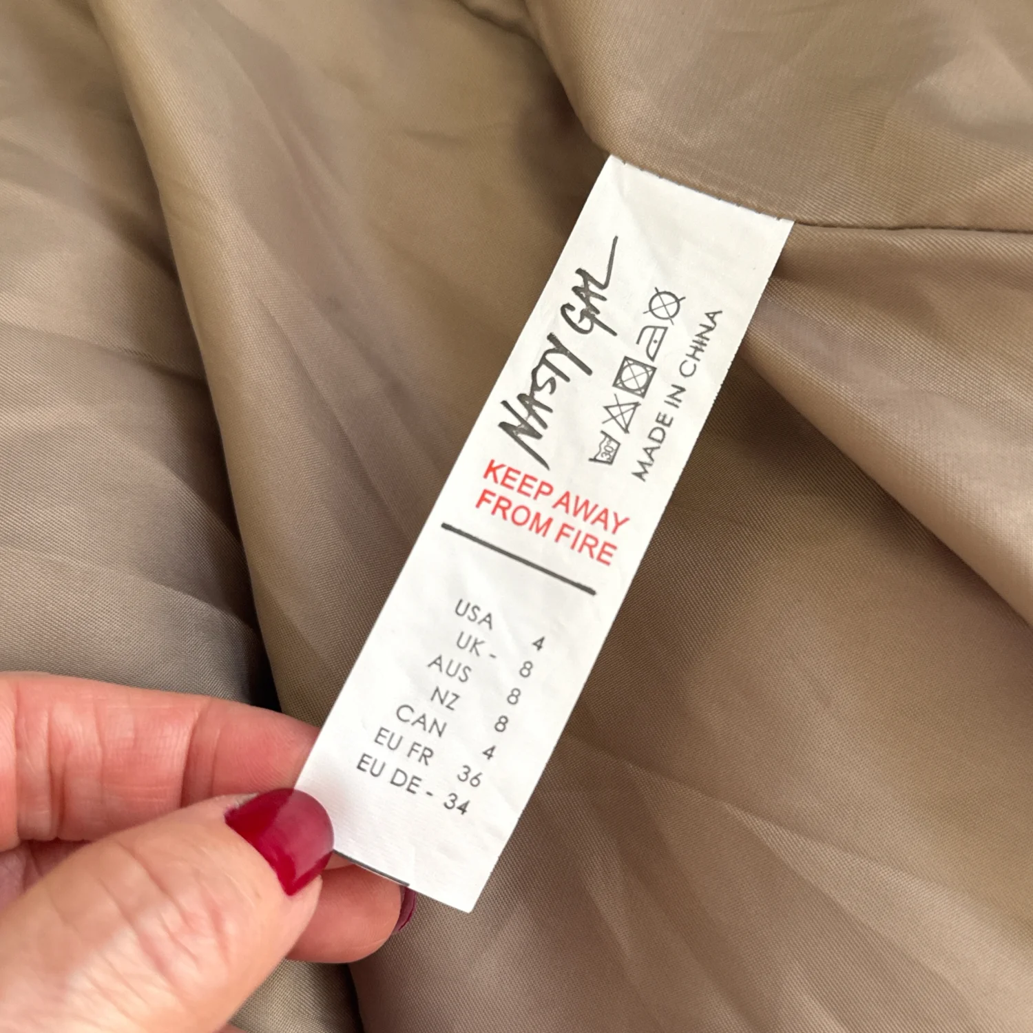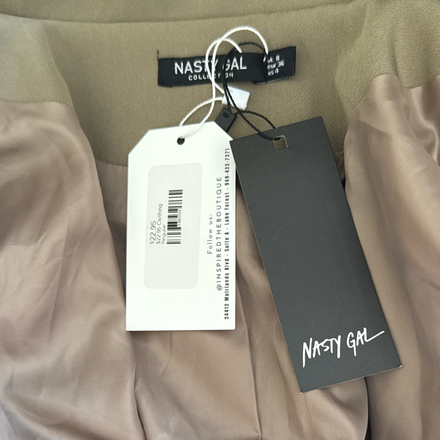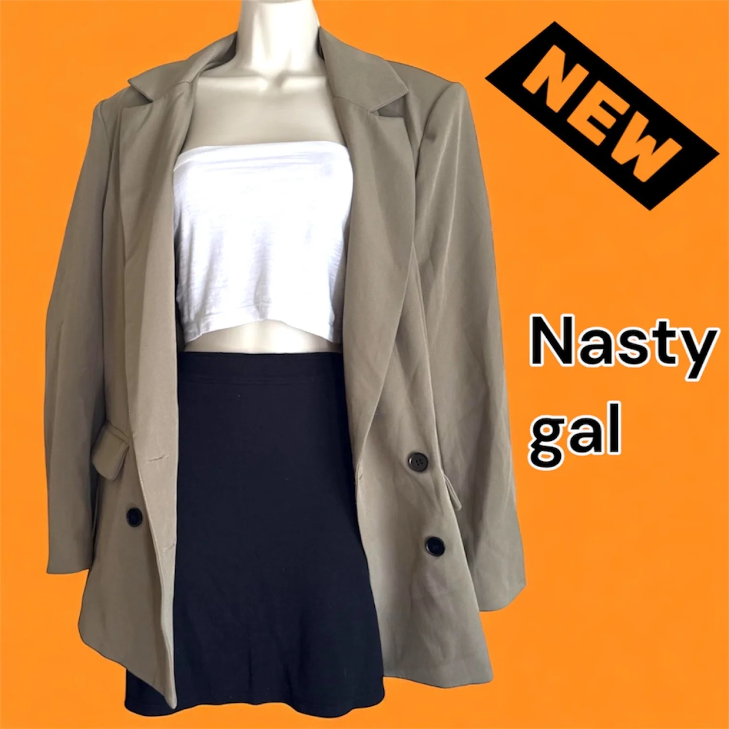 This chic Nasty Gal blazer coat is new with tags, offering a stylish addition to your wardrobe. Designed in a versatile beige color, it's perfect for both professional and casual settings. The coat is a US size 4, but is definitely larger than that. Has built in shoulder pads, was purchased at a boutique. Still has tags on from the boutique.. this is an oversized jacket/blazer. Have some street style to it, for office or work, It can even be worn with a tank top or T-shirt and cut off denim shorts with some knee-high boots . PTP 22 inches length is 32 inches waist 20 inches Sleeves are 25 inches . #NastyGal #Blazer #New #Beige